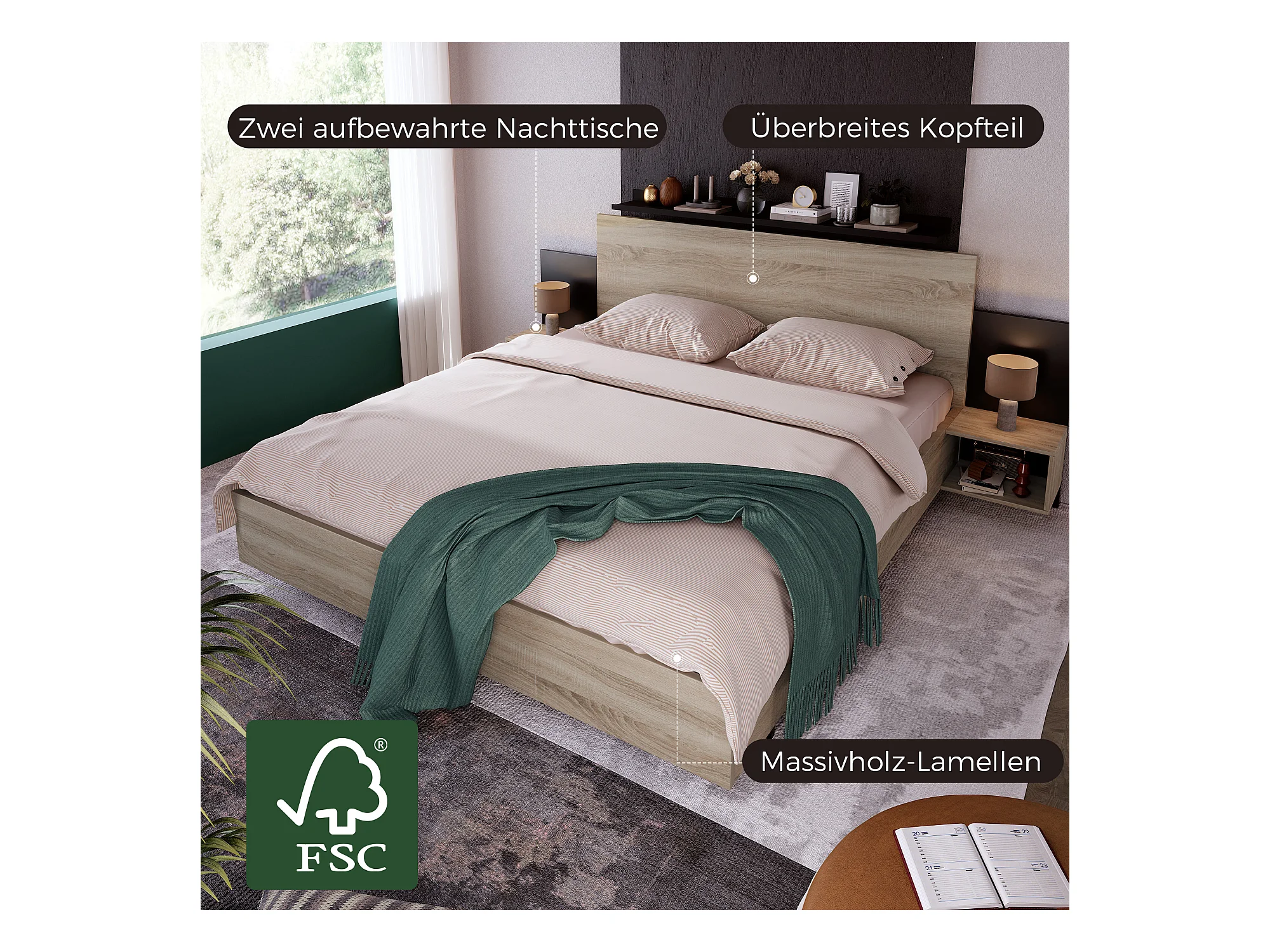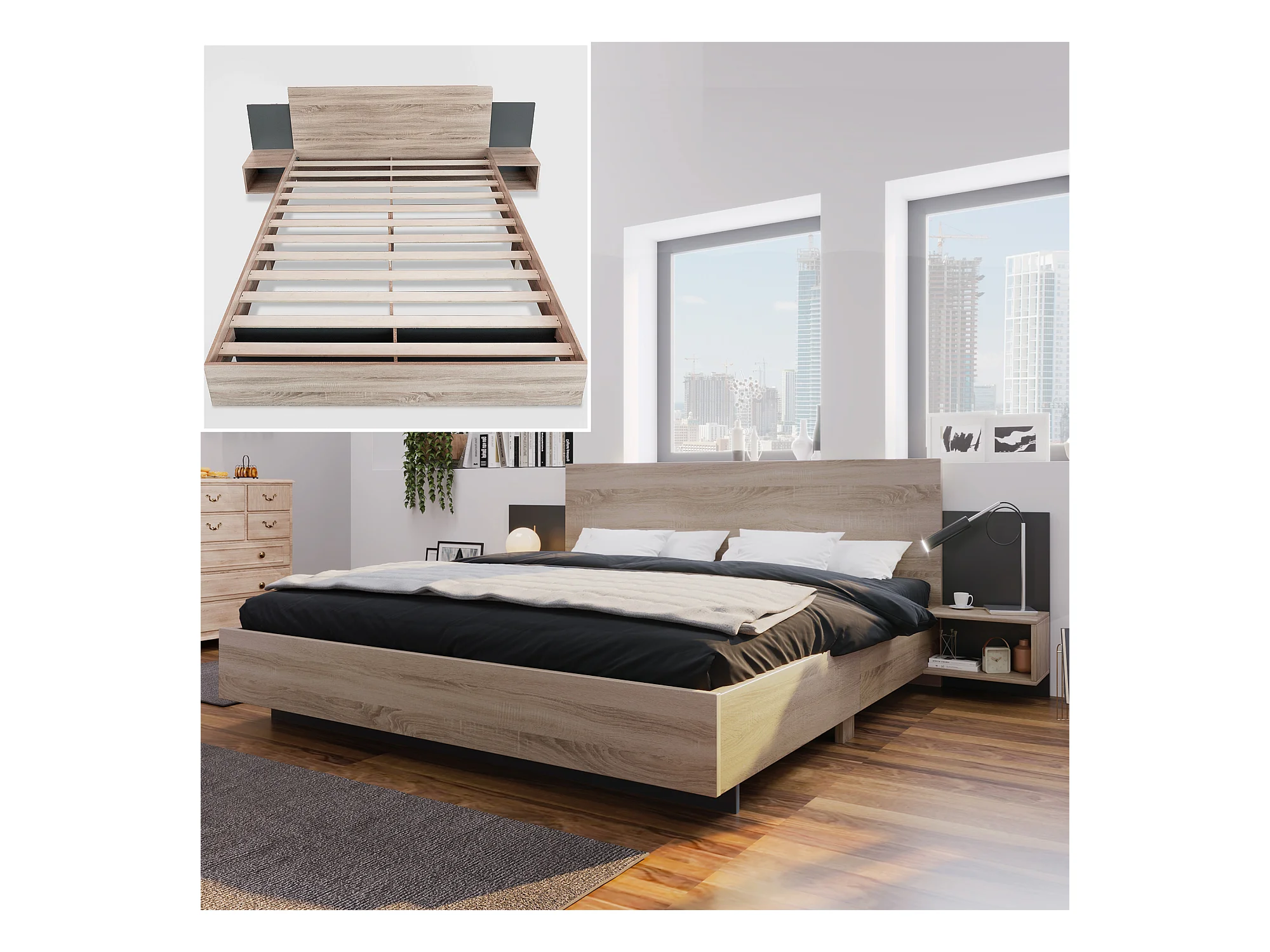 Lit adulte lit en bois - gris foncé 160 x 200 cm - Sweiko