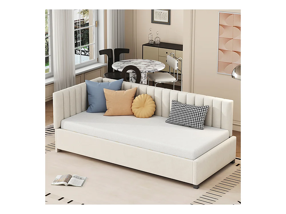 Lit adulte Lit gigogne Lit 90x200 avec sommier à lattes Canapé-lit pour le salon Tissu velours Beige