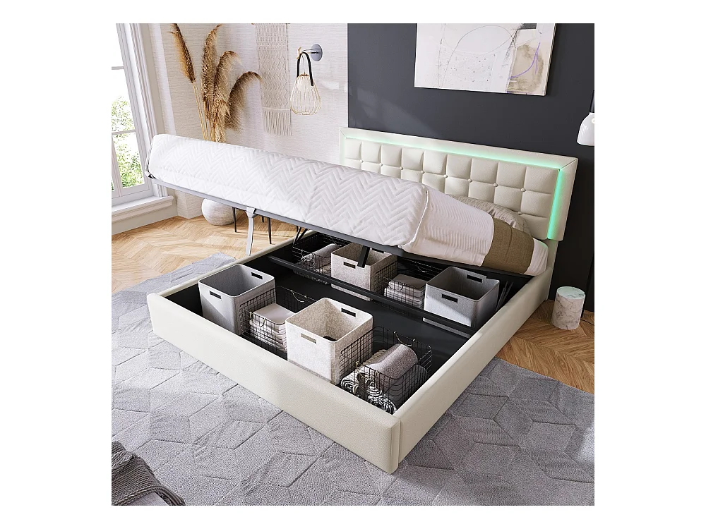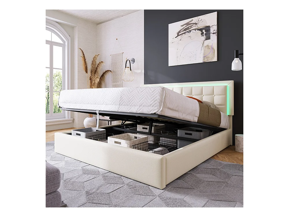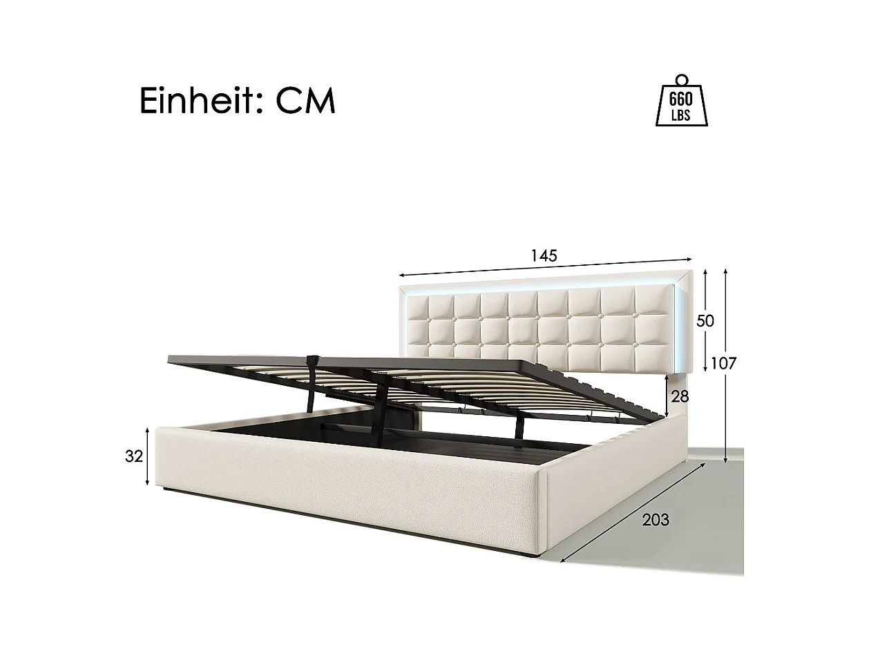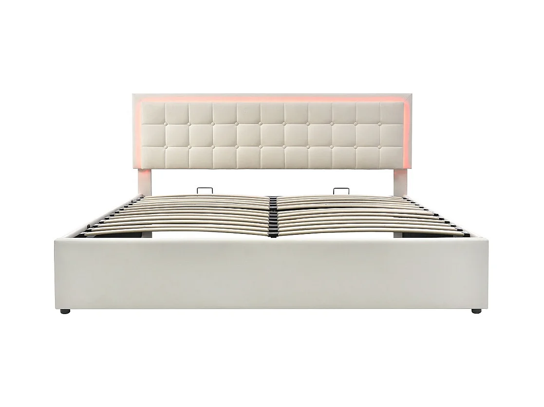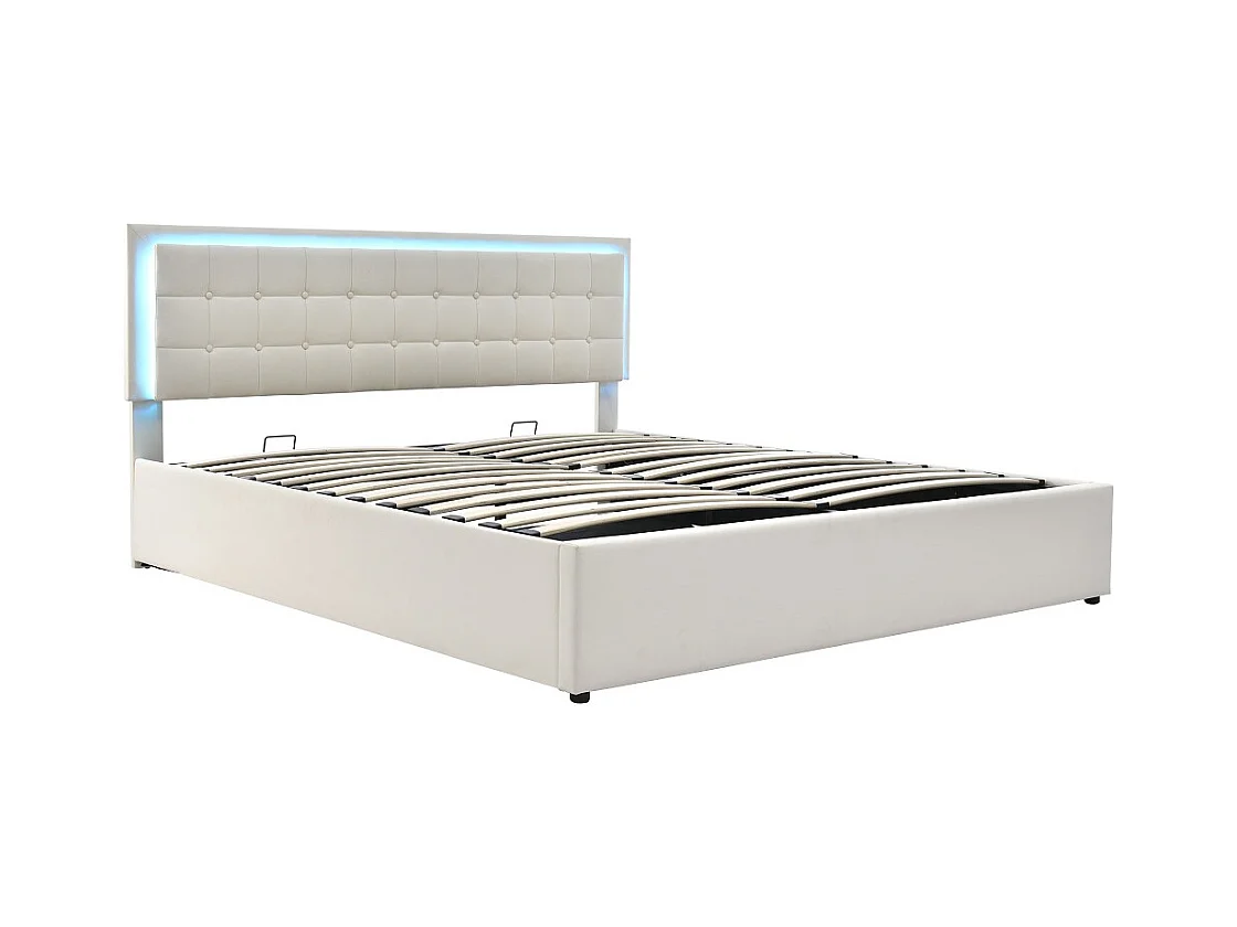 Lit adulte lit led double cadre de lit avec espace de rangement lit 140x200 cm revêtement en simili-cuir blanc