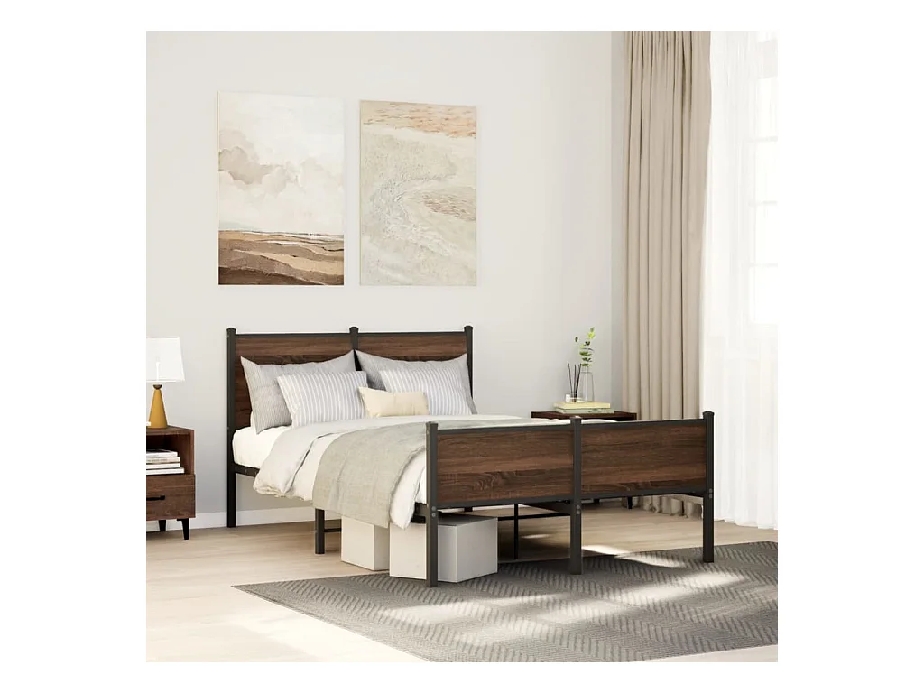 Lit adulte métal avec tête de lit chêne fumé 120x200 cm FR191254