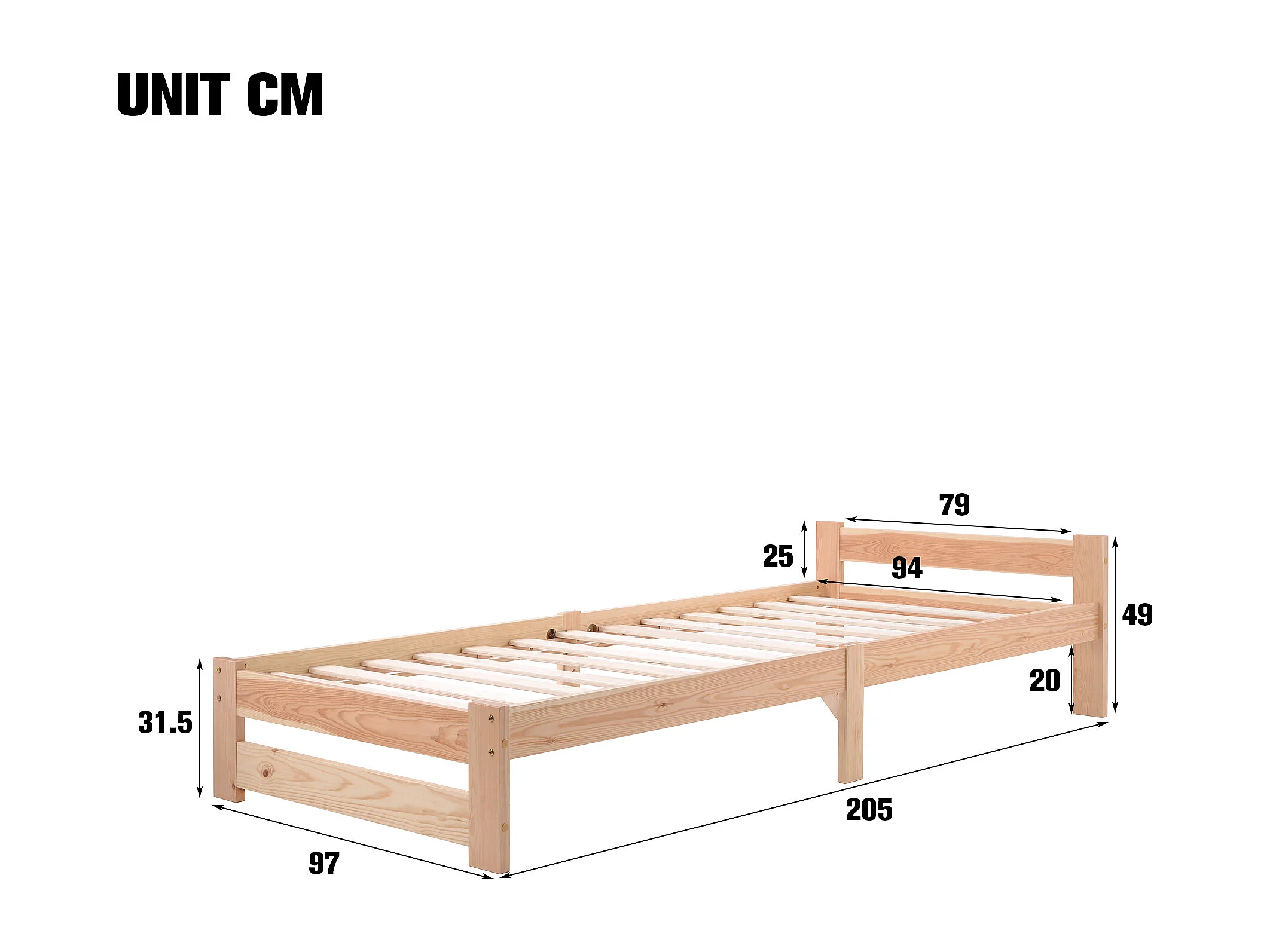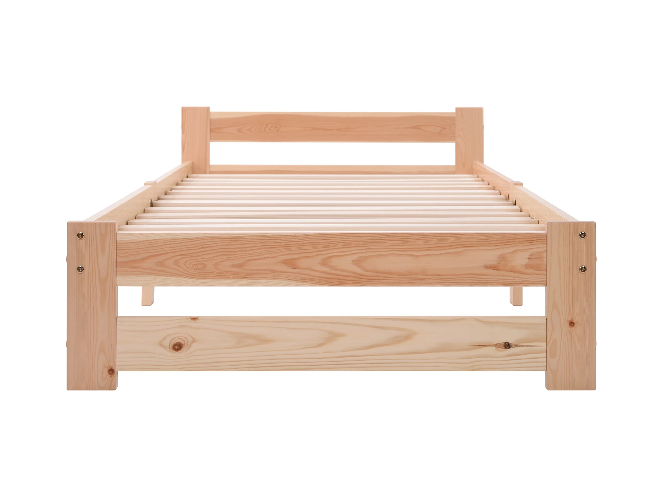 Lit Adulte Simple en bois massif 200x90 cm Tête de lit et sommier à lattes - Naturel