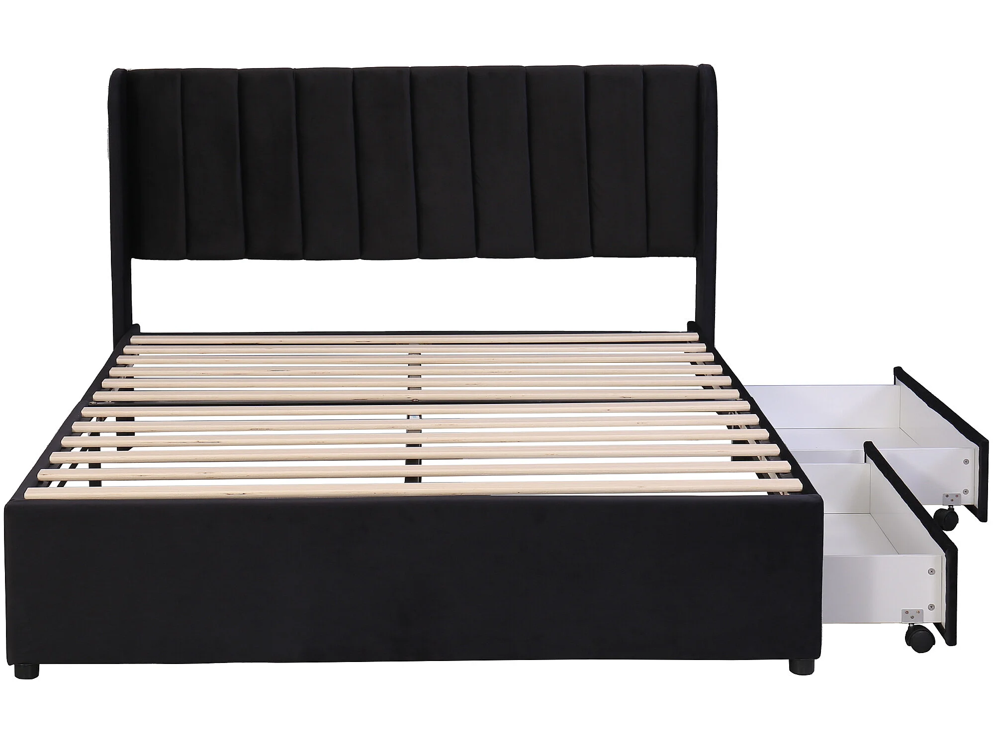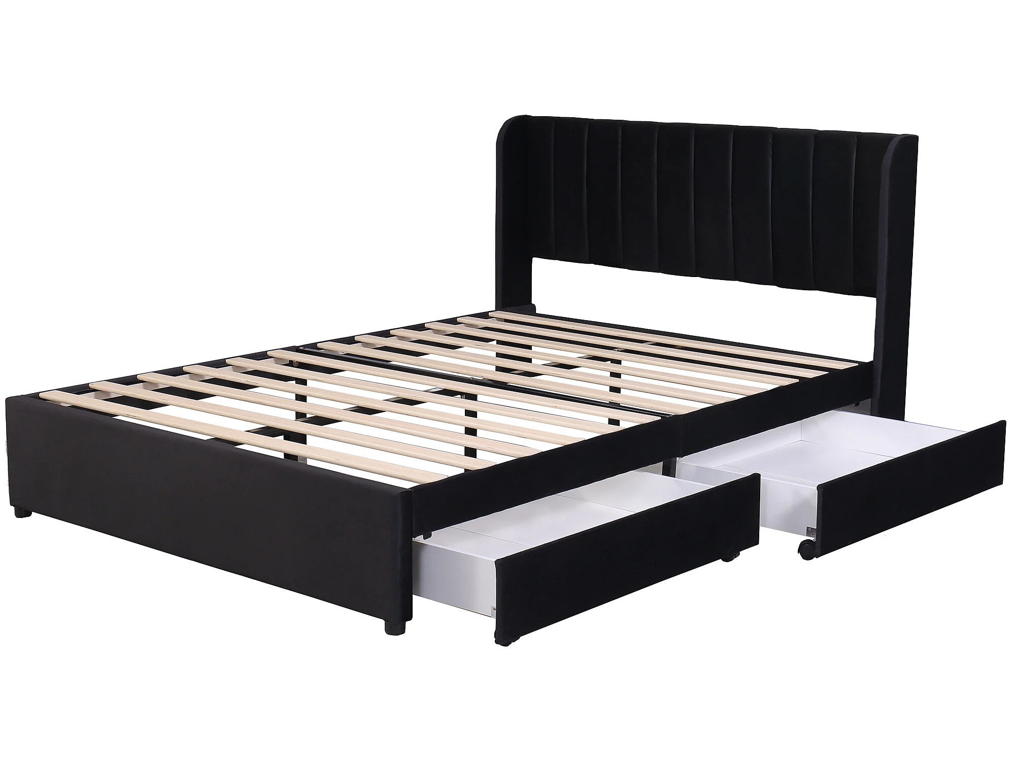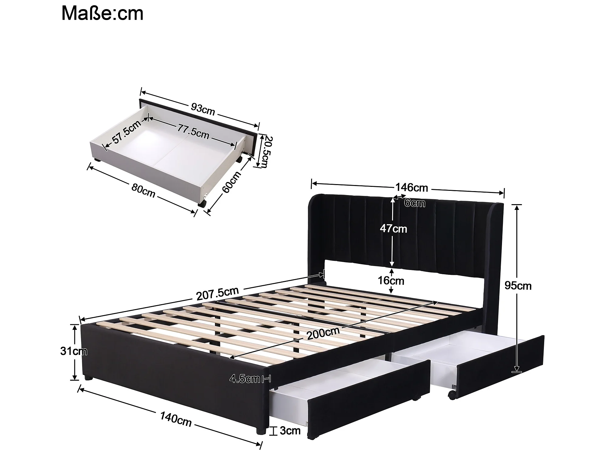 Lit avec 2 tiroirs - Noir - 140 x 200 cm - Sweiko