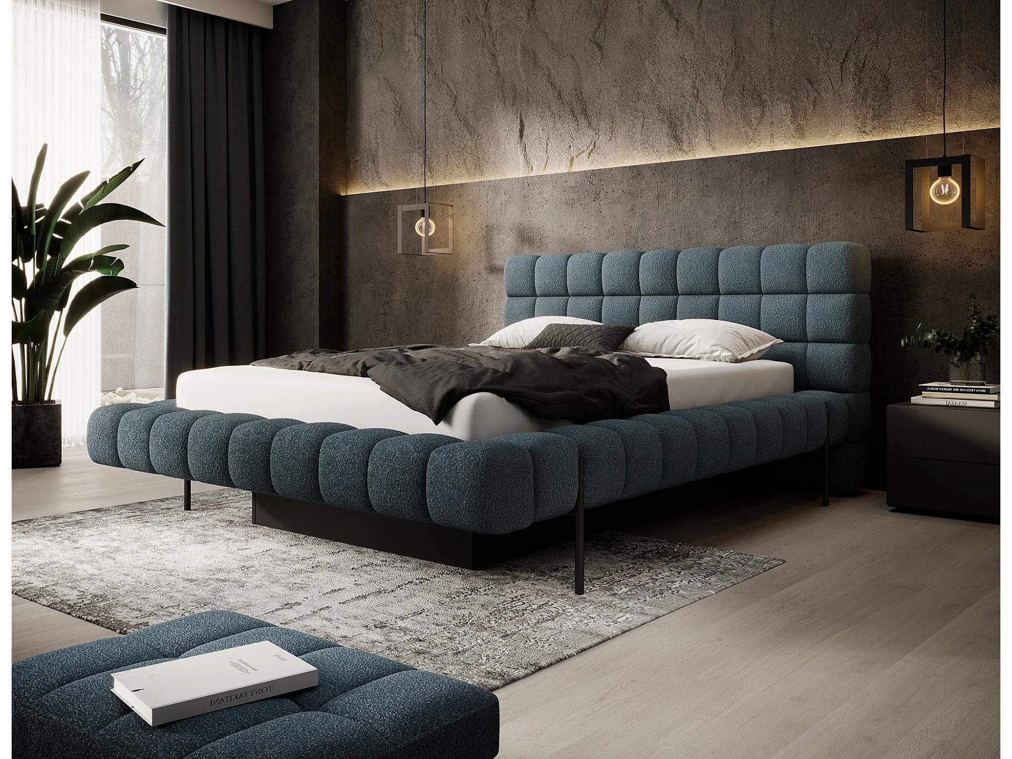 Lit avec coffre de rangement Kopa prestige – Revêtement tissu capitonné-Bleu charrette-160x200