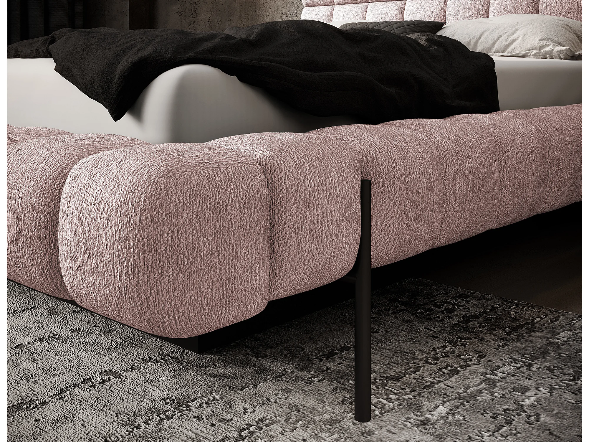 Lit avec coffre de rangement Kopa prestige – Revêtement tissu capitonné-Rose clair-160x200
