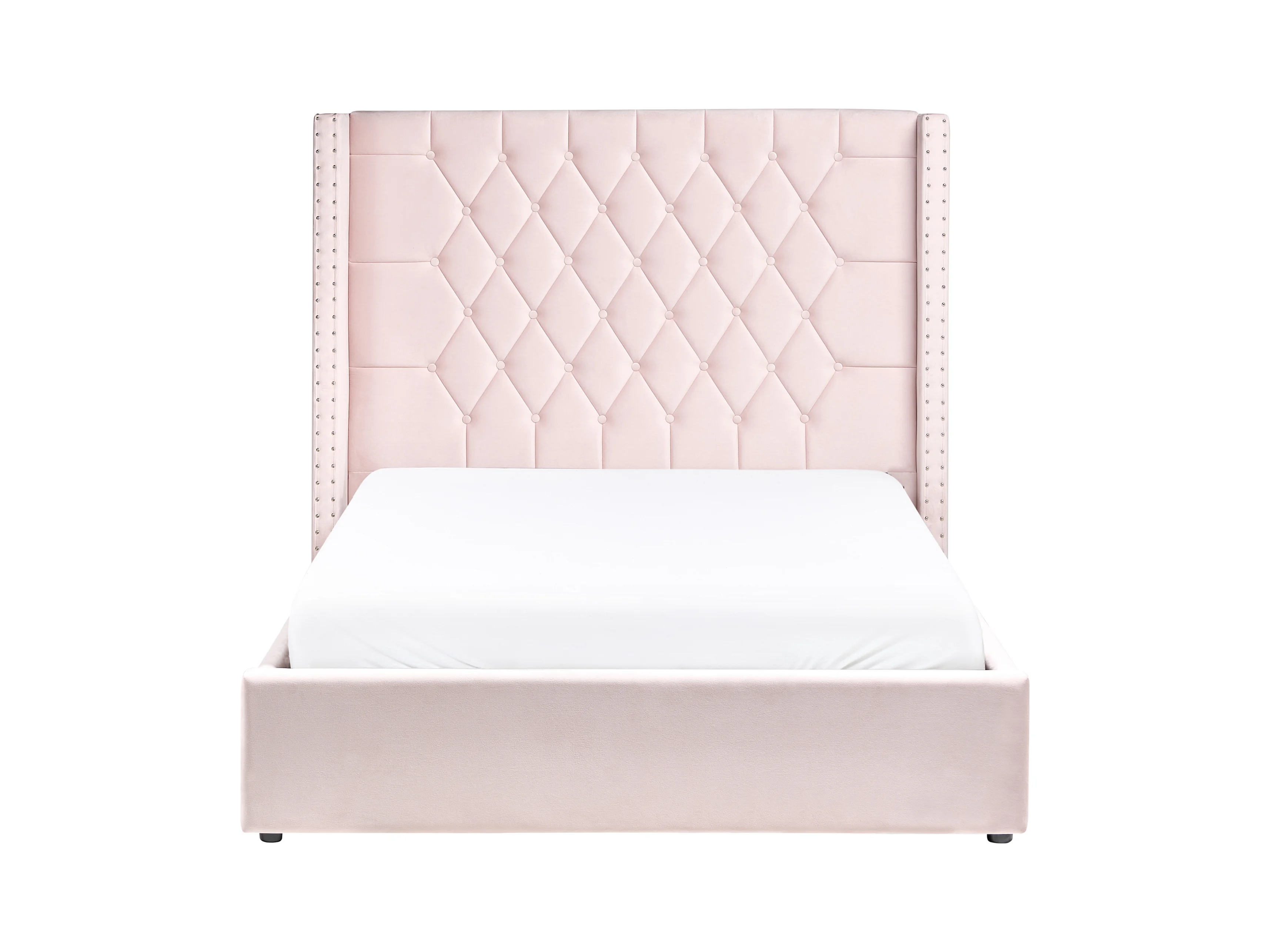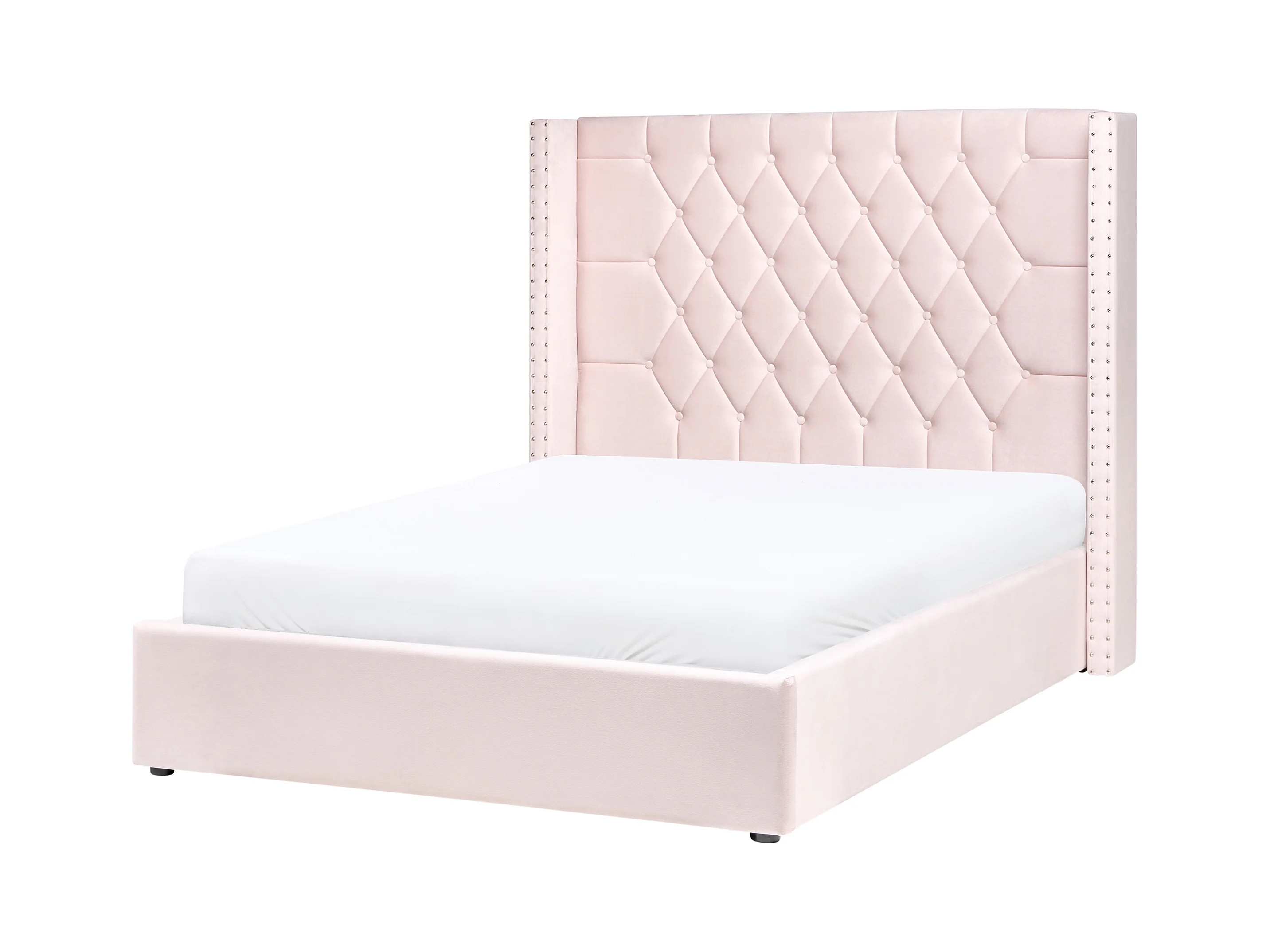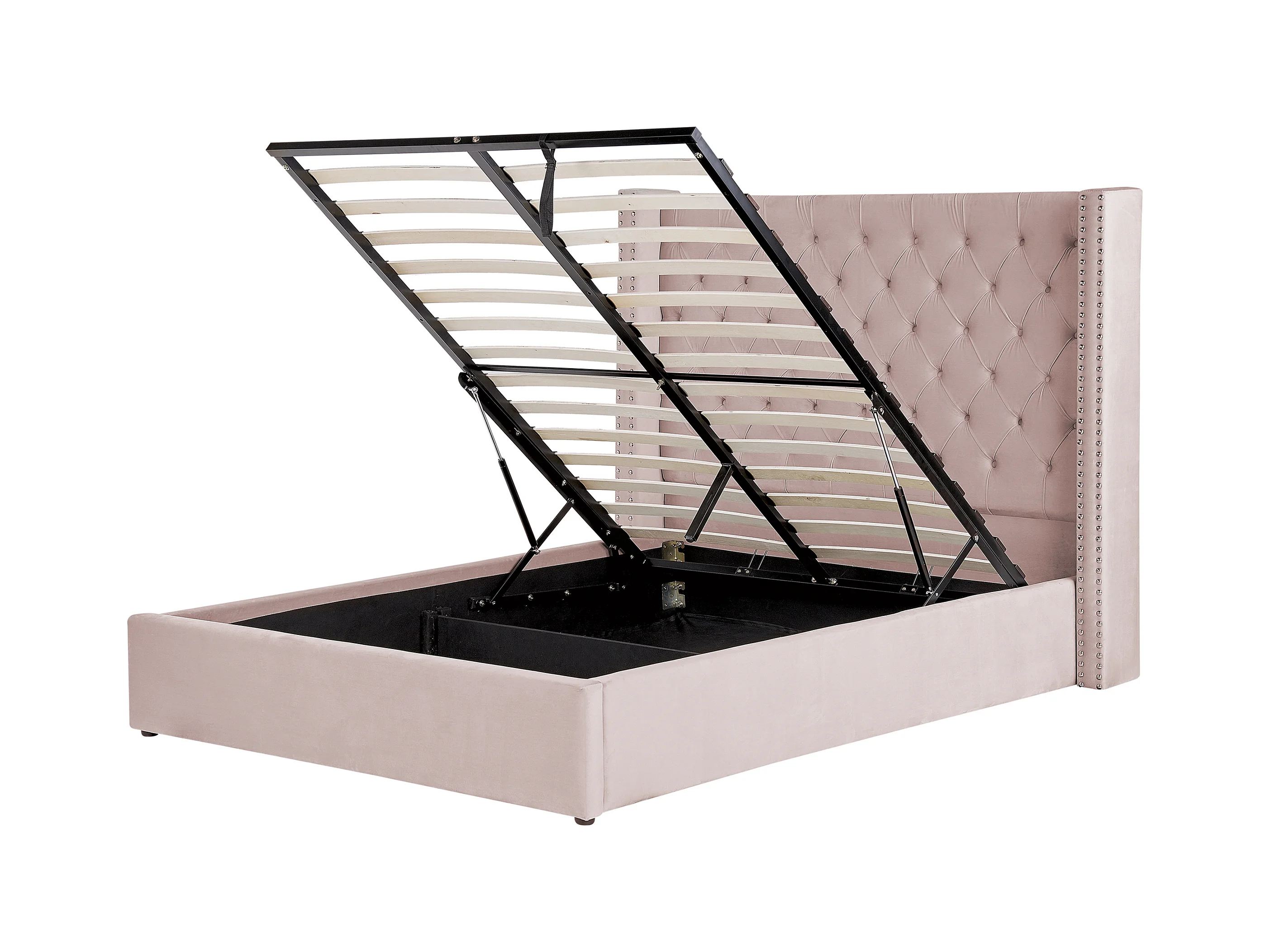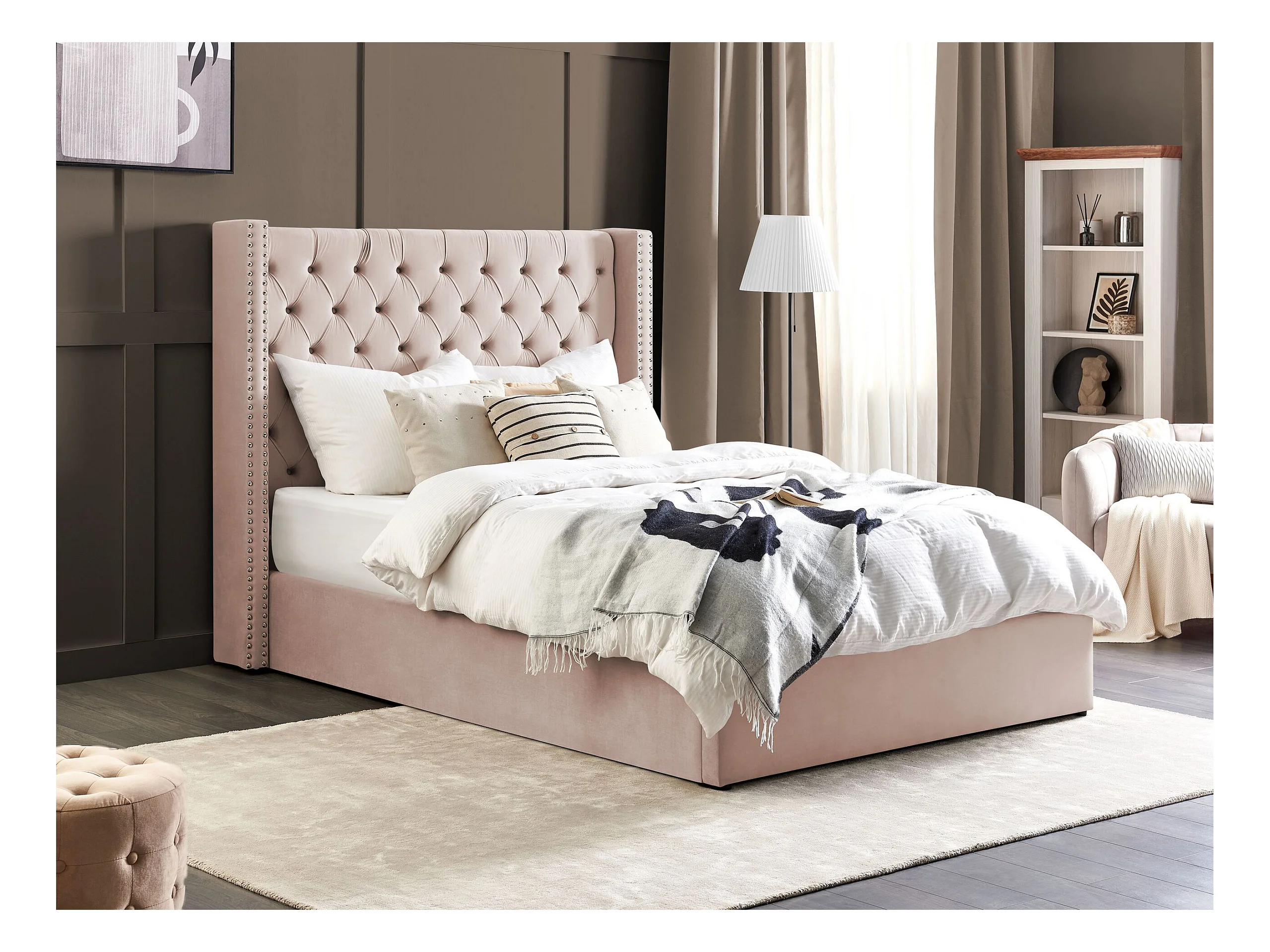 Lit ottoman Velours LUBBON 140 x 200 cm Rose pastel Rose