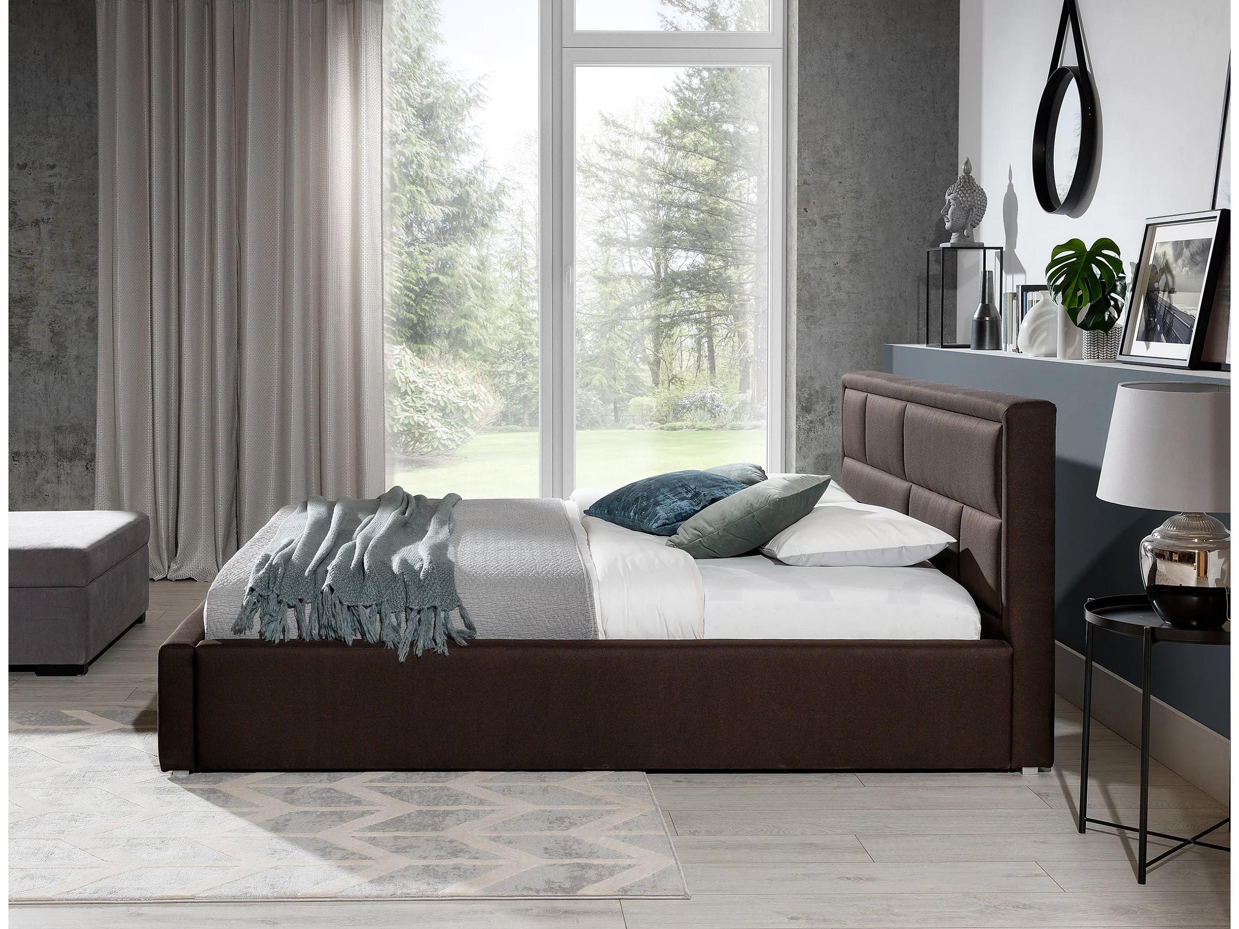 Lit avec coffre velours prune tête de lit capitonnée Lenzo - 4 tailles-160x200