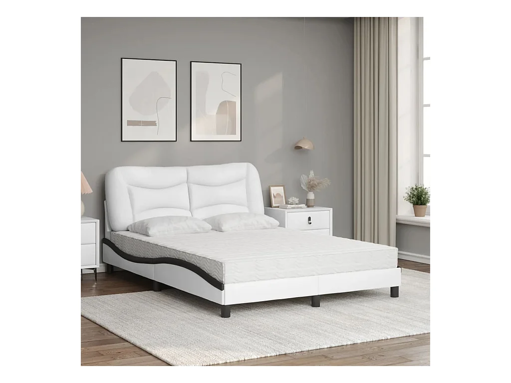 Lit avec matelas blanc et noir 120x200 cm similicuir