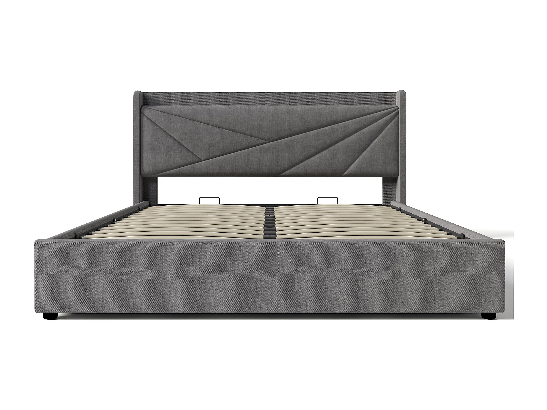 Lit avec rangement - 180x200 cm - Lit double avec fonction de charge USB Type C, tête de lit - matière lin - gris