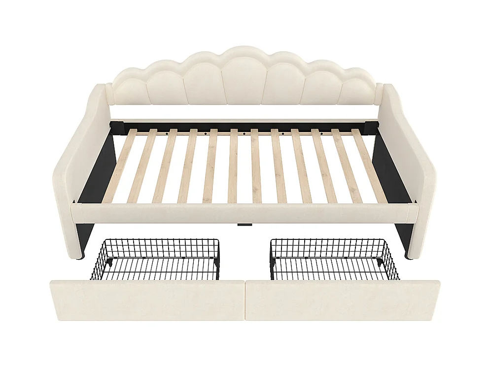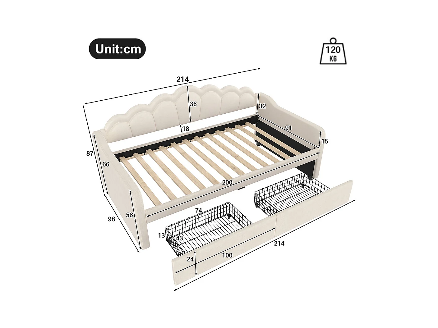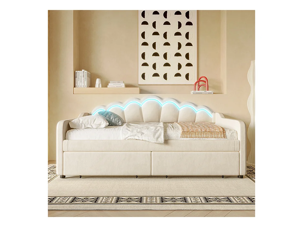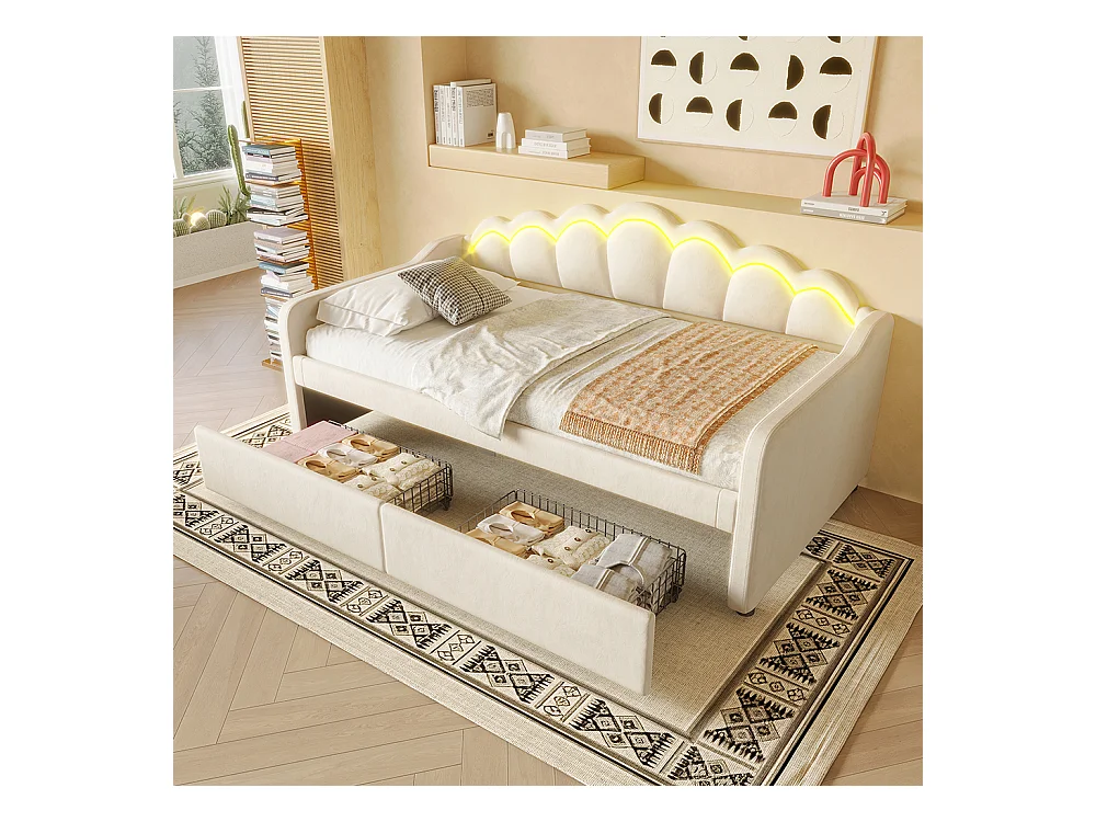 Lit avec rangement 90x200 cm lit de jour avec tiroirs canapé-lit lit simple velours bande LED à couleurs changeantes beige