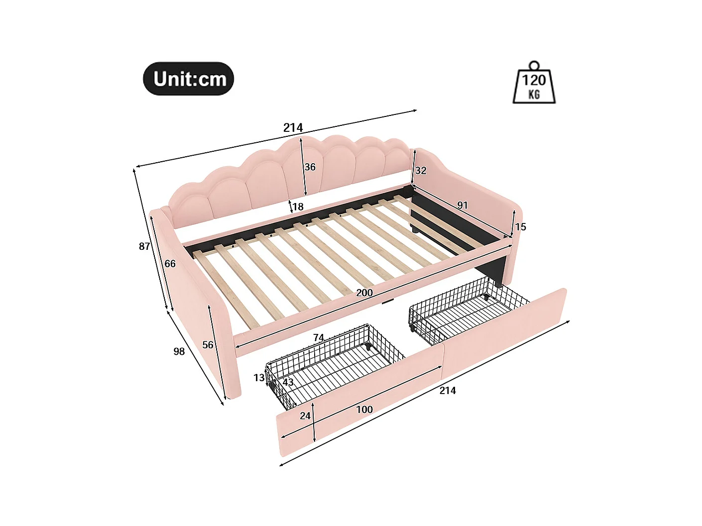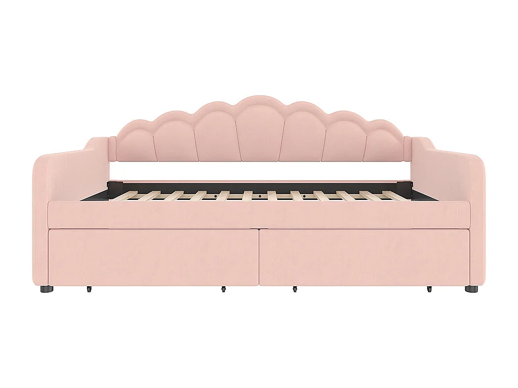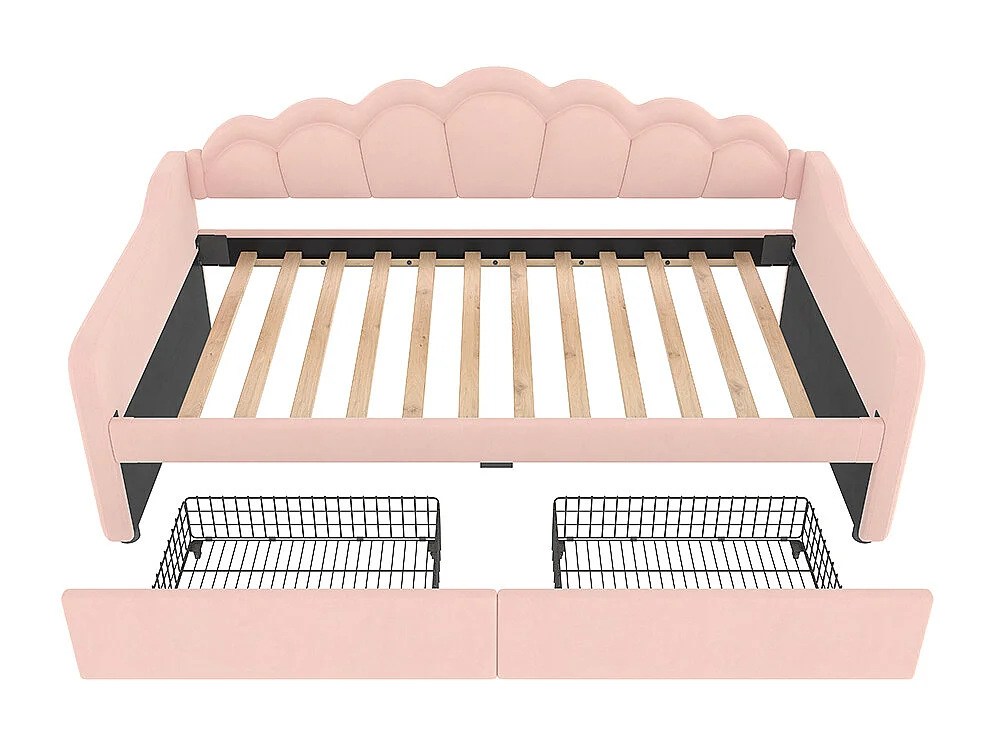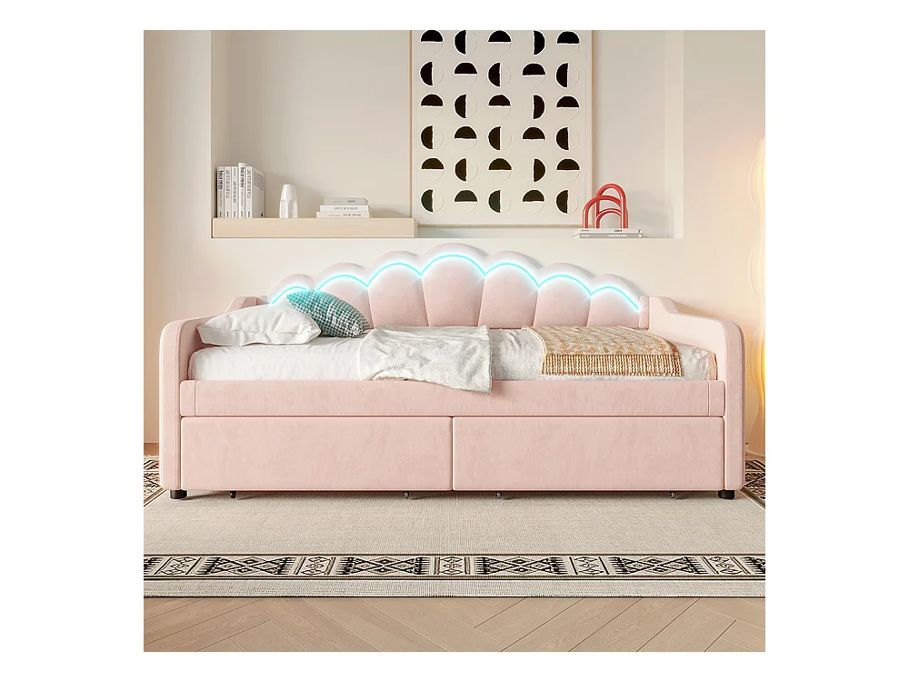 Lit avec rangement 90x200 cm lit de jour avec tiroirs canapé-lit lit simple velours bande LED à couleurs changeantes rose