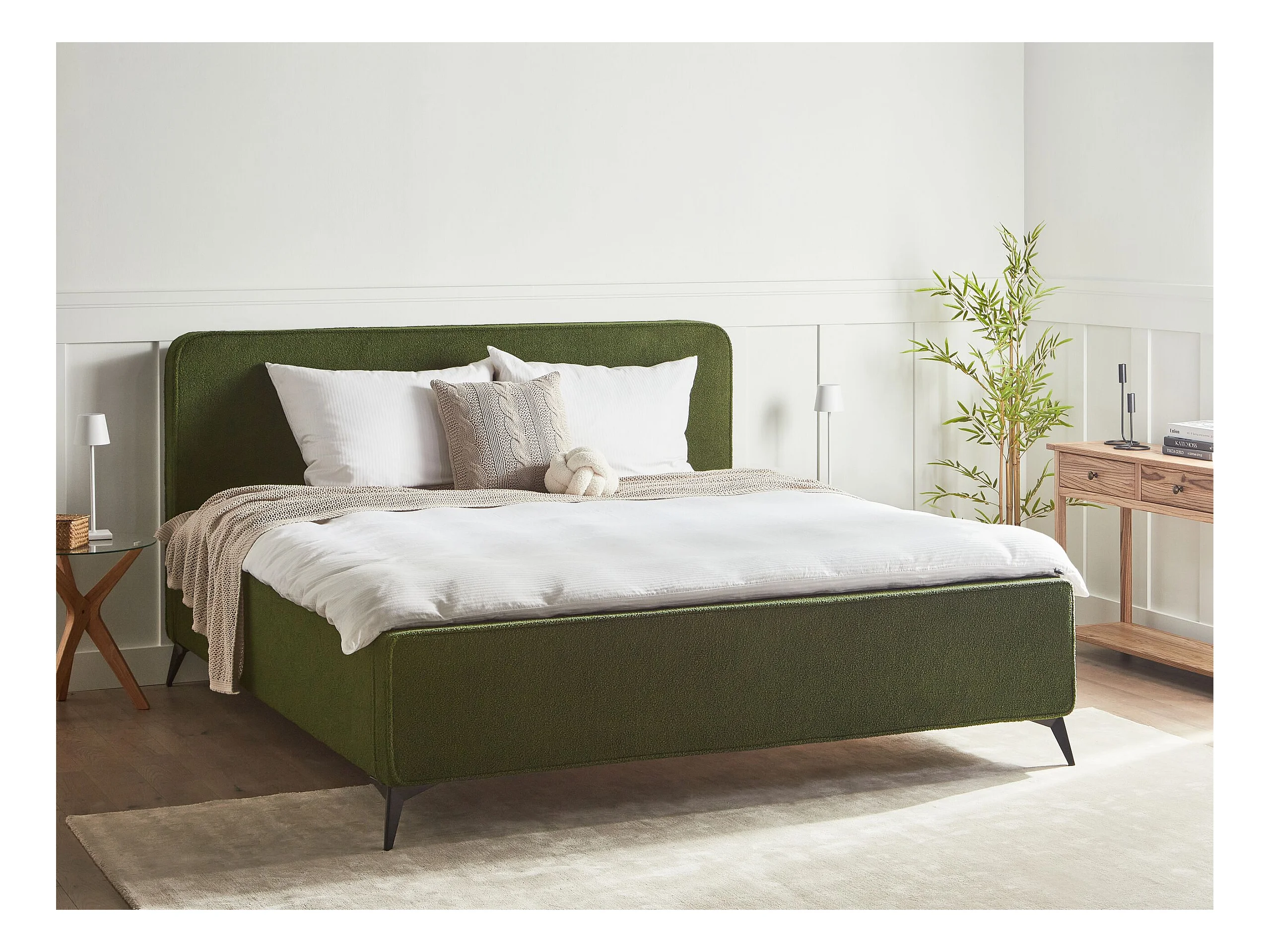 Lit avec sommier Bouclé VALOGNES 180 x 200 cm Vert foncé