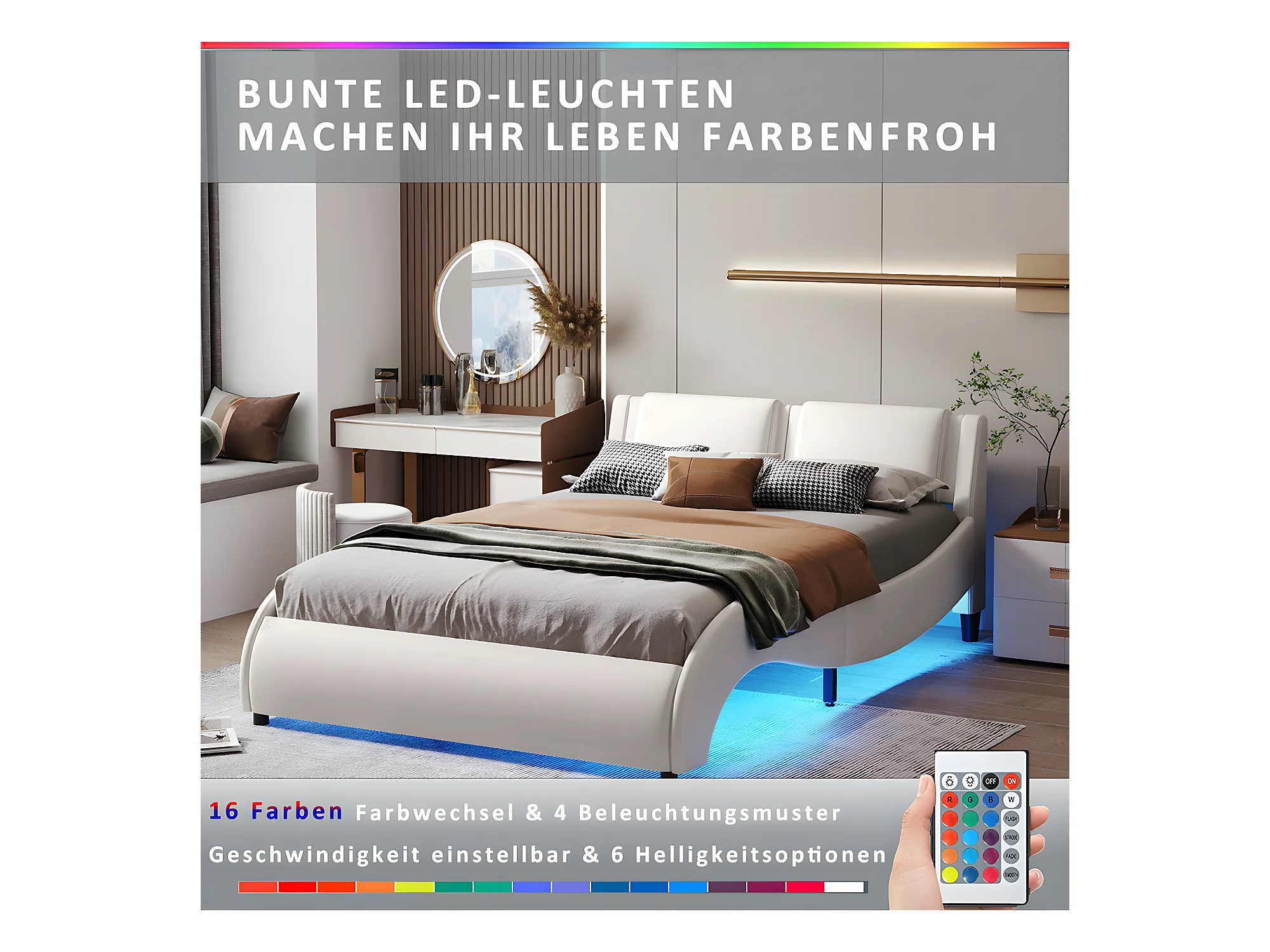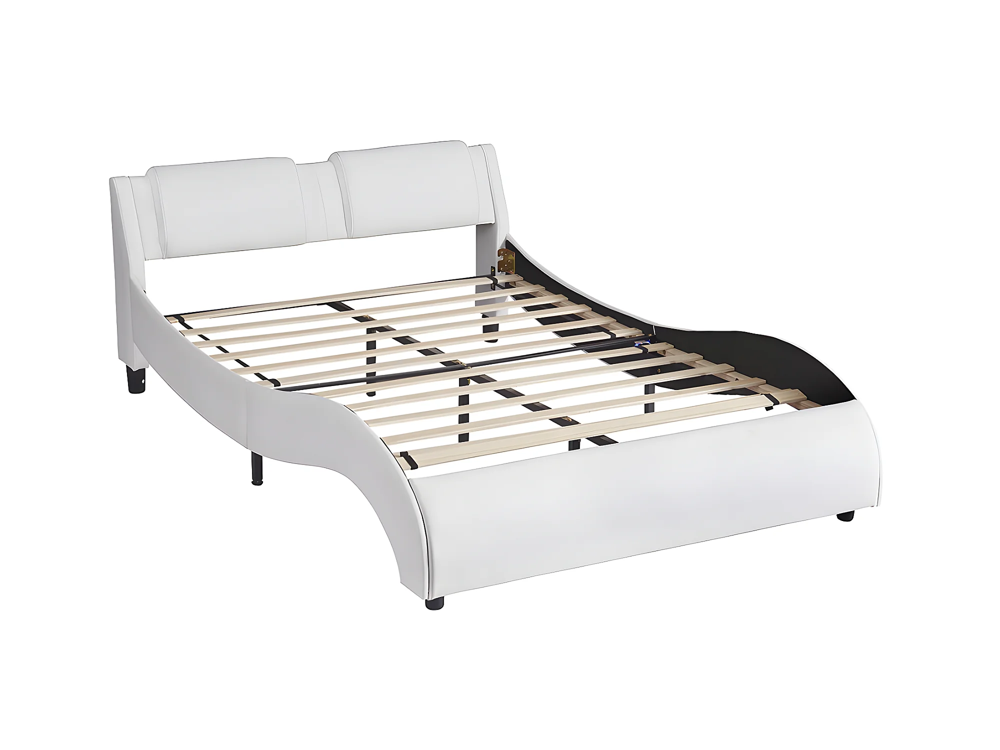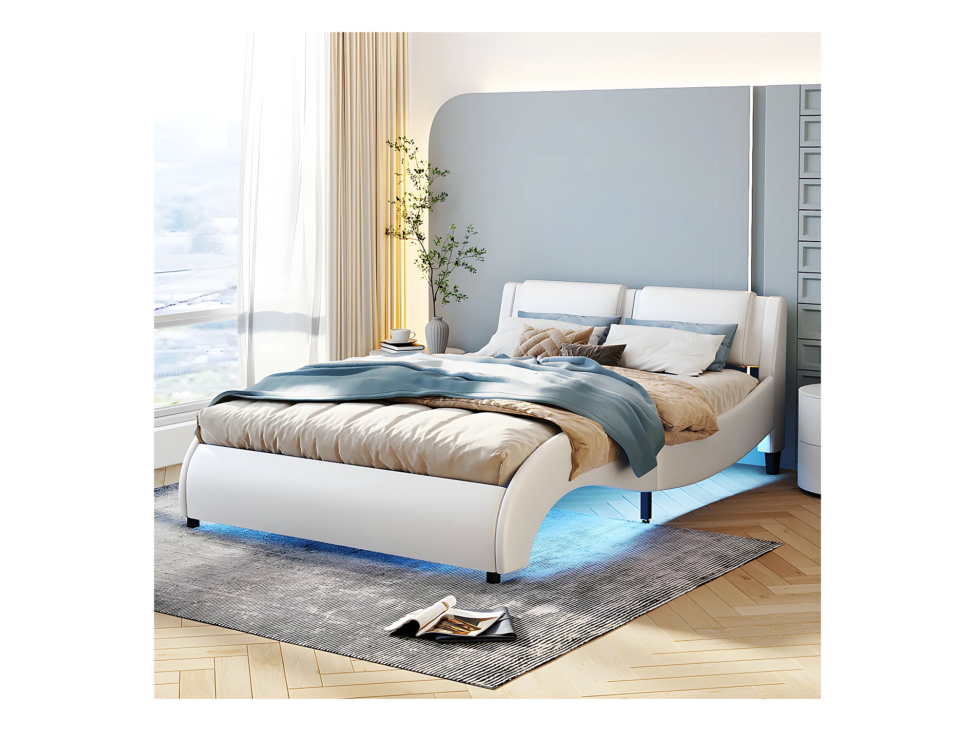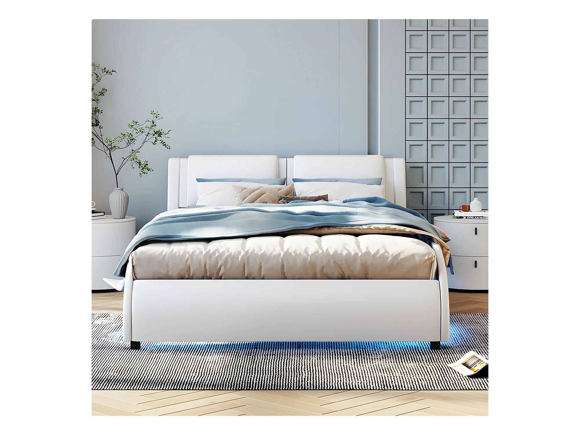 Lit avec tête de lit capitonnée avec LED- 140 x 200 cm - Blanc - Sweiko