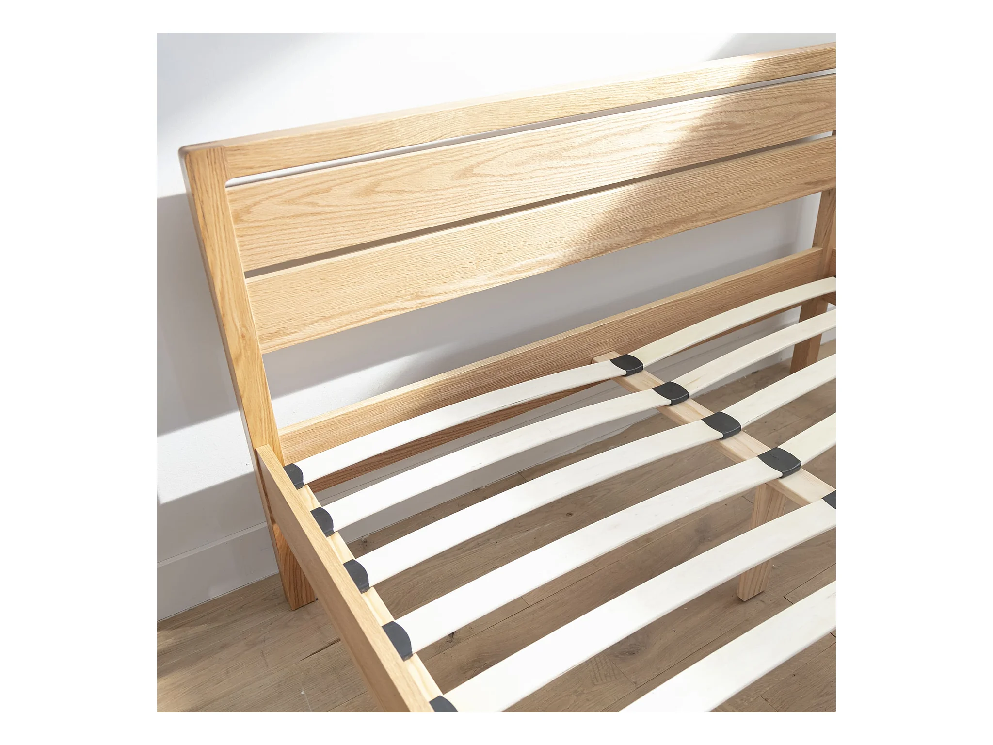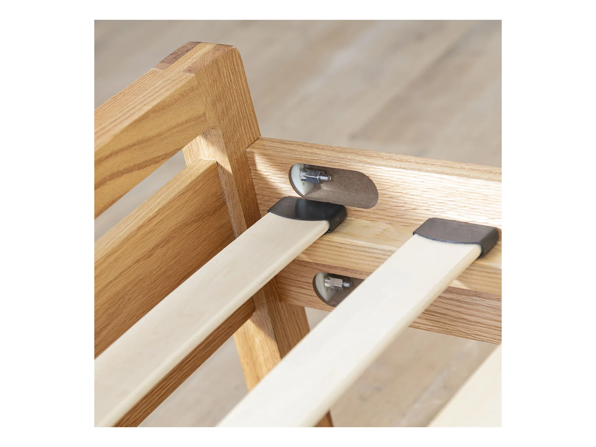 Lit avec tête de lit intégrée en MDF plaquage chêne et pieds en bois massif 140x190 - LT17013