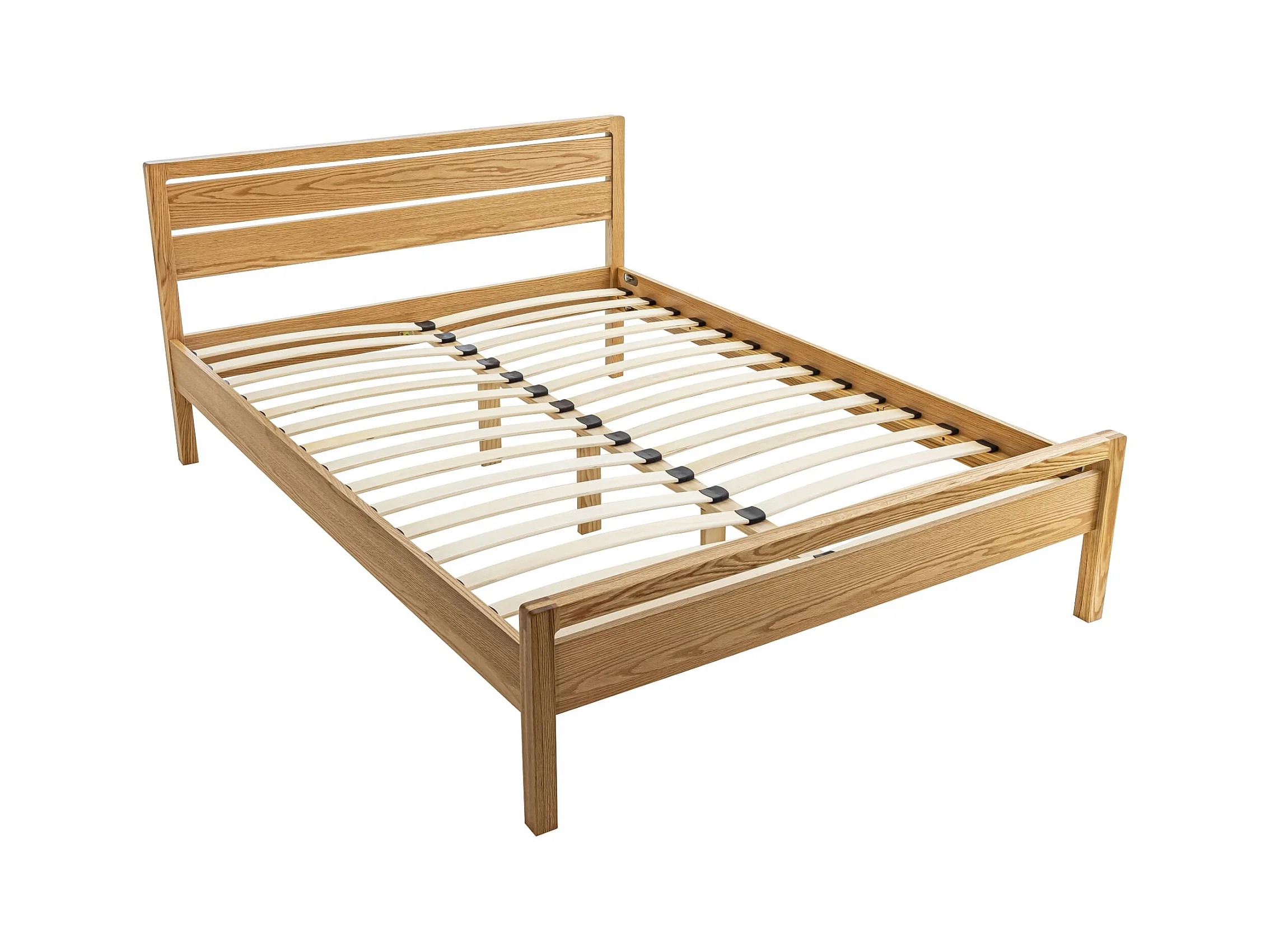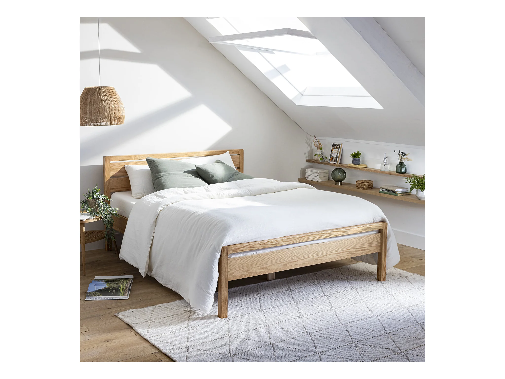 Lit avec tête de lit intégrée en MDF plaquage chêne et pieds en bois massif 160x200 - LT17013