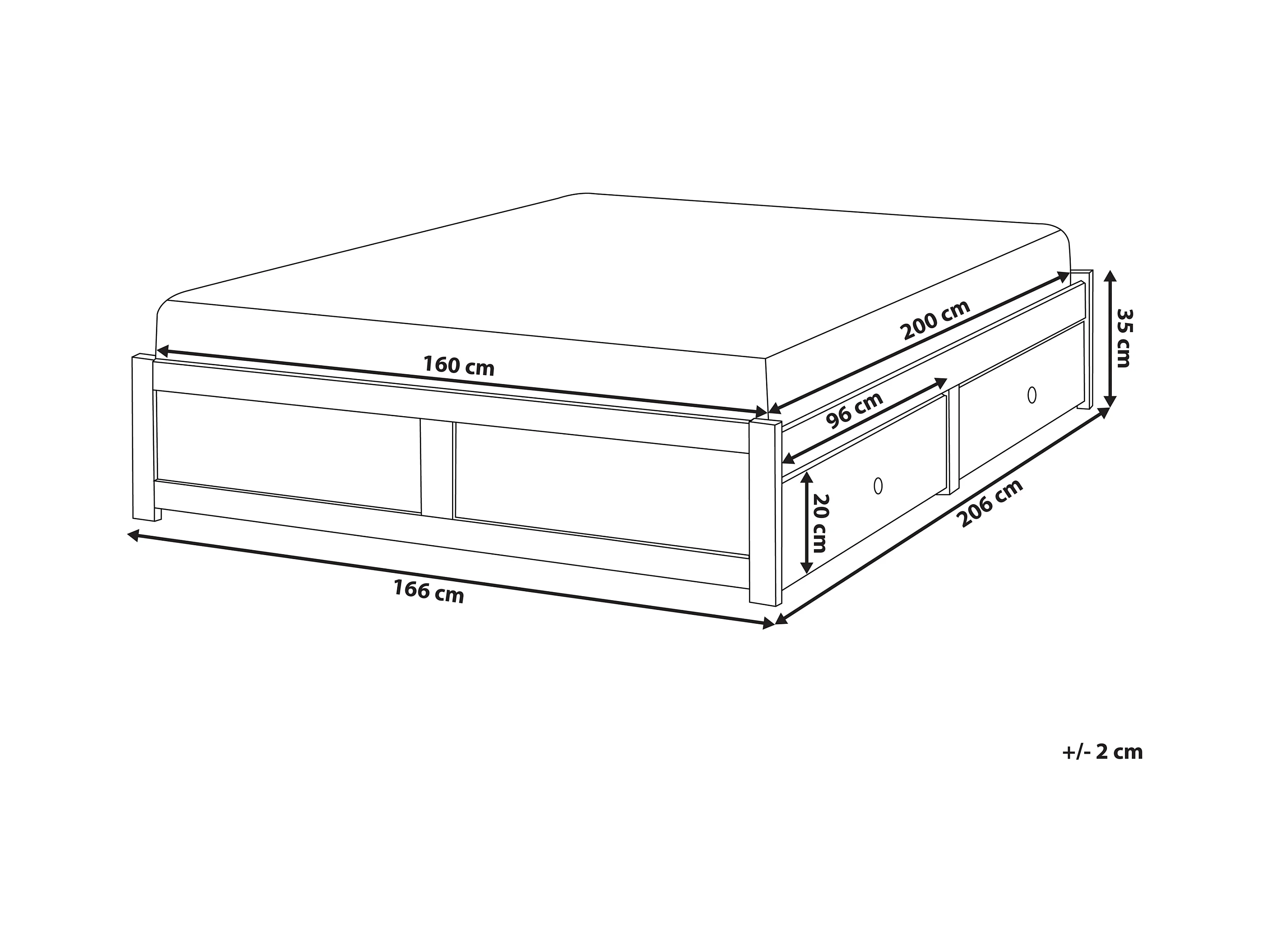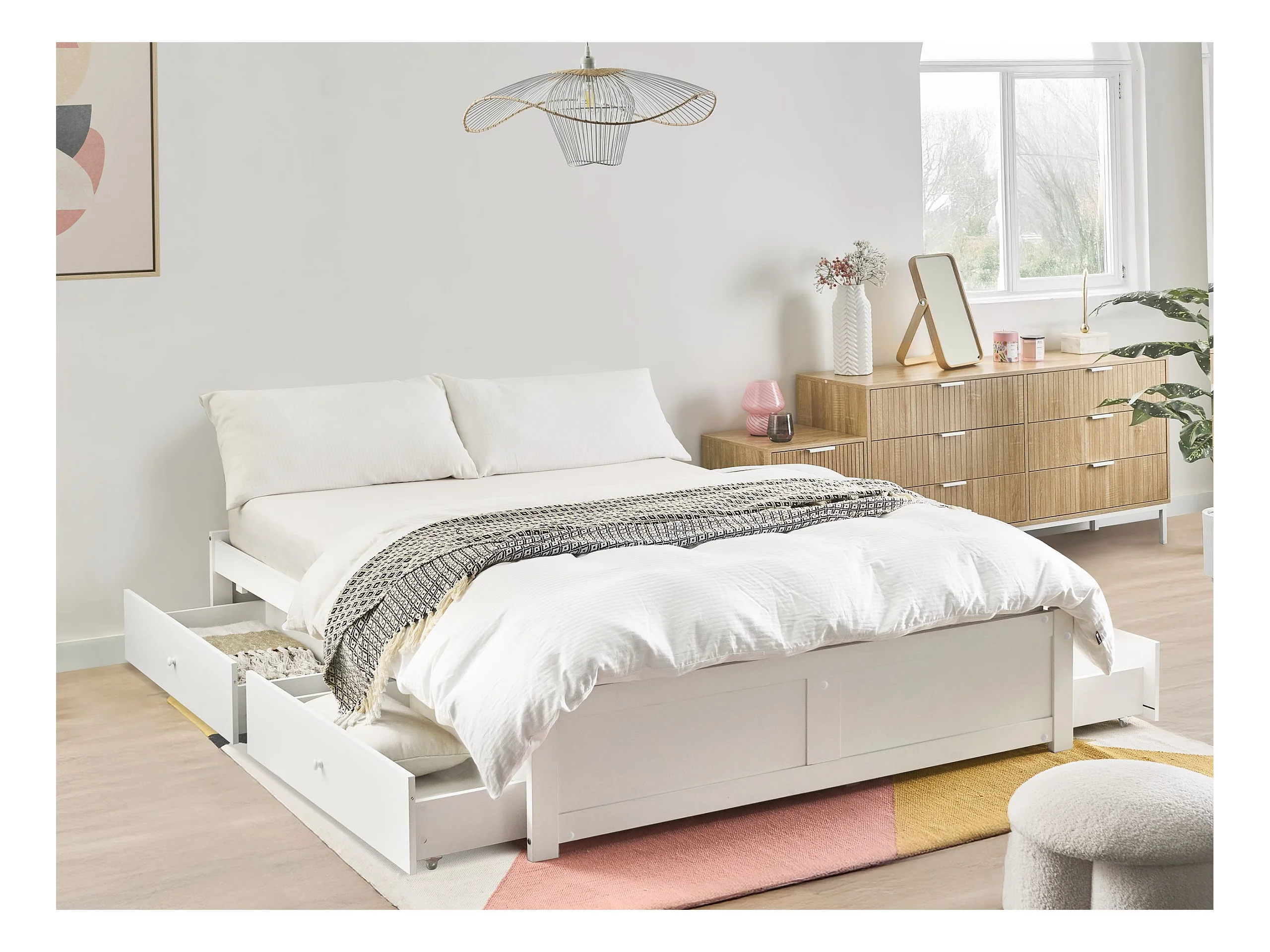 Lit avec tiroirs de rangement sans tête de lit BRUX 160 x 200 cm Blanc