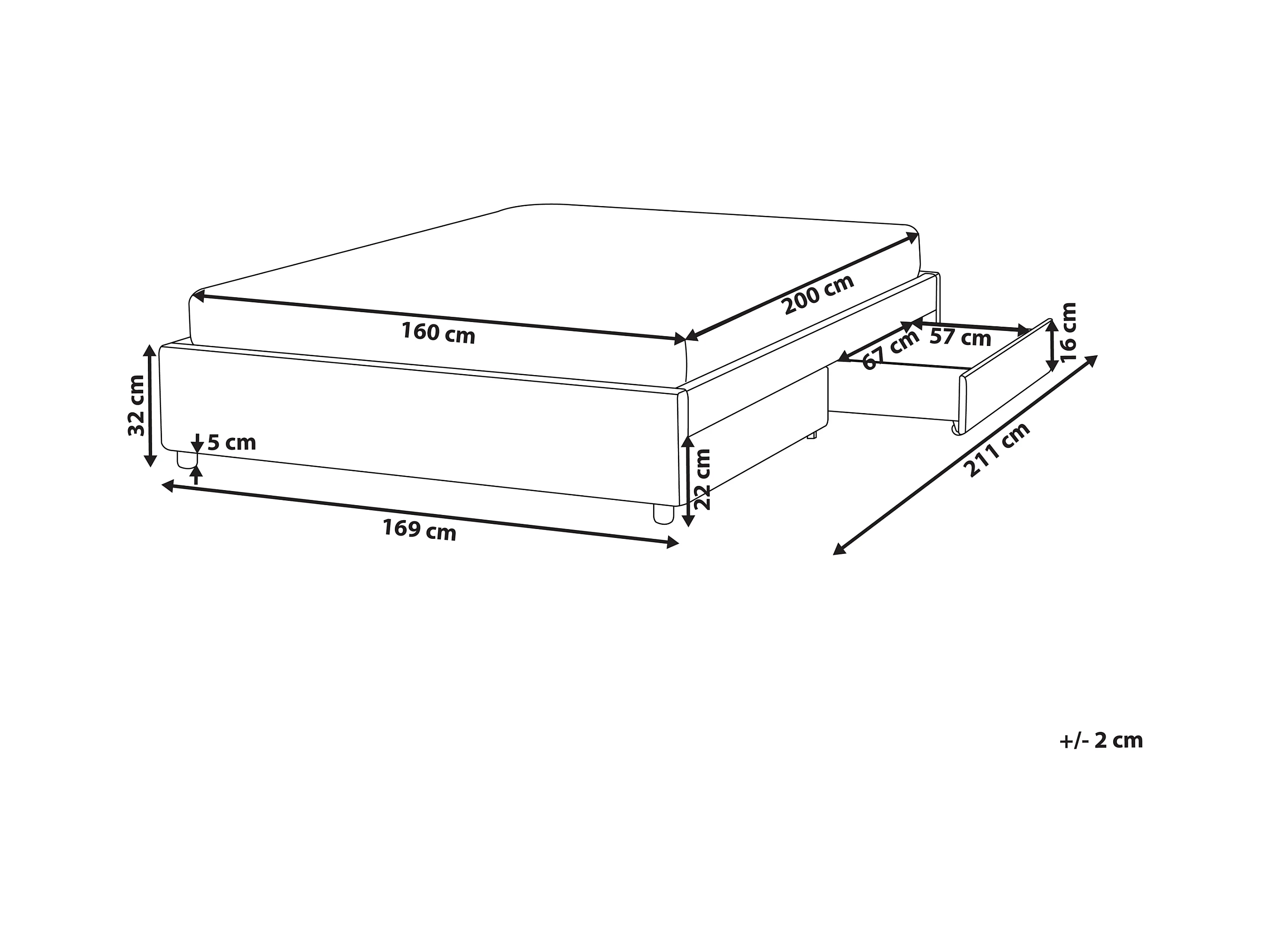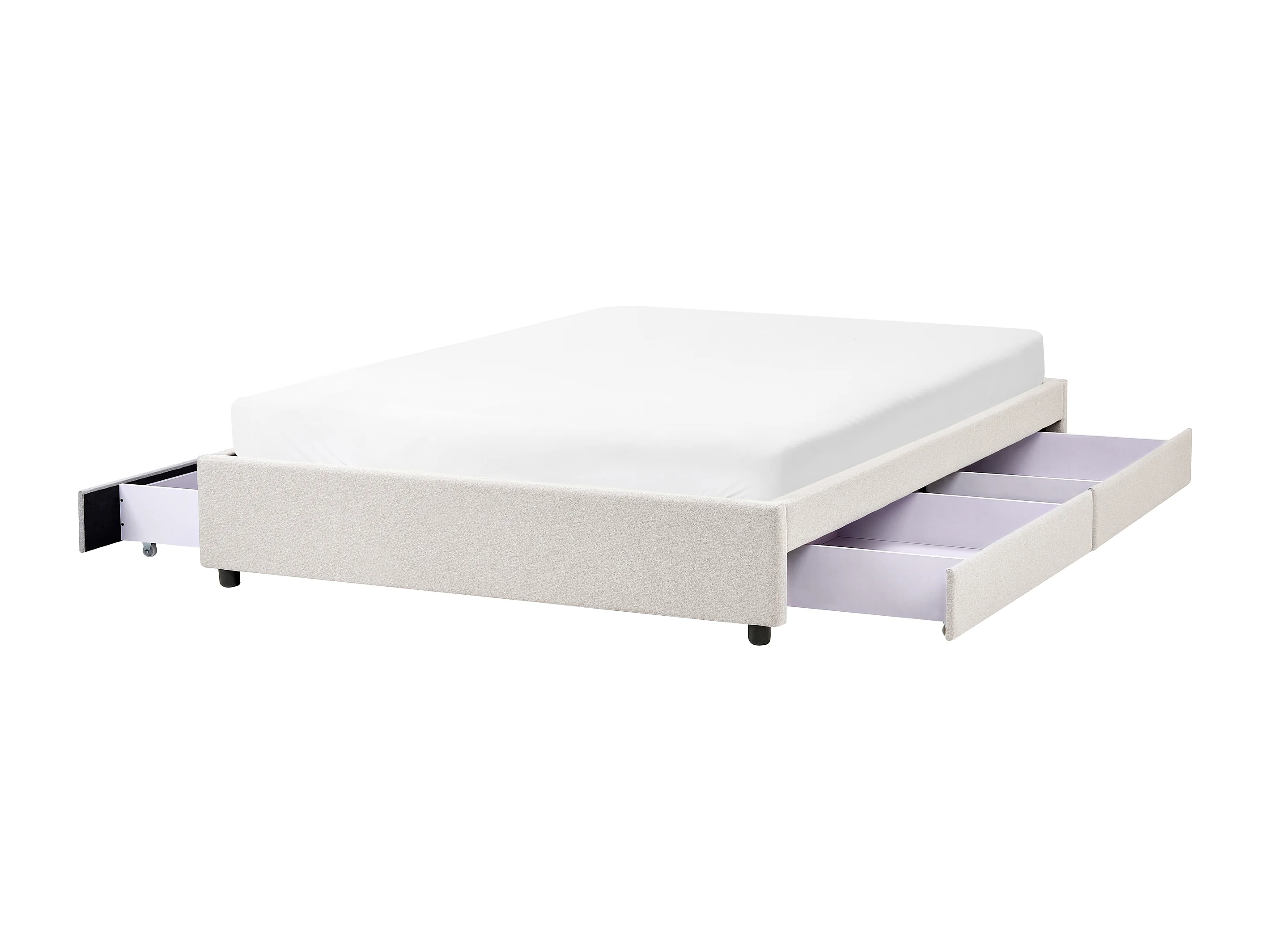 Lit avec tiroirs de rangement sans tête de lit Tissu PRADES 160 x 200 cm Beige clair