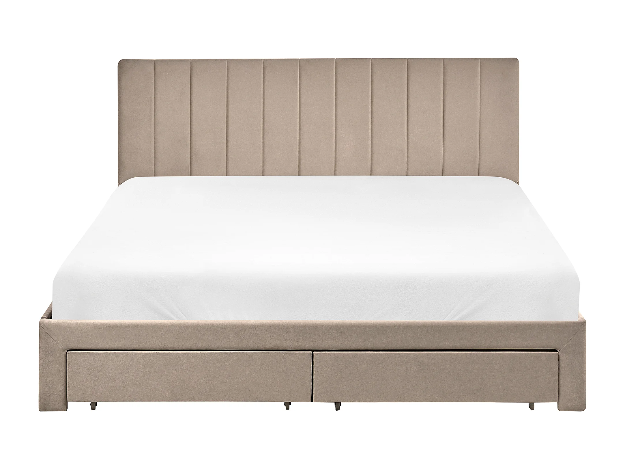 Lit avec tiroirs de rangement Velours LONZAC 160 x 200 cm Taupe