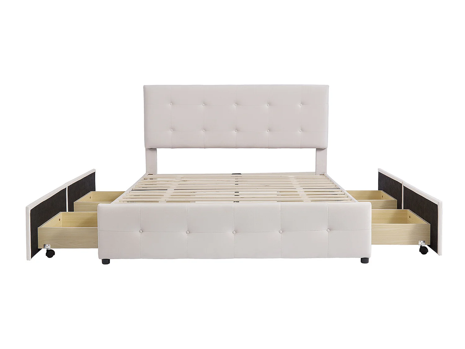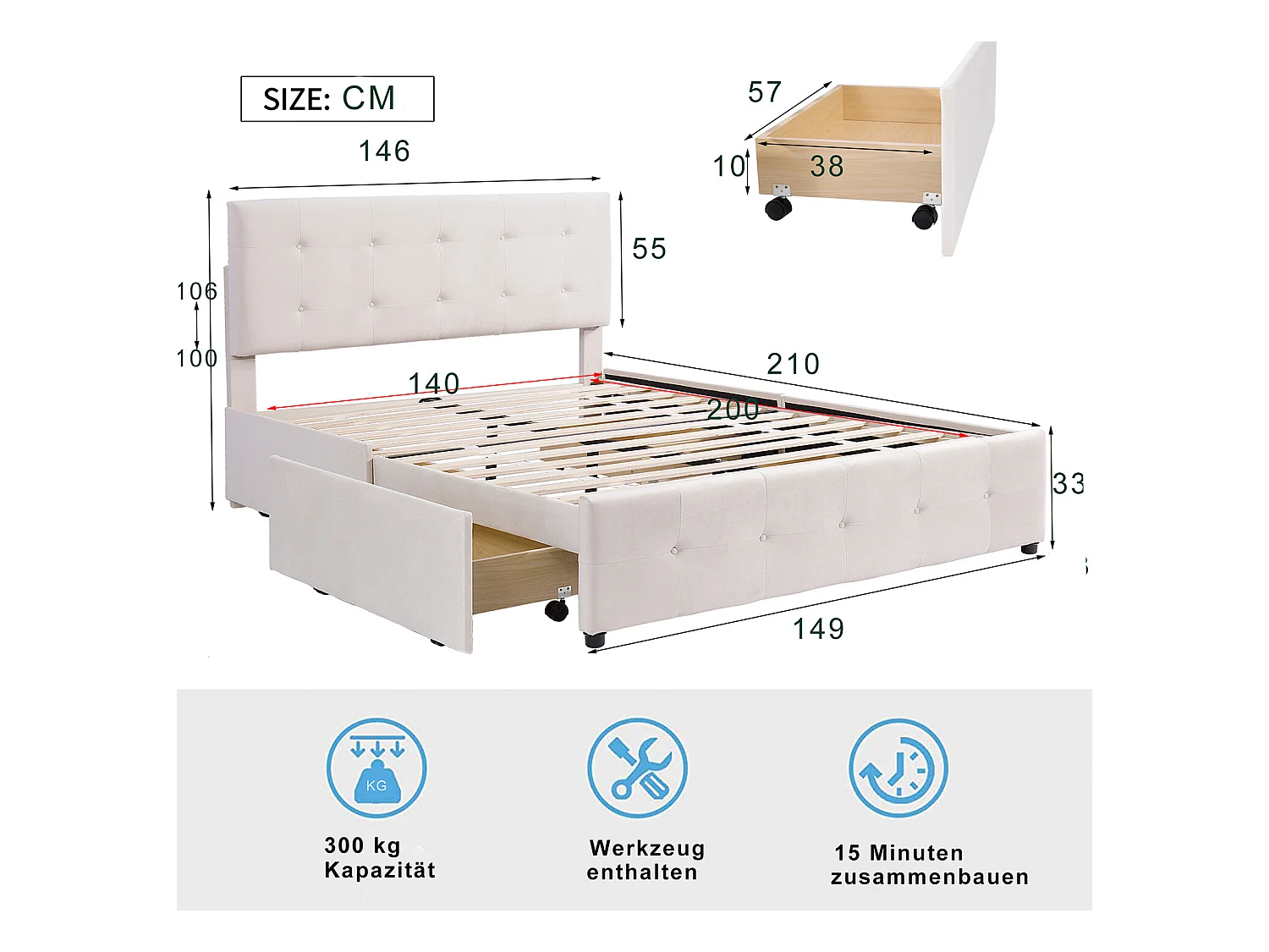 Lit avec tiroirs - velours 140x200 cm Beige - Sweiko