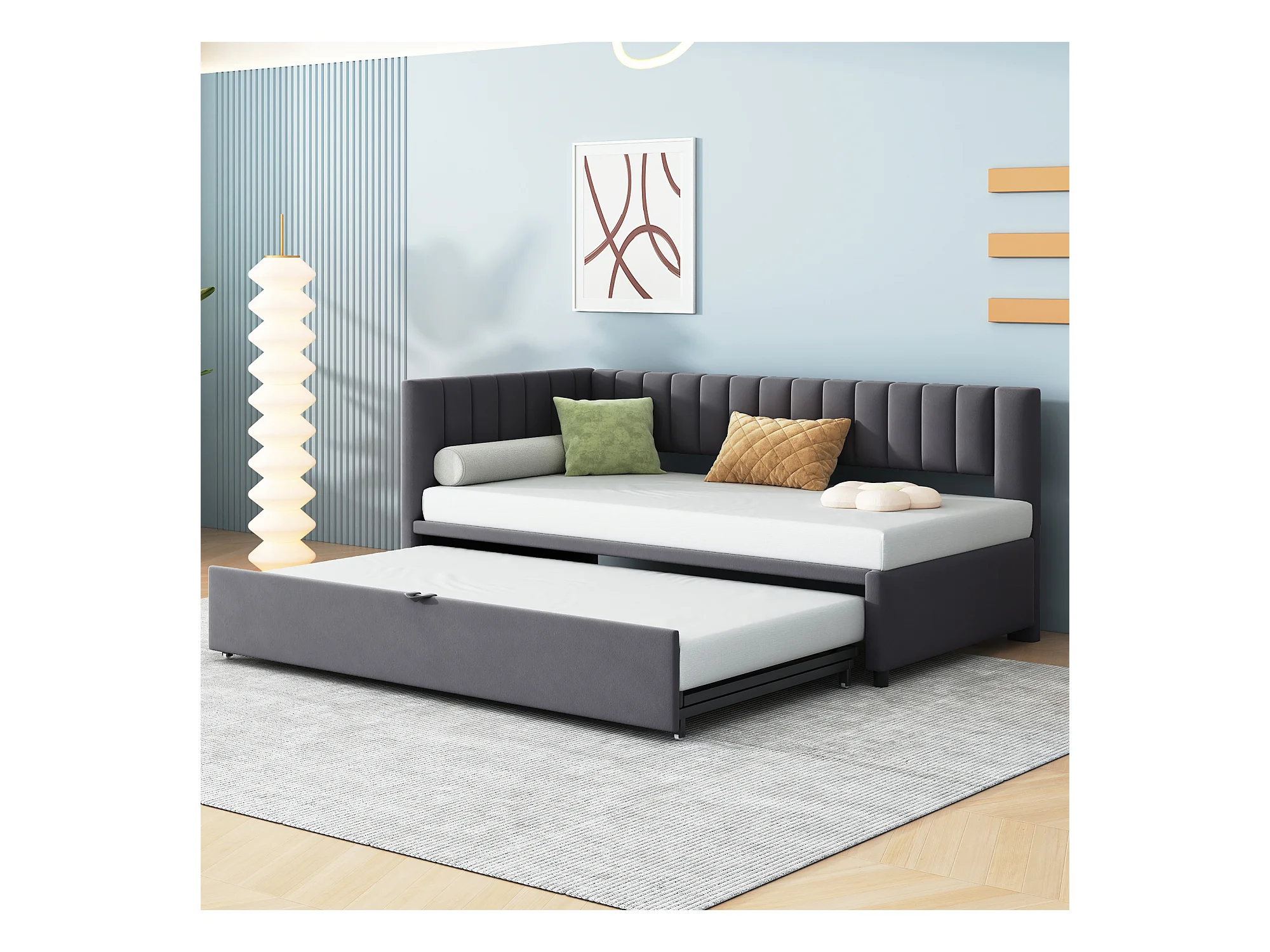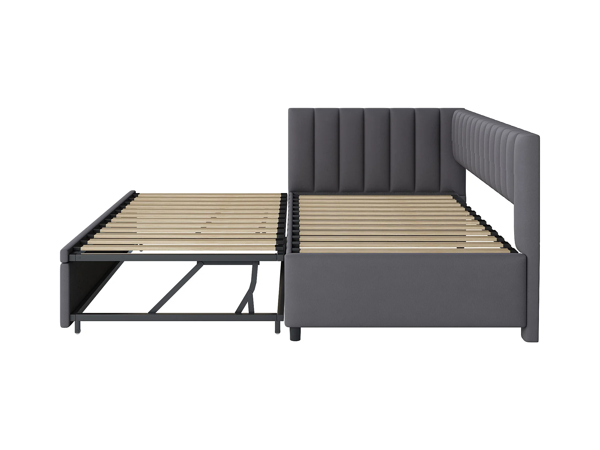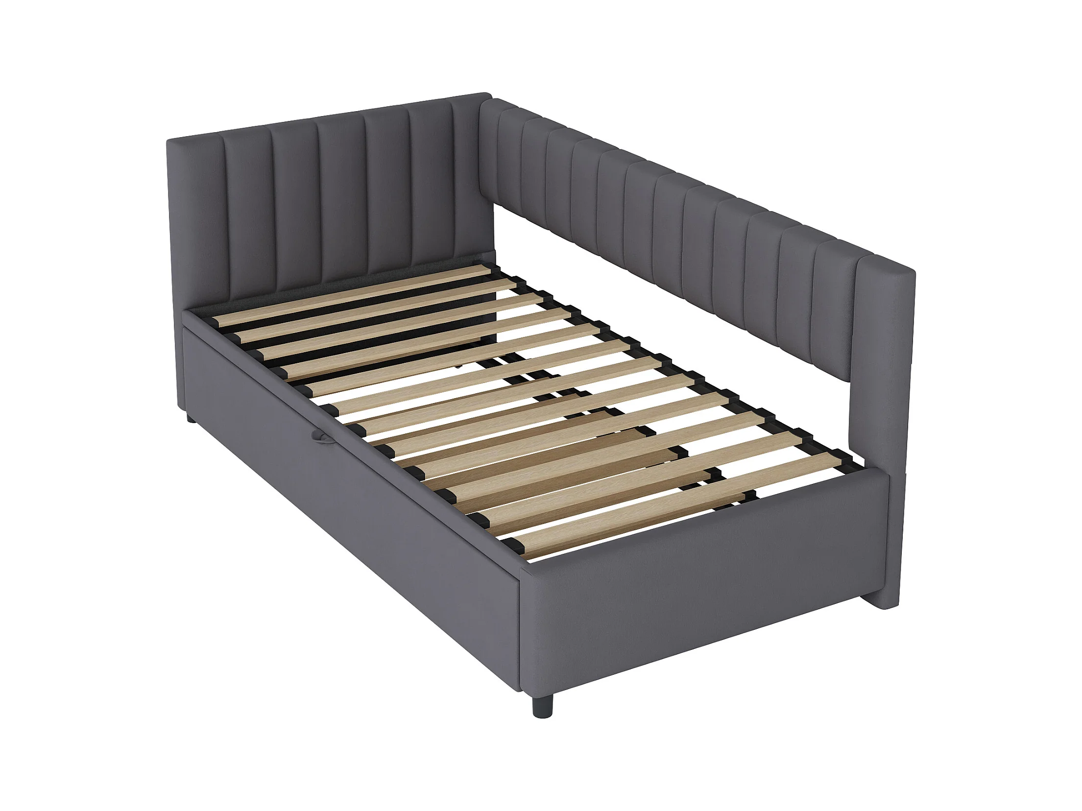 Lit banquette 90/180x200 cm - velours gris foncé - Lit enfant avec dossier rembourré et sommier à lattes - sans matelas