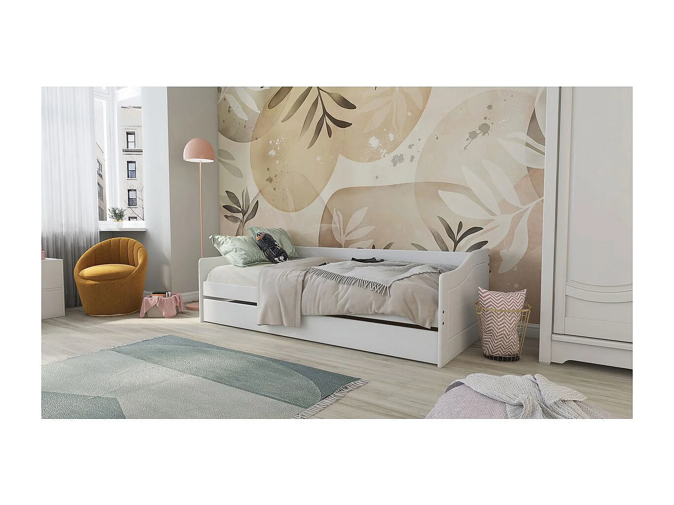 Lit Banquette 90x190 en pin massif coloris vernis blanc - Longueur 197 x Profondeur 97 x Hauteur 62 cm
