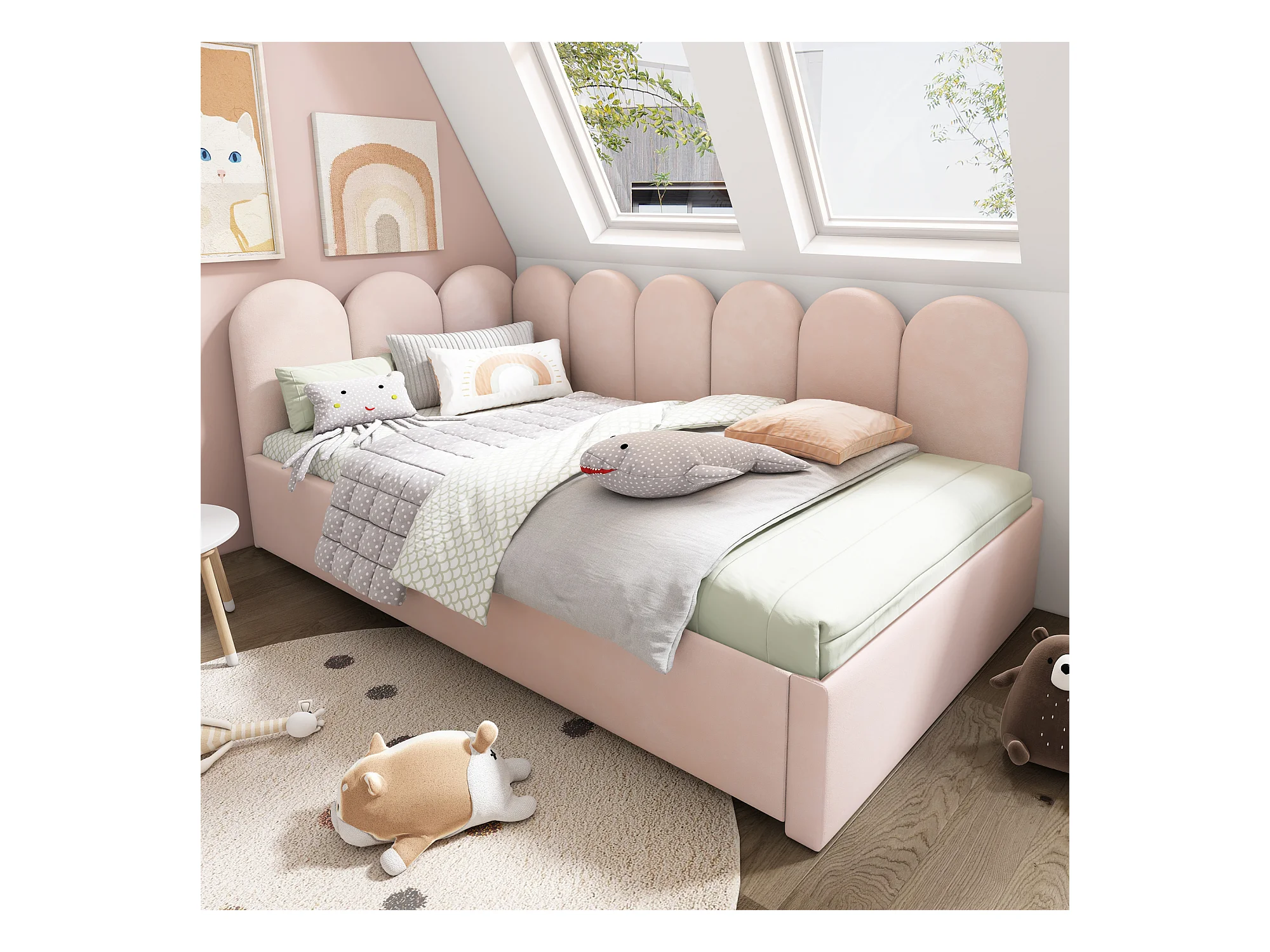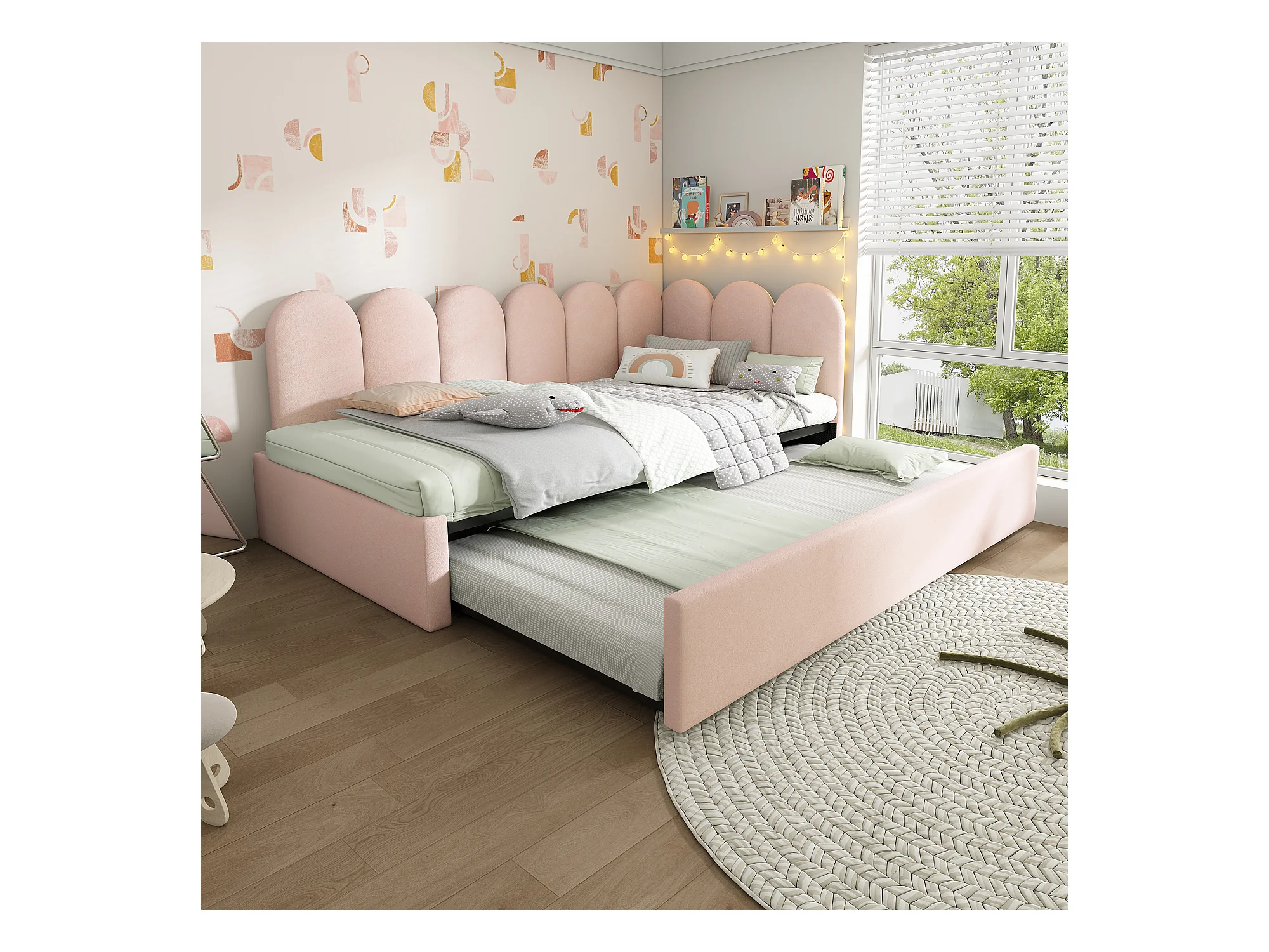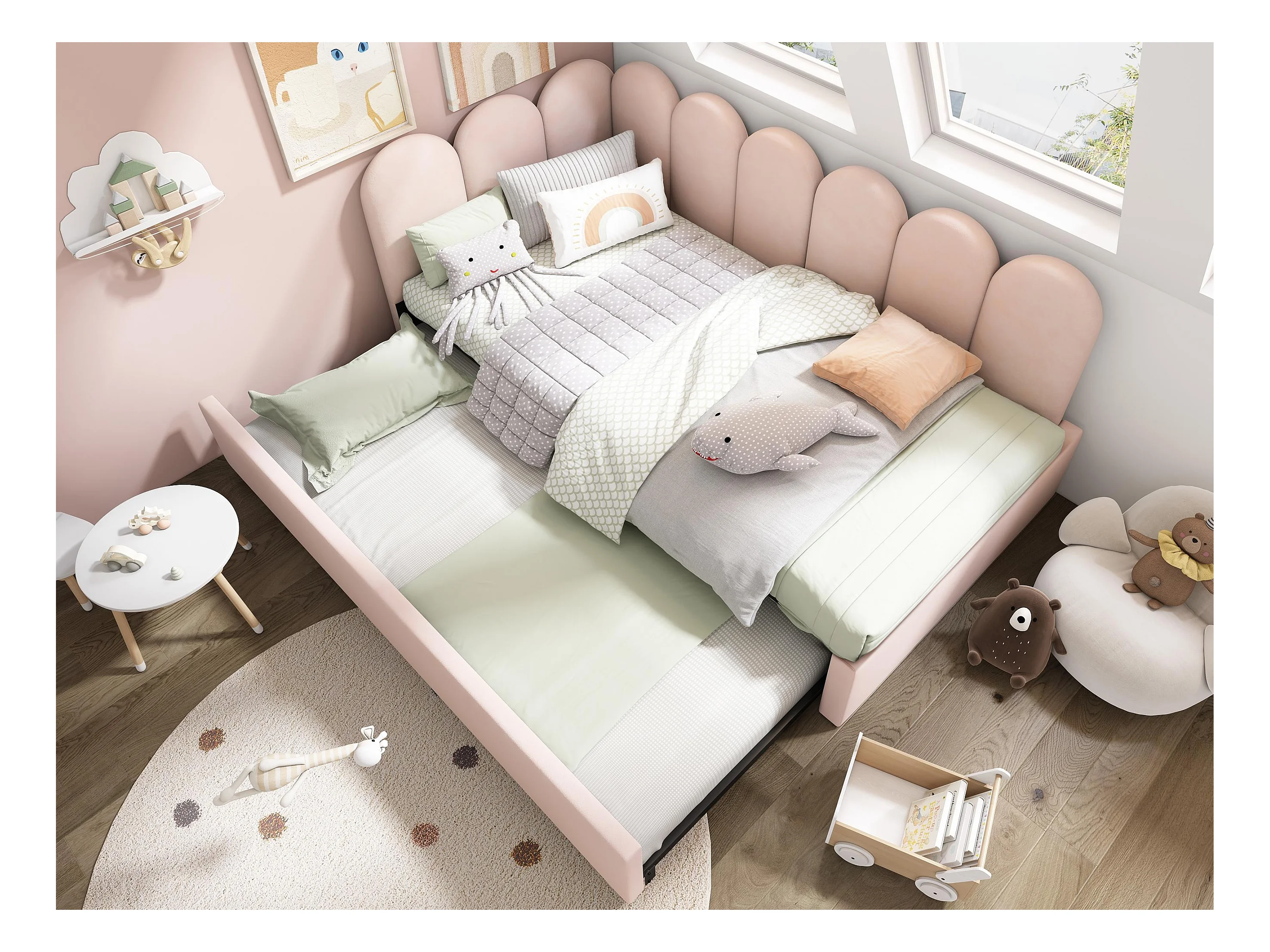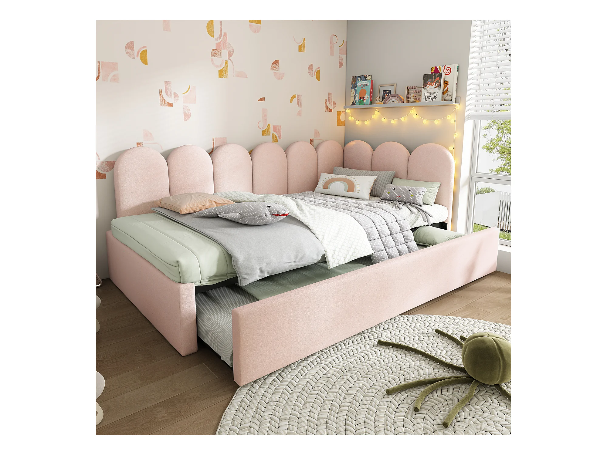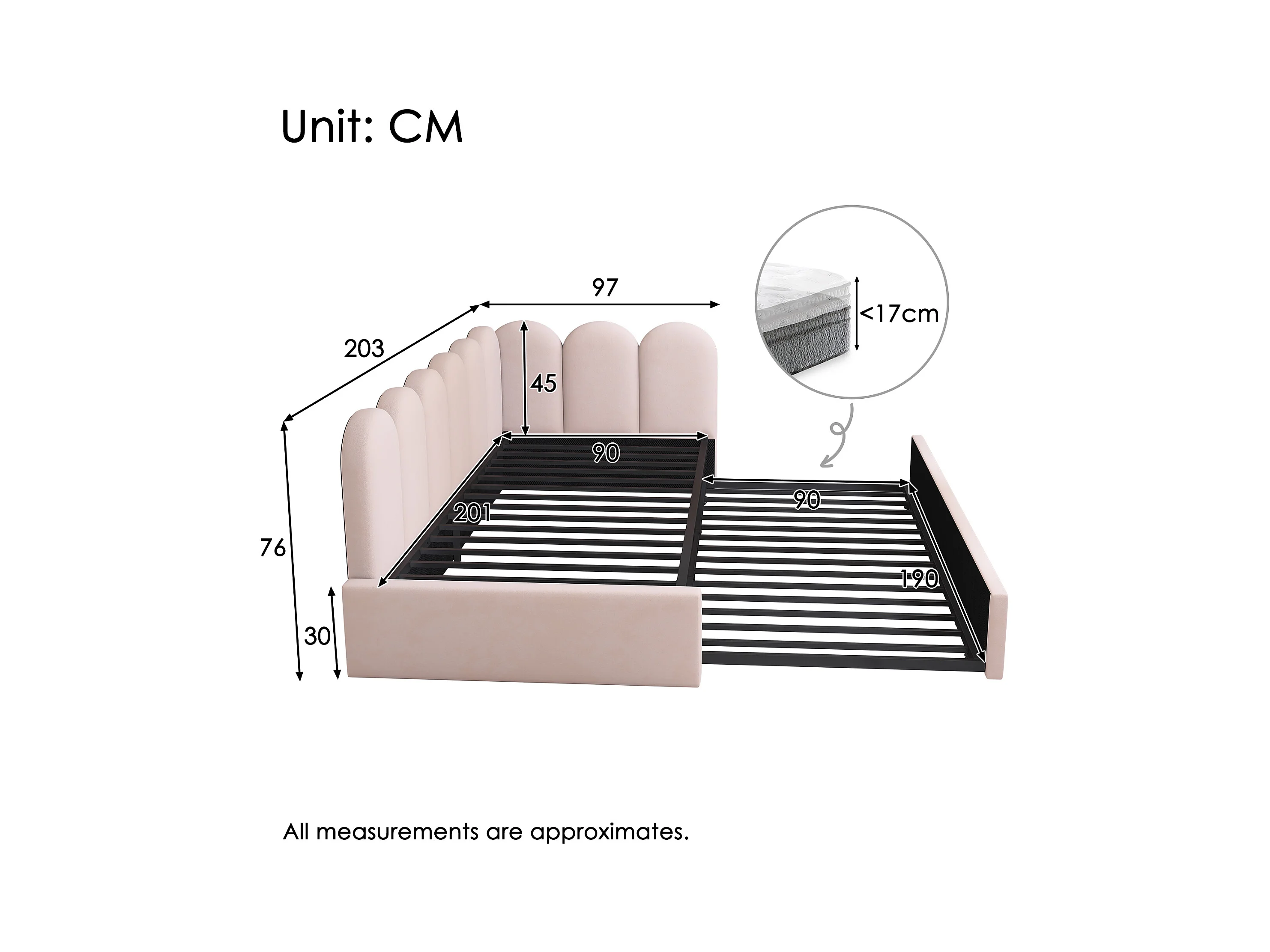 Lit banquette 90x200 cm - avec lit gigogne 90x190 - tissu en velours - Rose