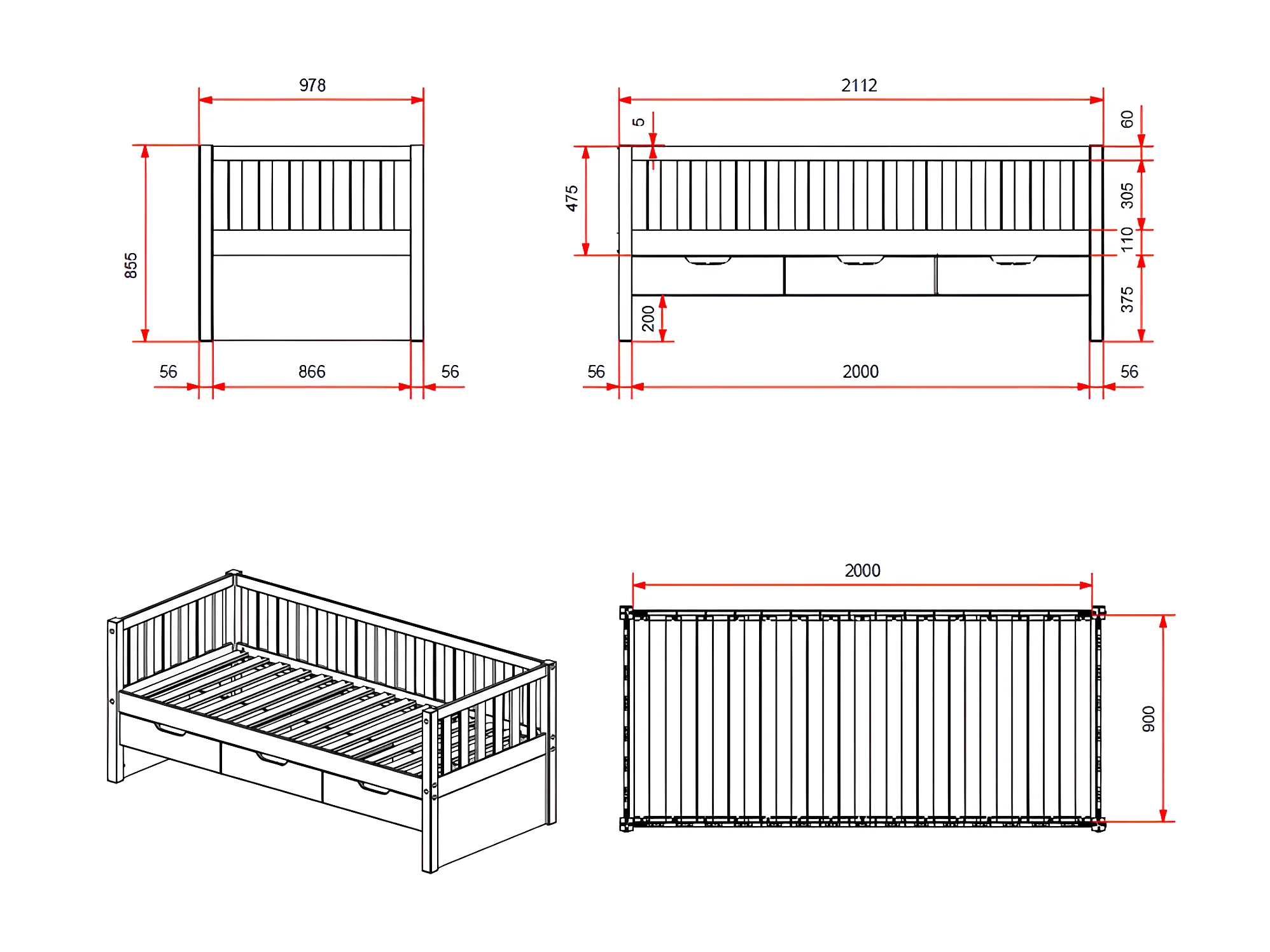 Lit Capitaine Enfant & 3 Tiroirs "Fritz" 90x200cm Blanc