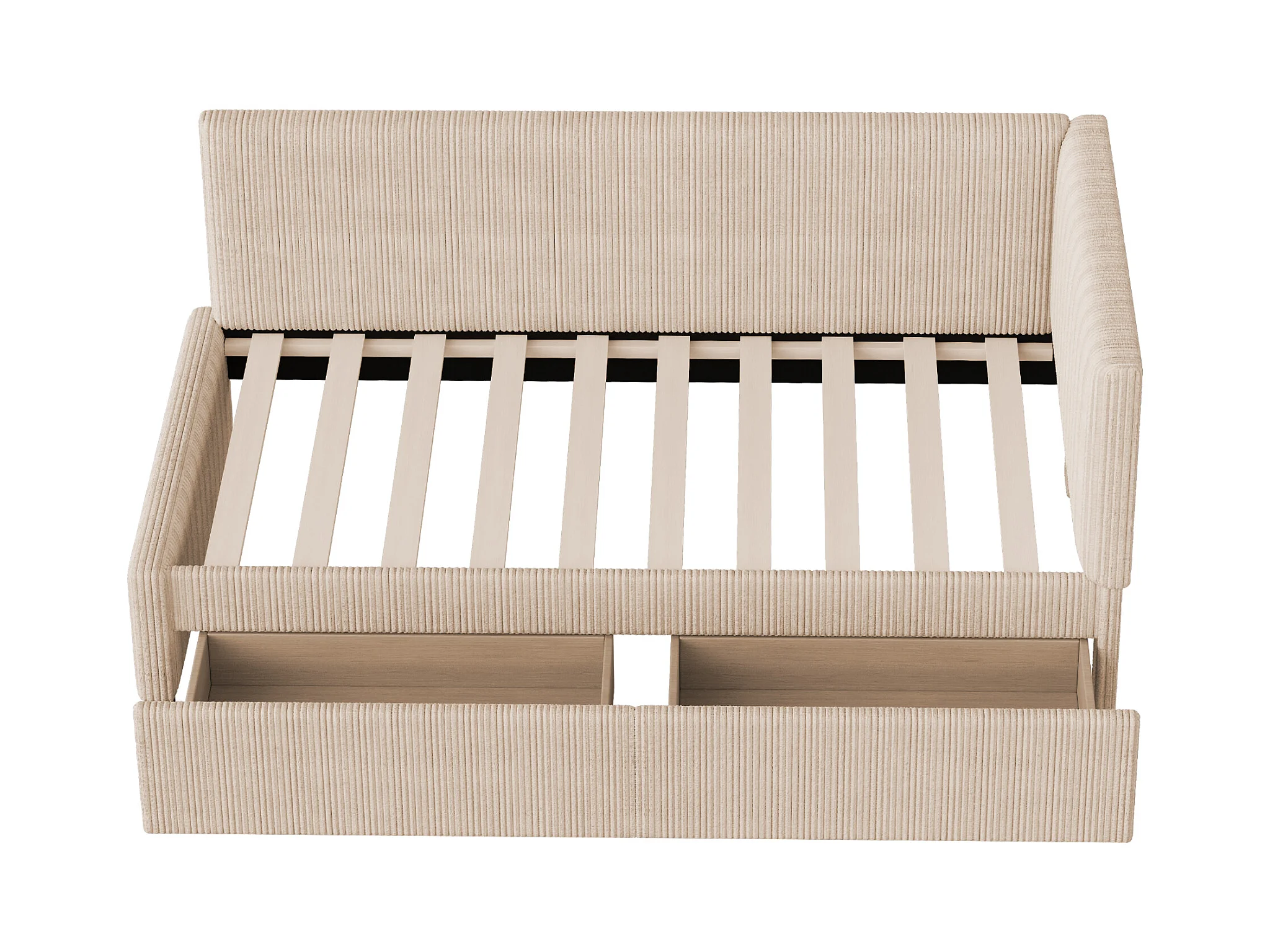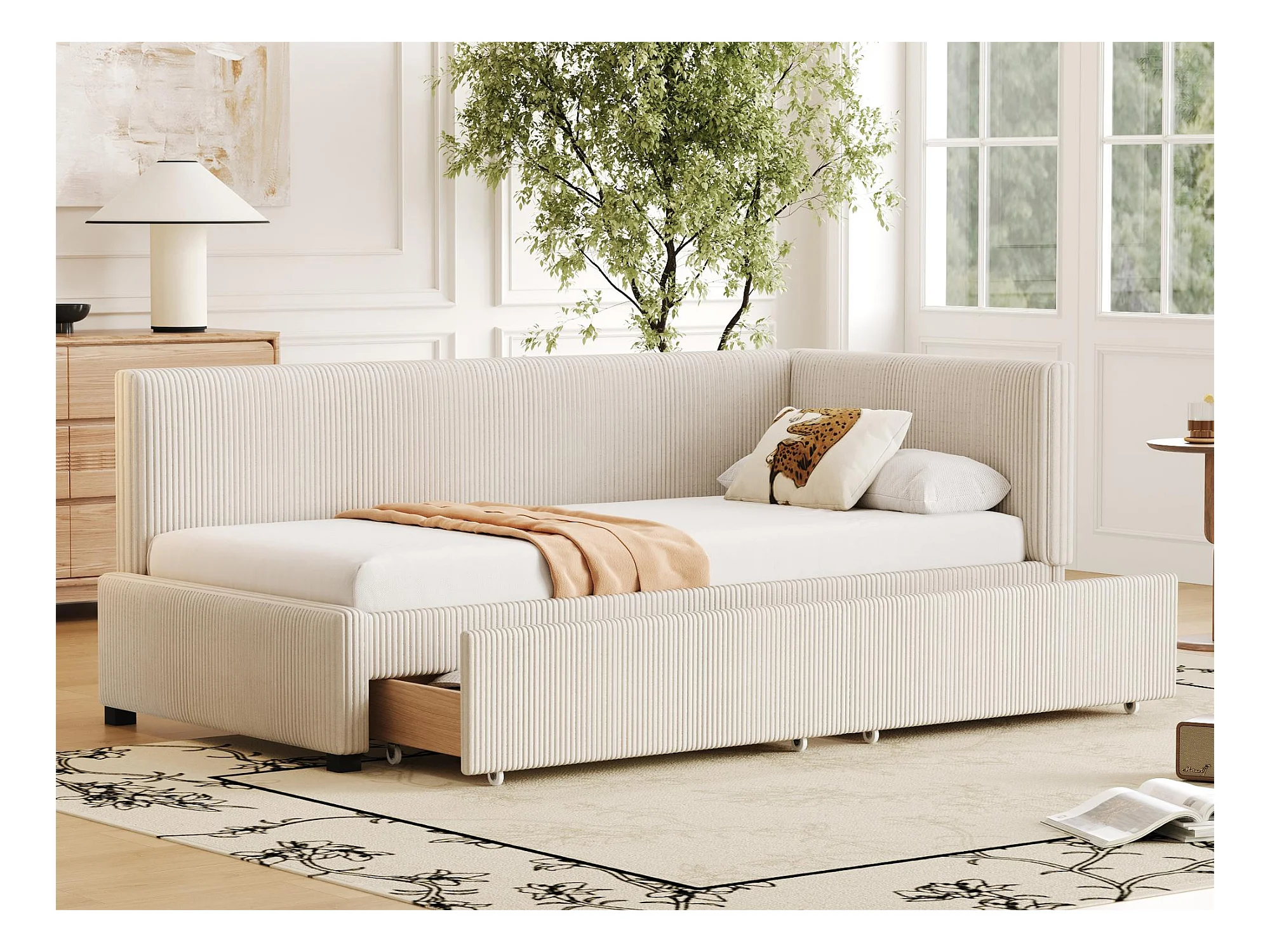 Lit banquette capitonné 90x200cm en velours - 2 tiroirs - avec sommier à lattes - Beige
