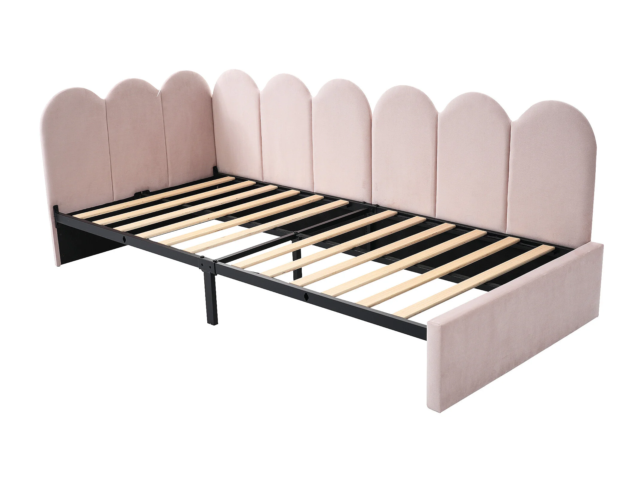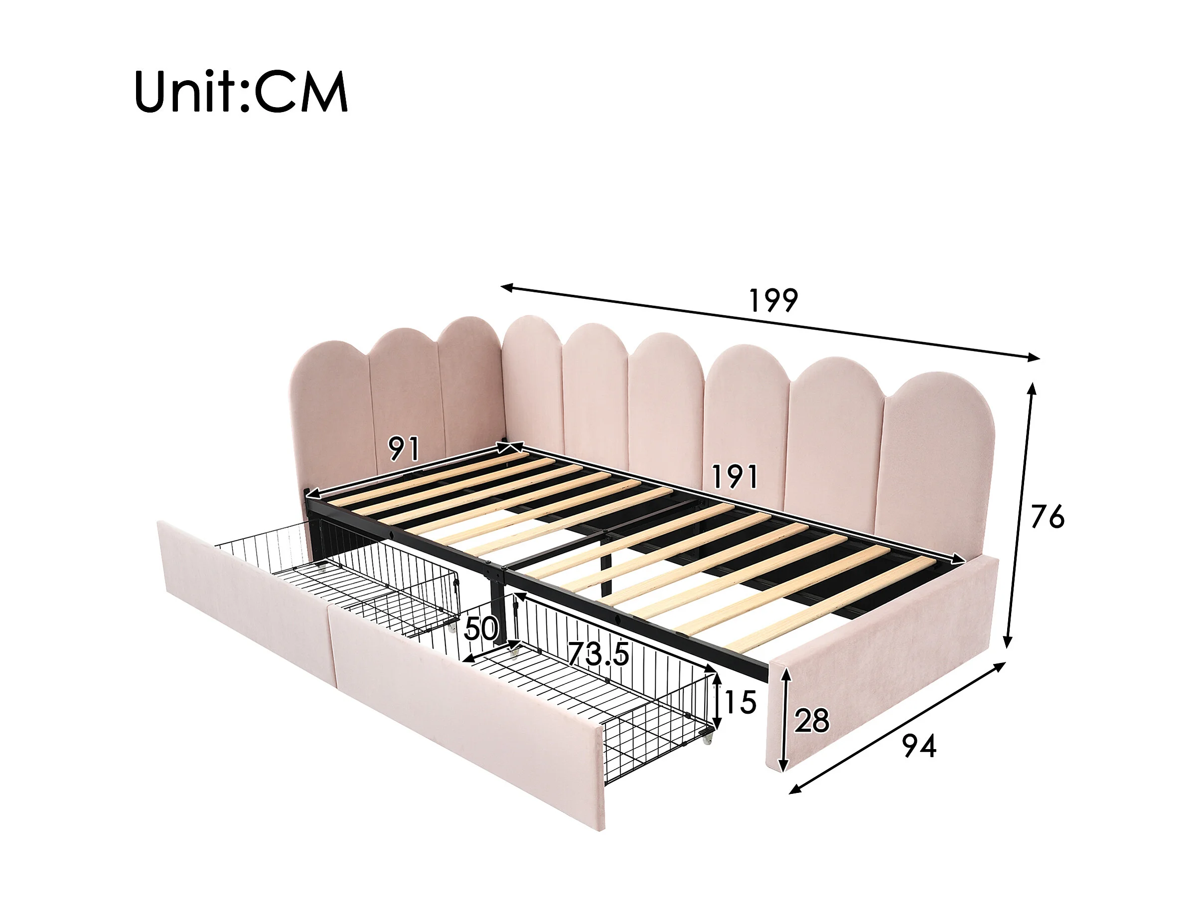 Canapé-lit 90x190 cm avec sommier - lit jeune avec 2 tiroirs de rangement - velours rose (sans matelas)