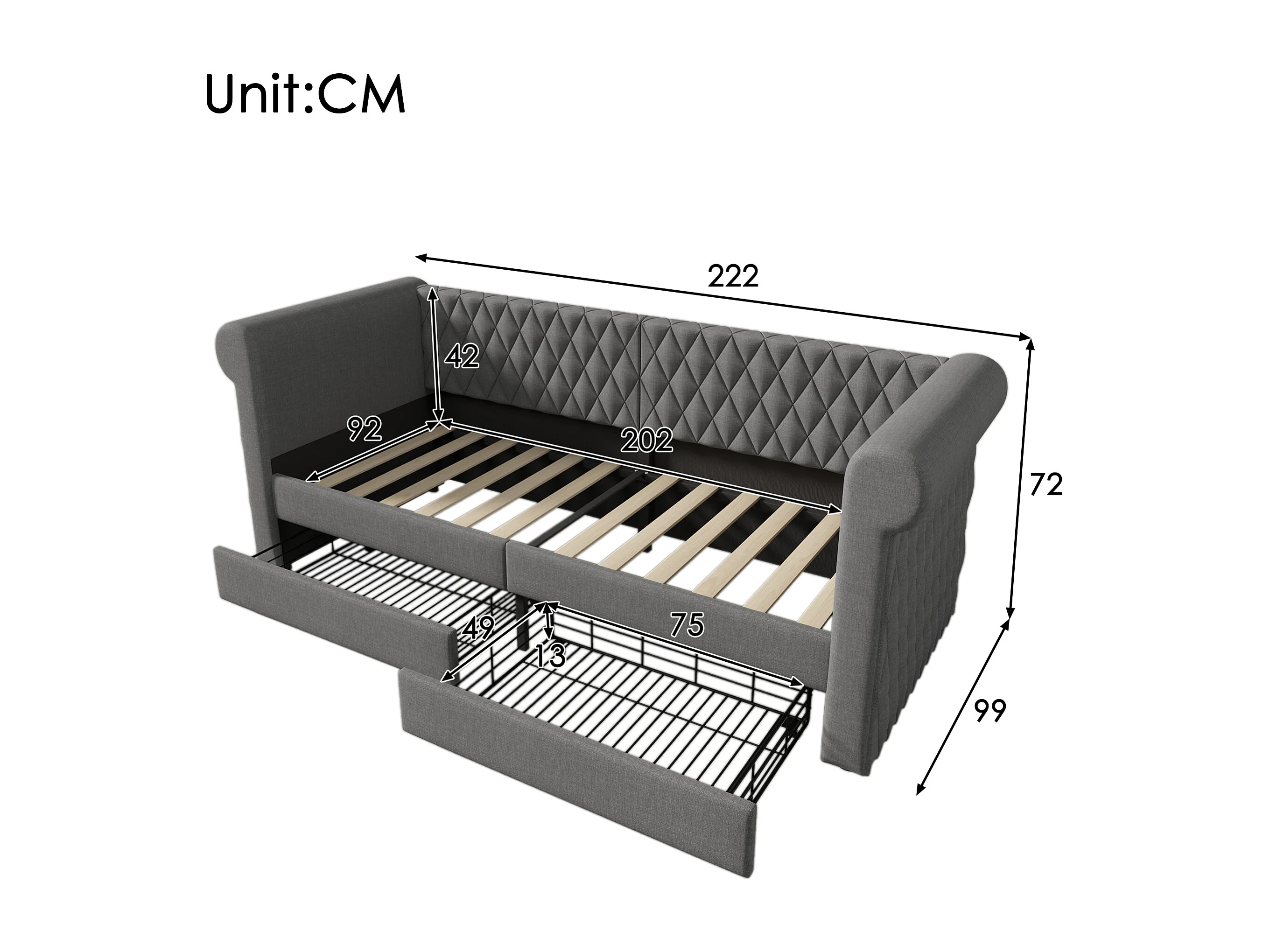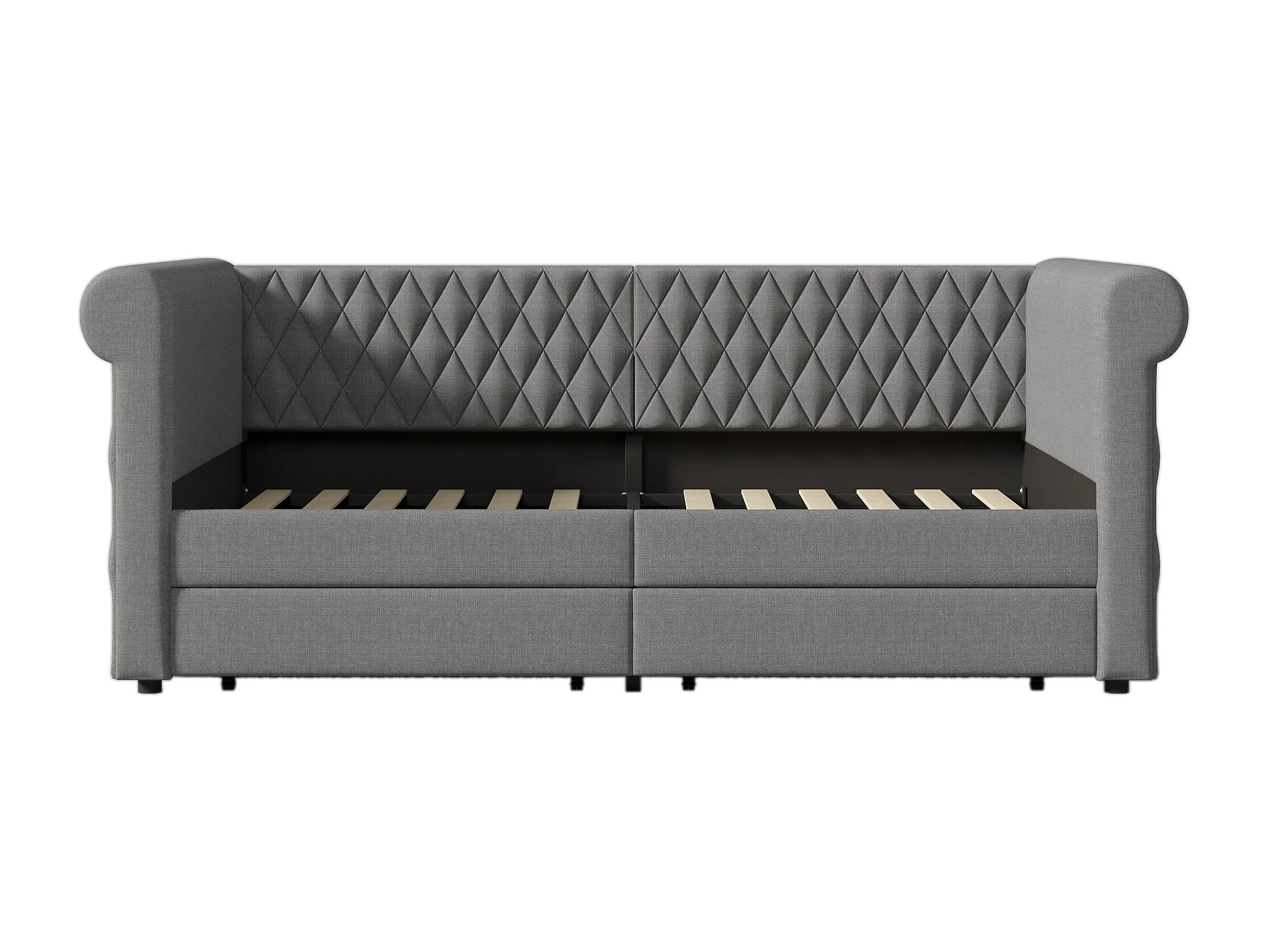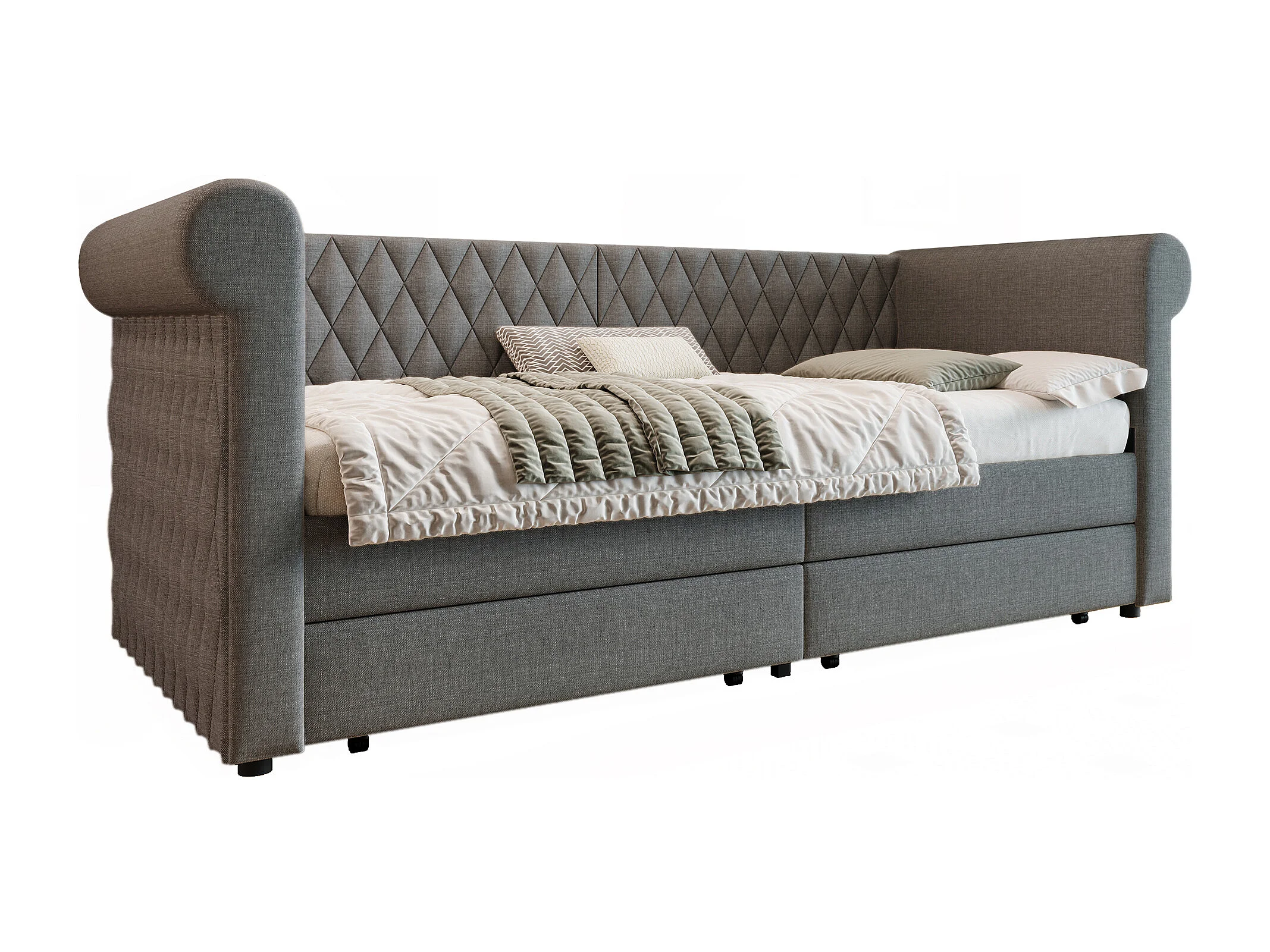 Canapé-lit 90x200 cm avec sommier - lit jeune avec 2 tiroirs de rangement - lin gris (sans matelas)