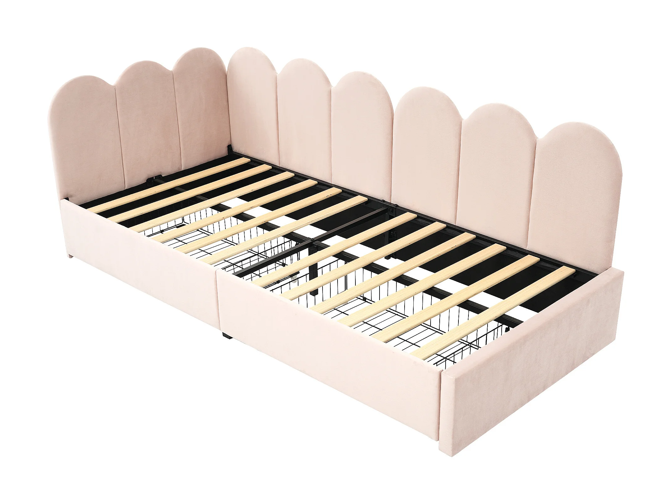 Canapé-lit 90x200 cm avec sommier - lit jeune avec 2 tiroirs de rangement - velours rose (sans matelas)