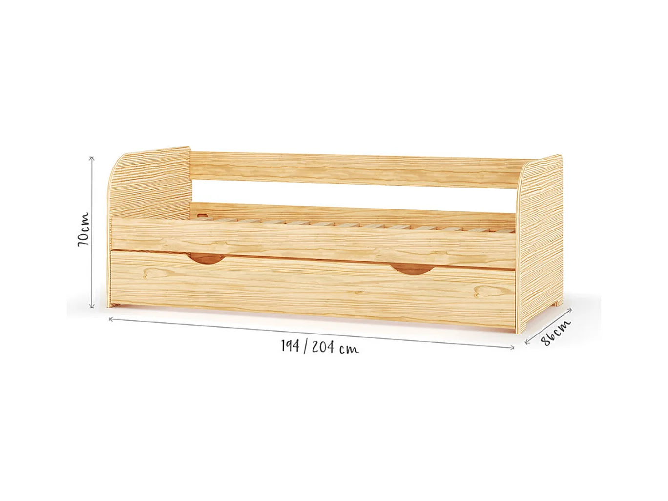 Lit banquette gigogne 80x190 cm bois massif bois EZRA