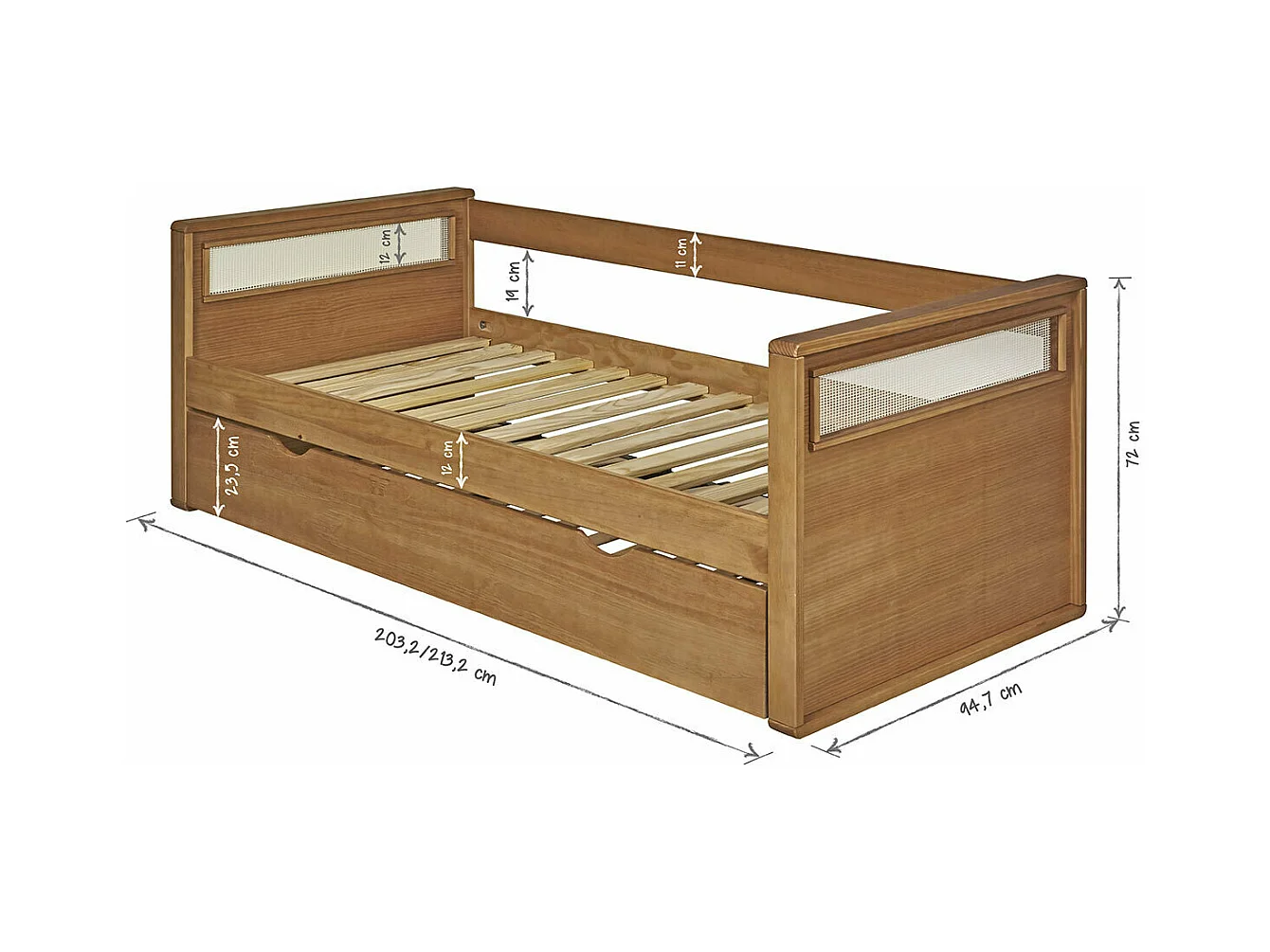 Lit banquette gigogne 90x190 cm bois massif bois COBI