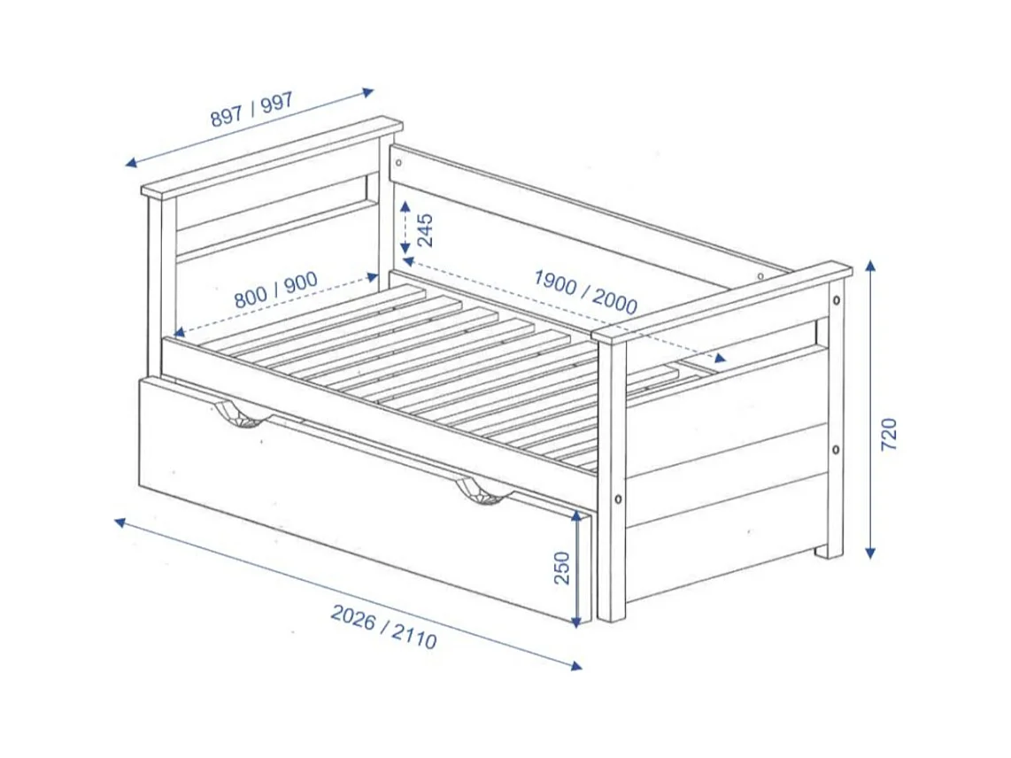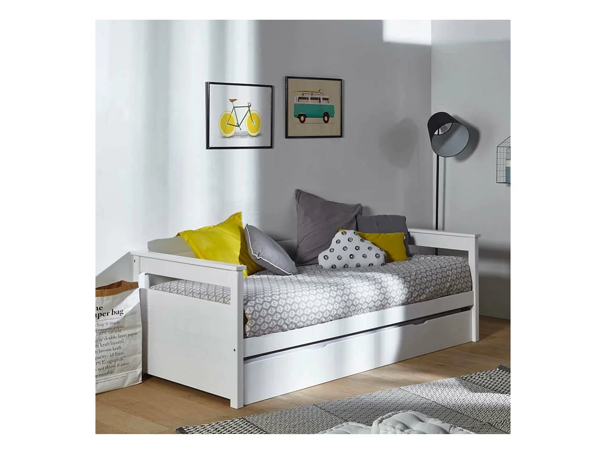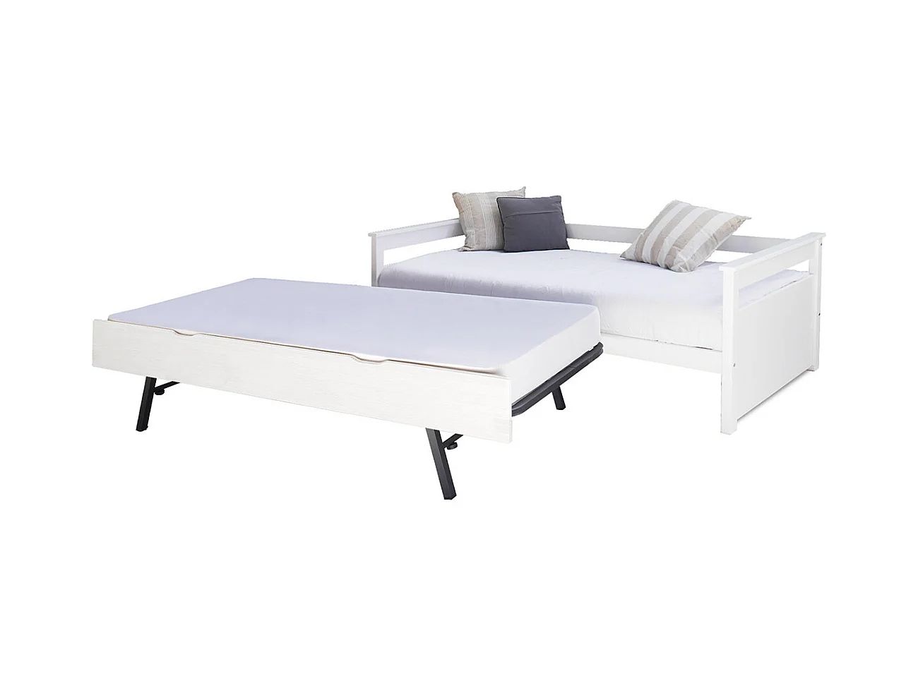 Lit banquette gigogne 90x190 cm bois massif blanc IZAO