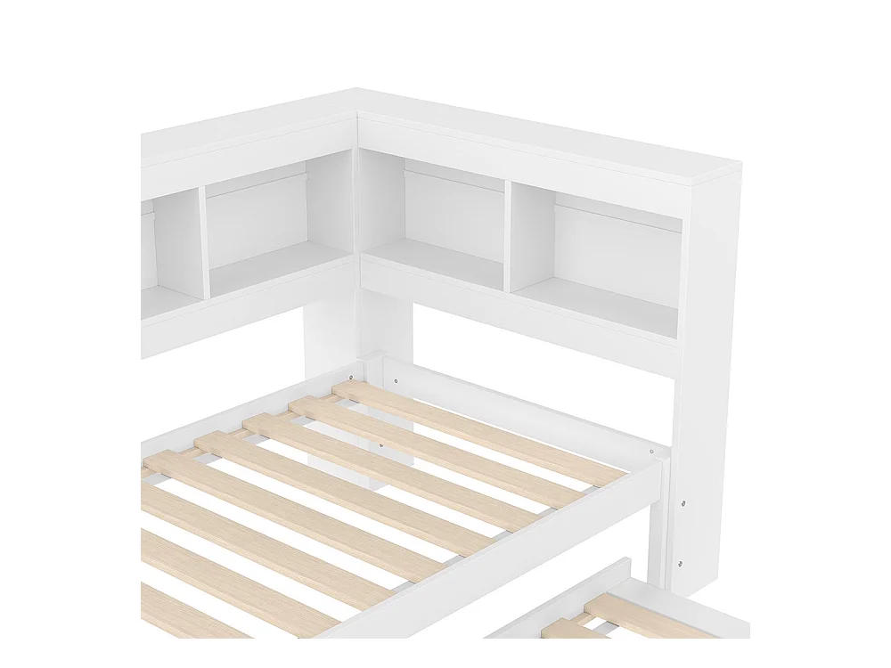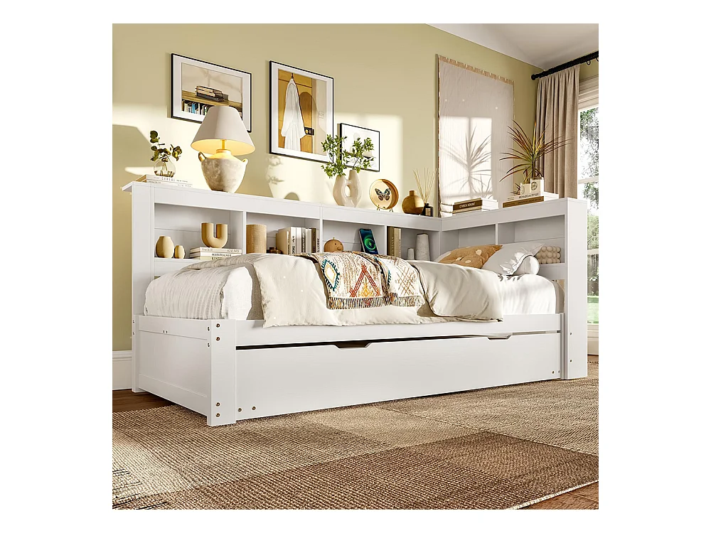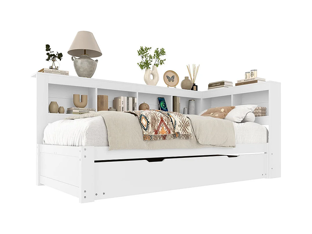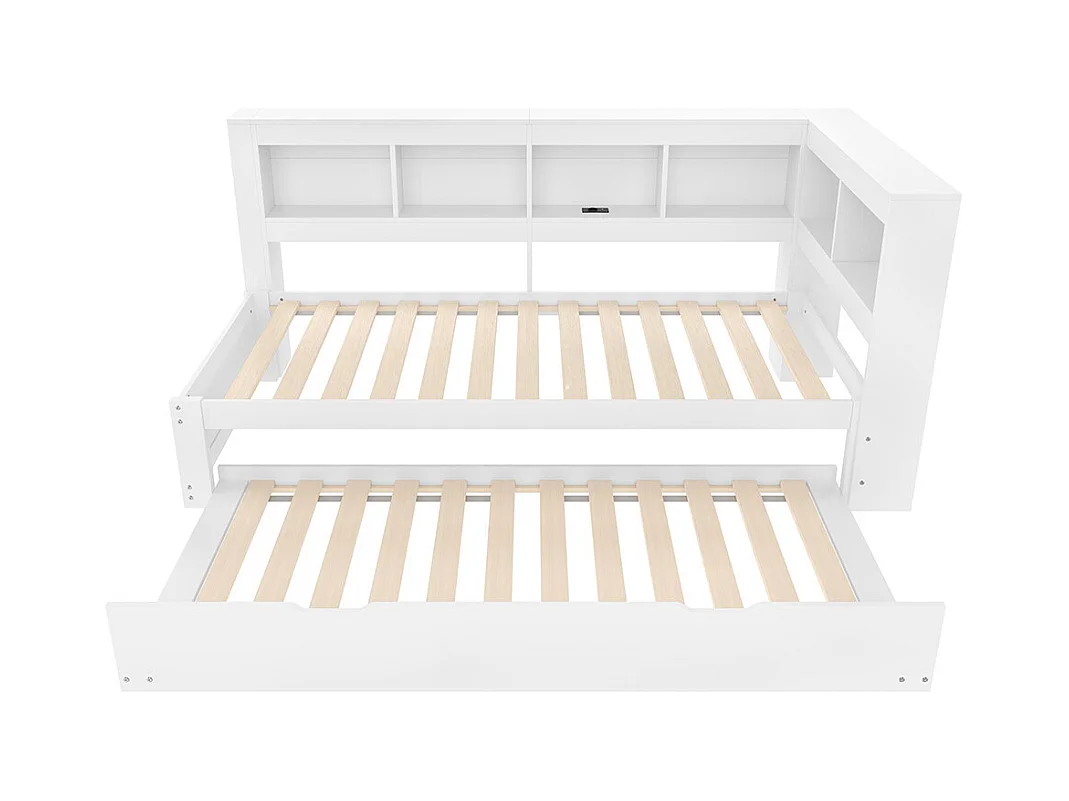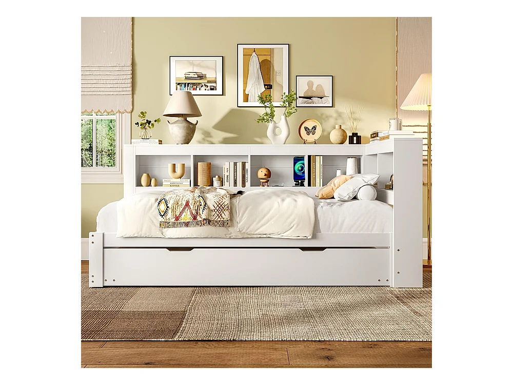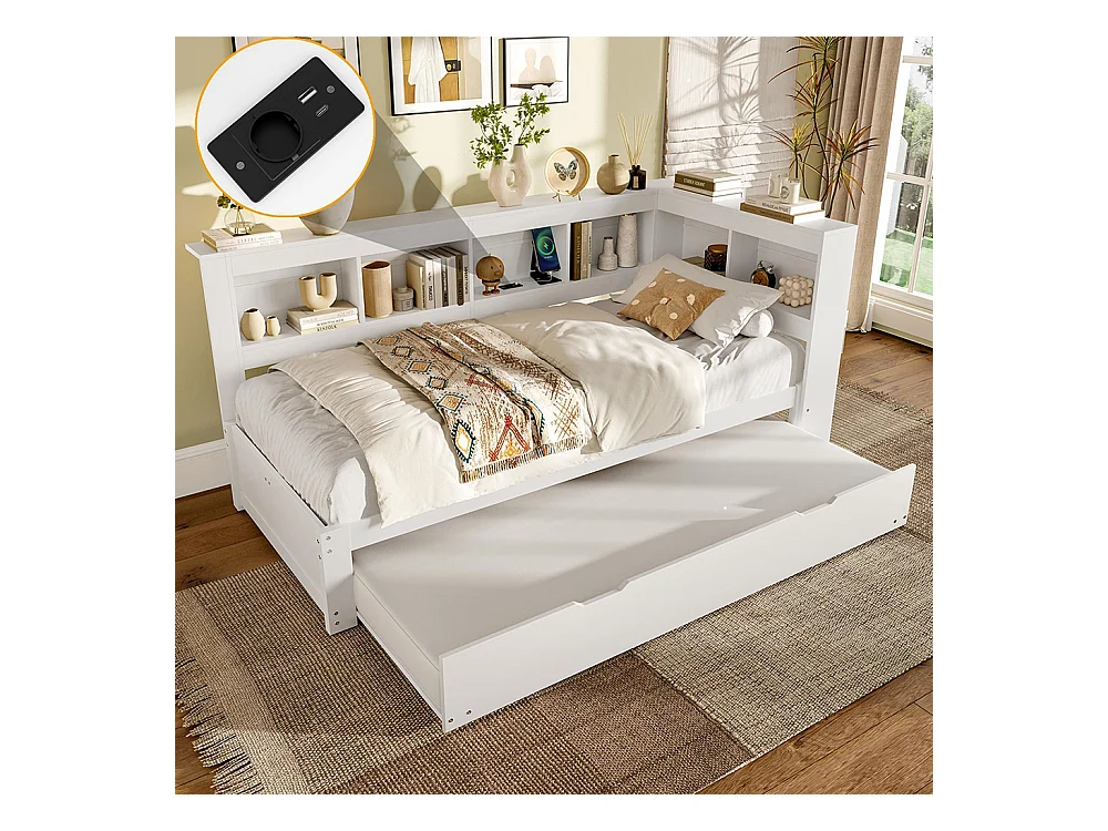 Lit banquette lit gigogne jour 90x200 cm canapé-lit ports USB électrique sommier à lattes sans matelas panneau particules blanc