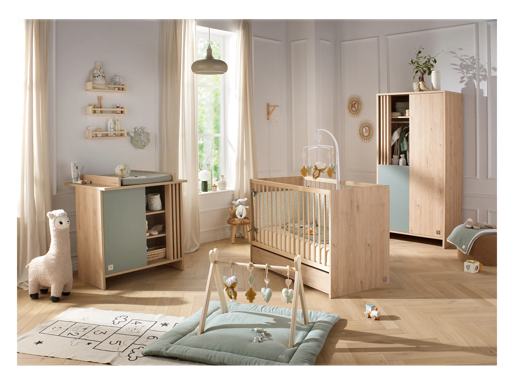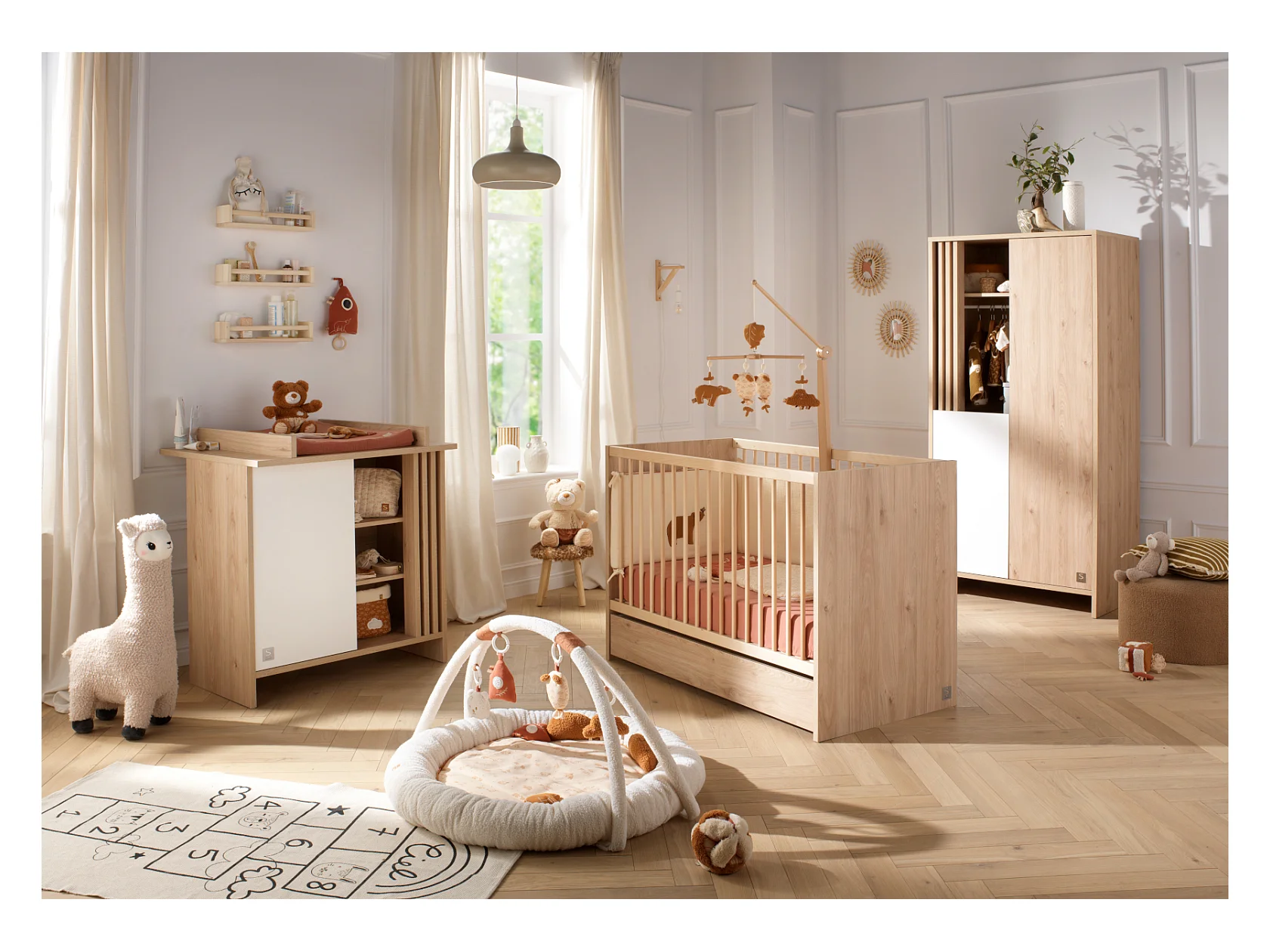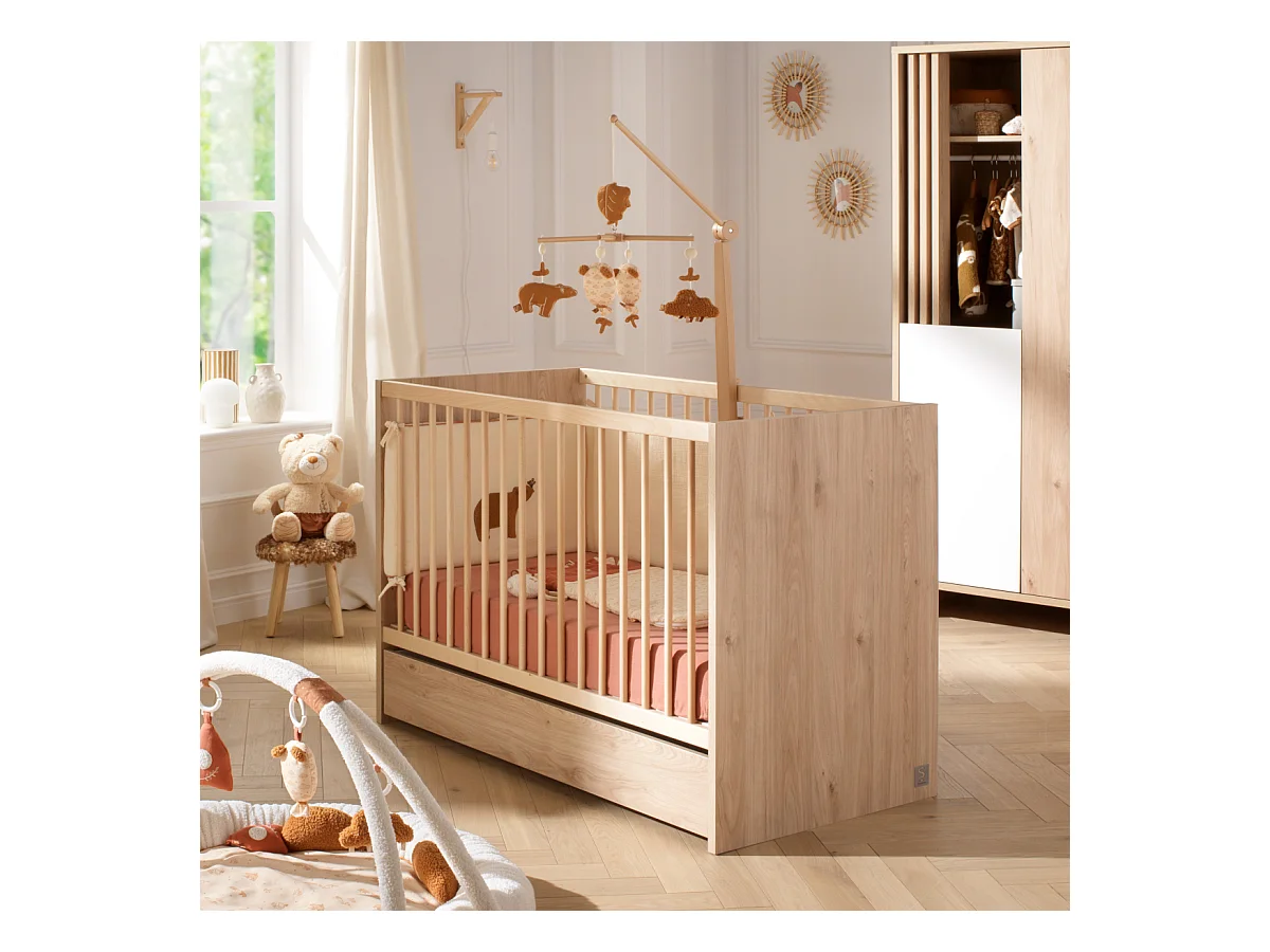 Lit bébé 120x60 à barreaux en bois décor chêne suave TOKYO - Sauthon