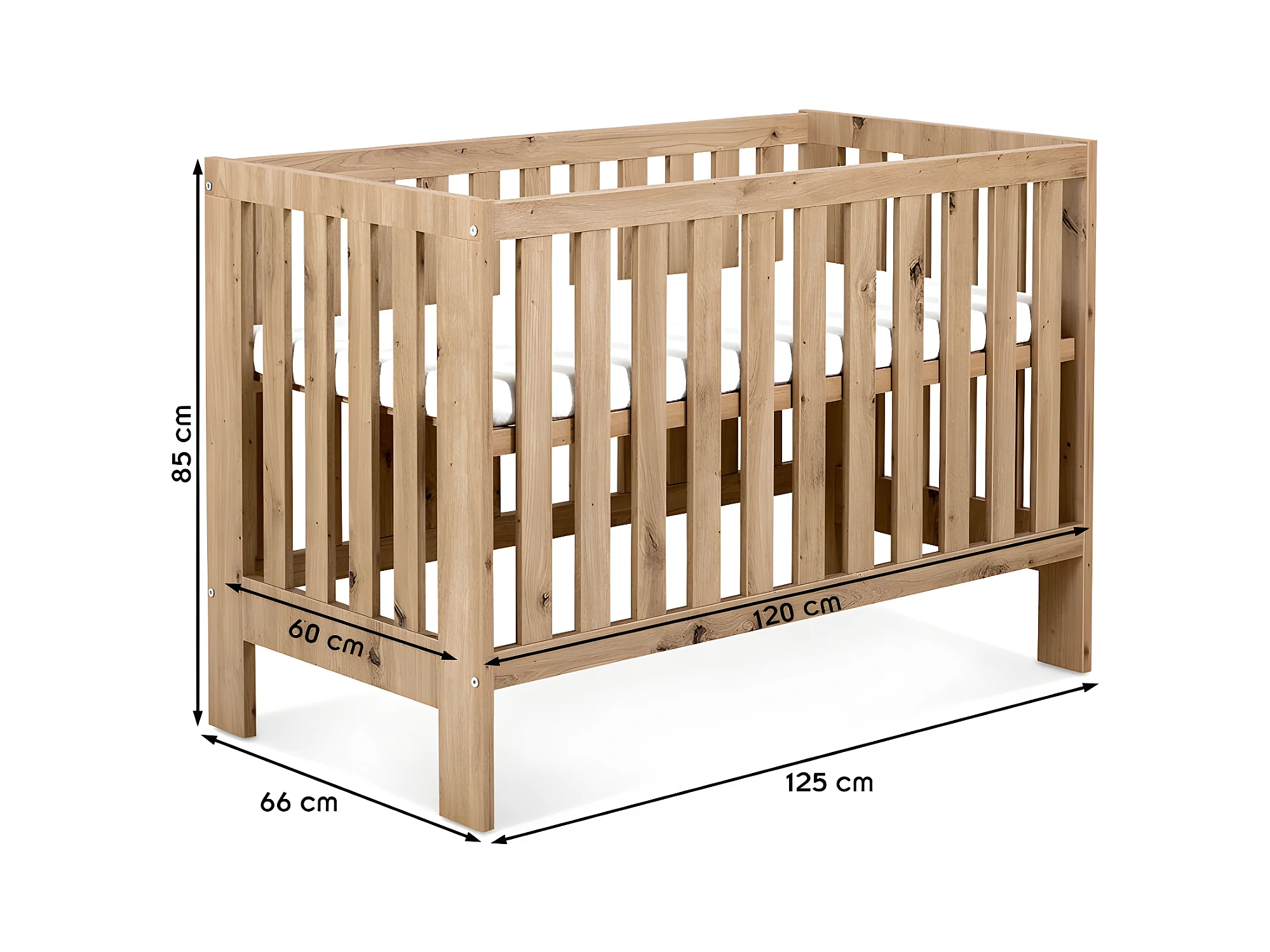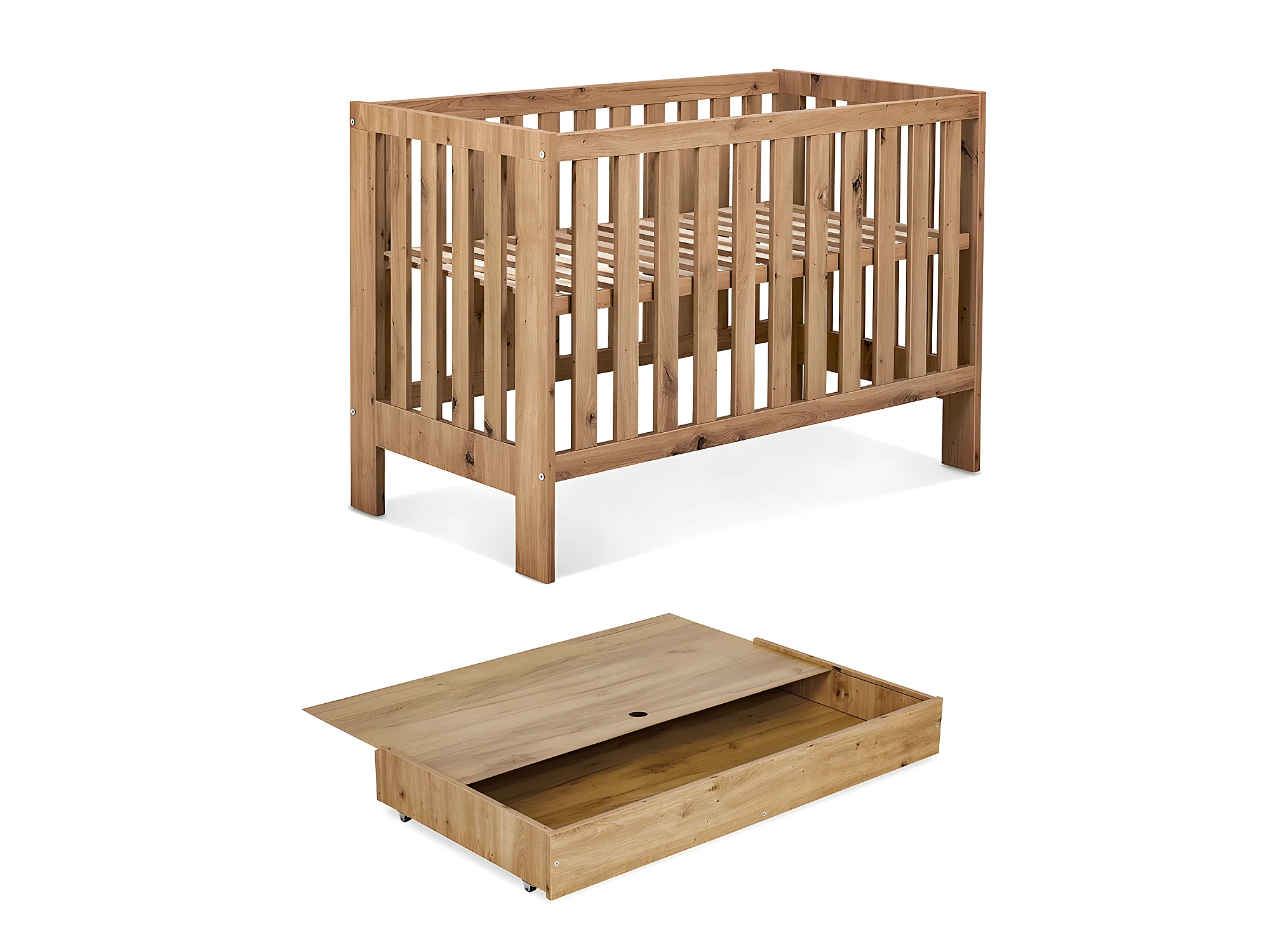 Lit bébé 120x60cm avec tiroir couleur Chêne AMELIE Lit à barreaux amovible