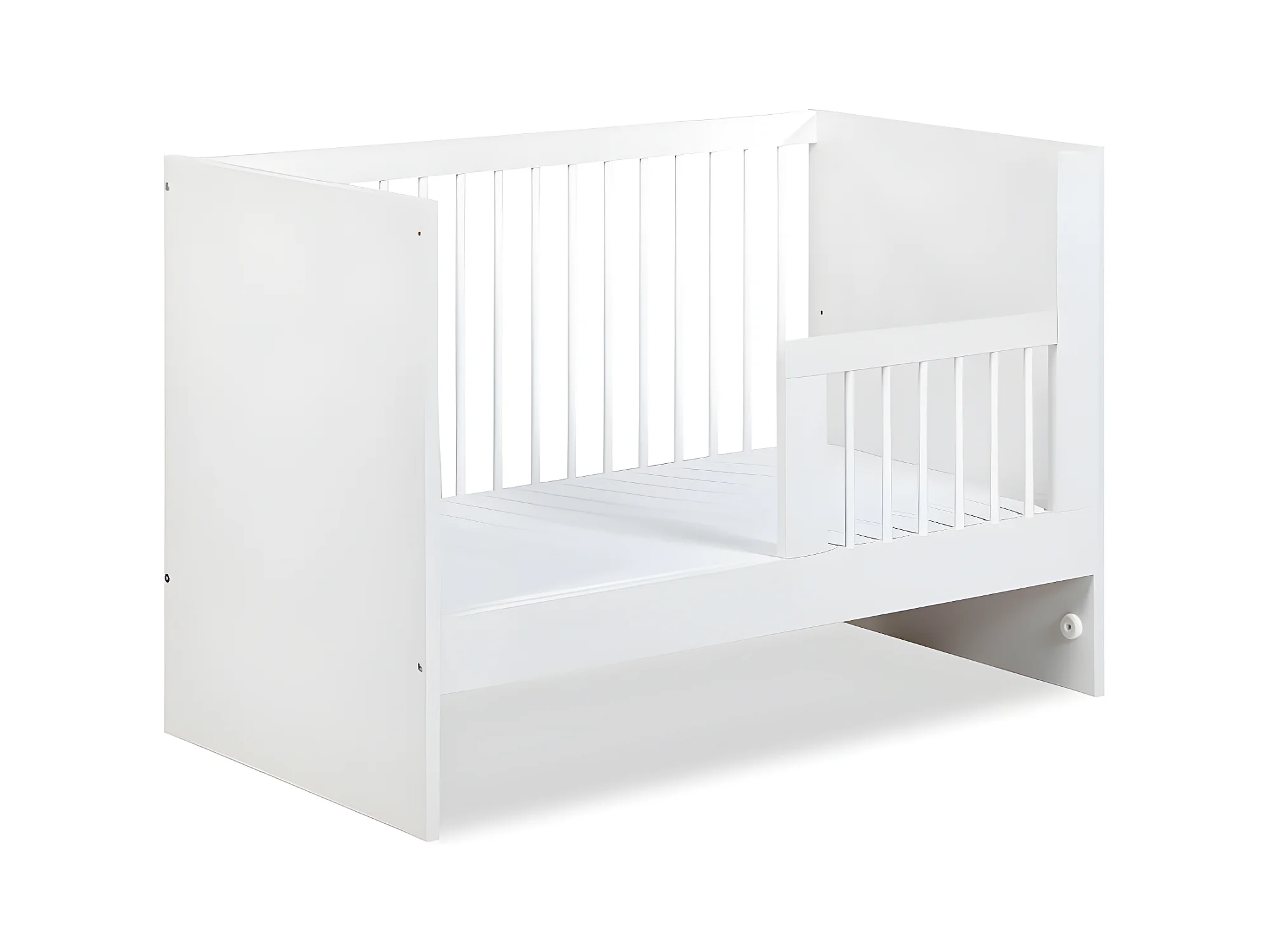 Lit bébé 120x60cm Blanc DALYA barreaux amovible et barrière de sécurité inclus