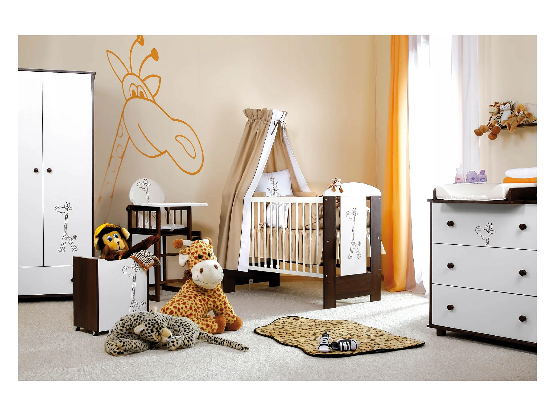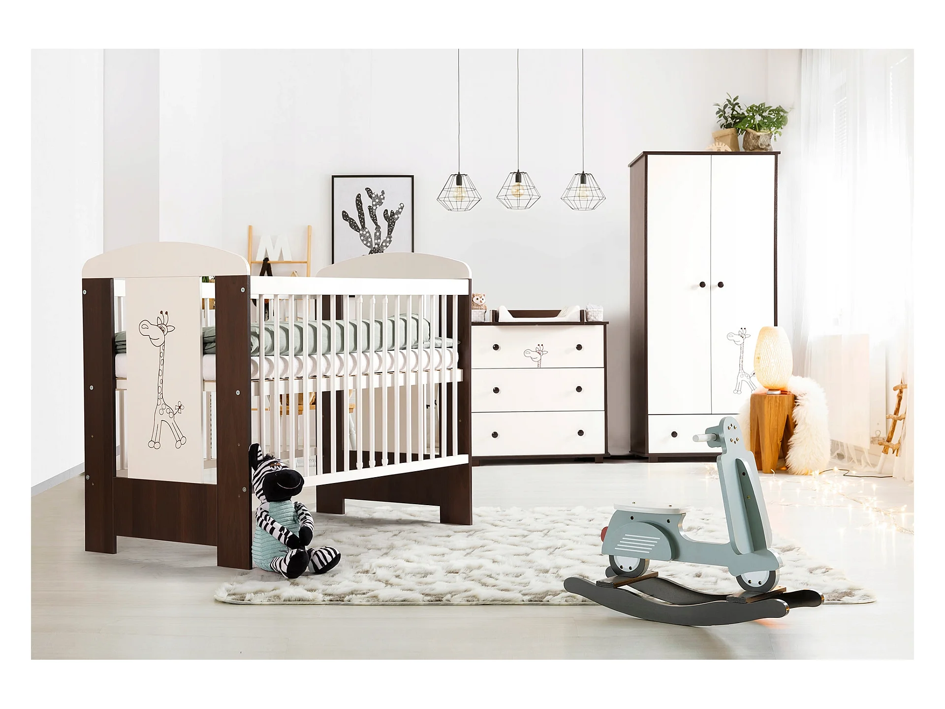Lit bébé 120x60cm Blanc et noyer GIRAFE Lit à barreaux amovible