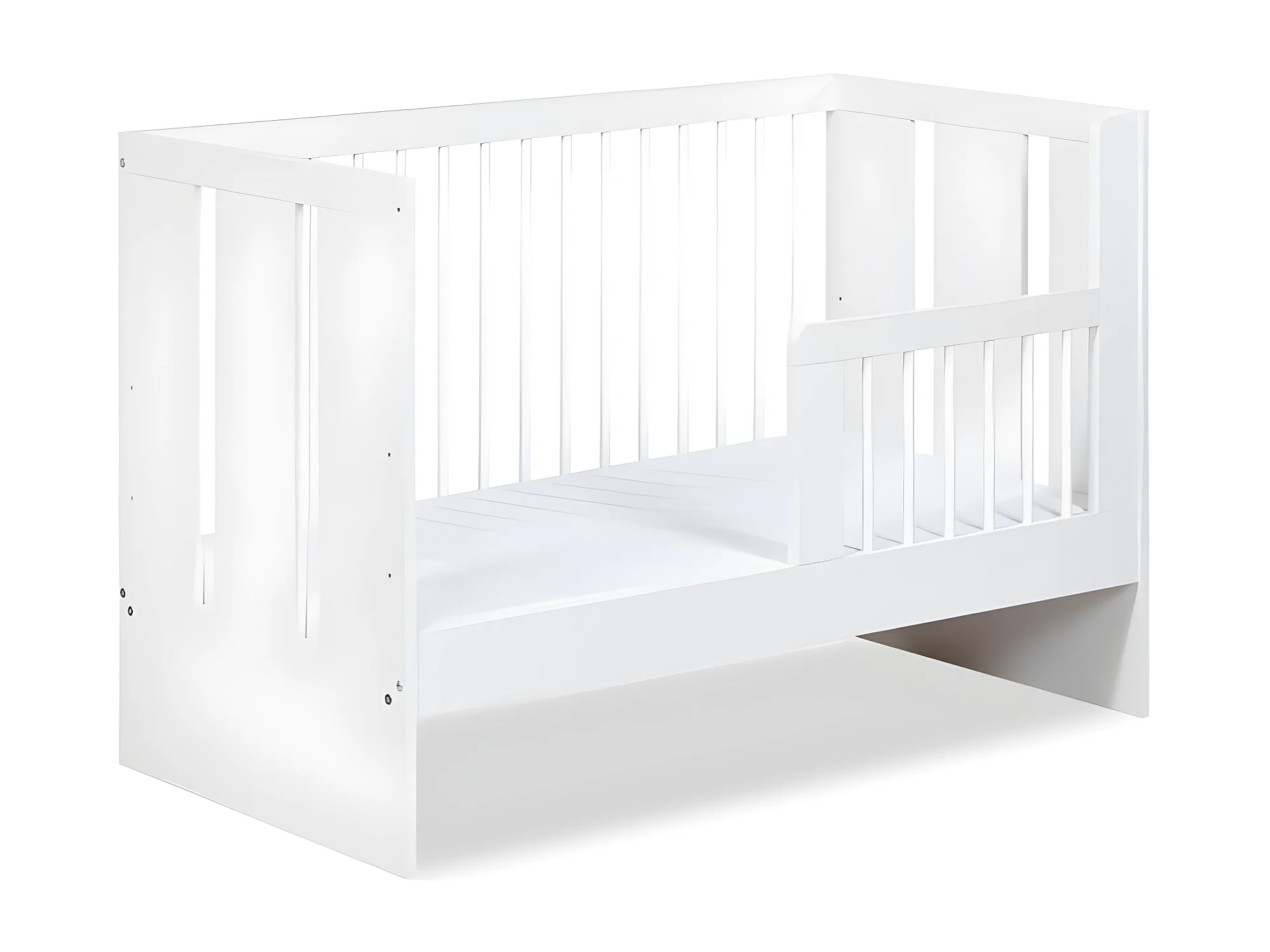 Lit bébé 120x60cm Blanc PAULA barreaux amovible et barrière de sécurité inclus