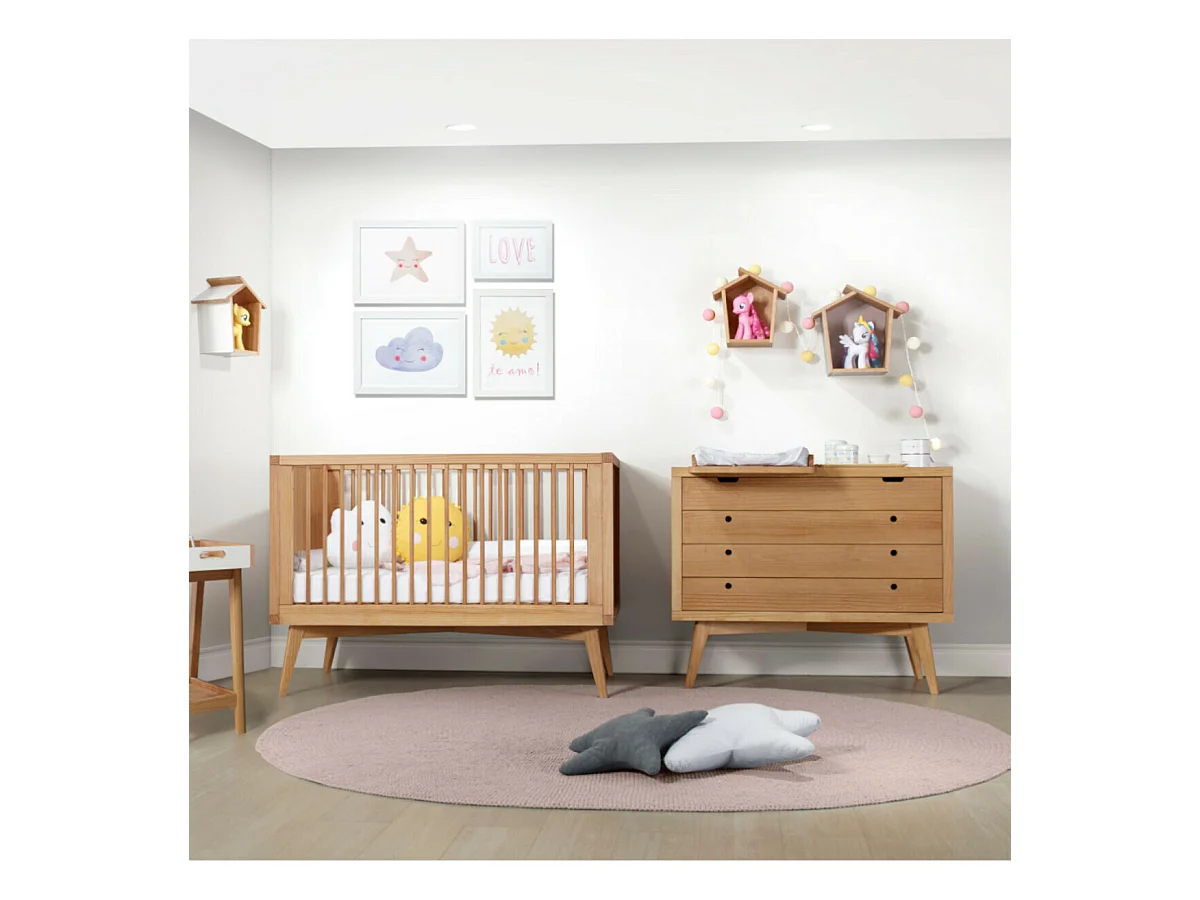 Pack lit bébé évolutif Montessori avec matelas 70x140 cm bois massif bois MARLEY