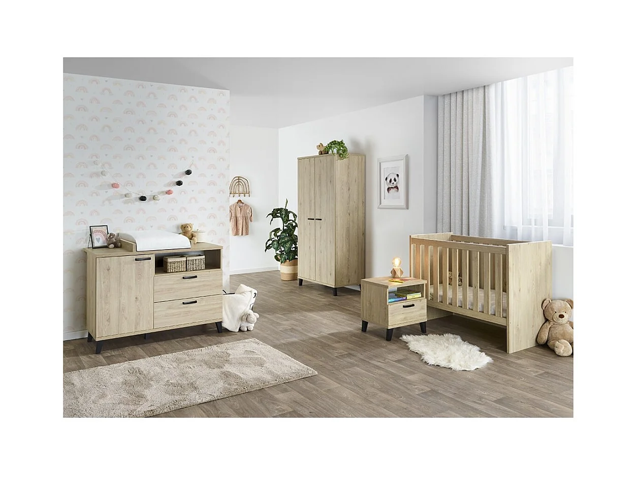 Lit bébé robuste 60x120 évolutif en lit enfant 90x200 coloris chêne clair collection DANAÉ.