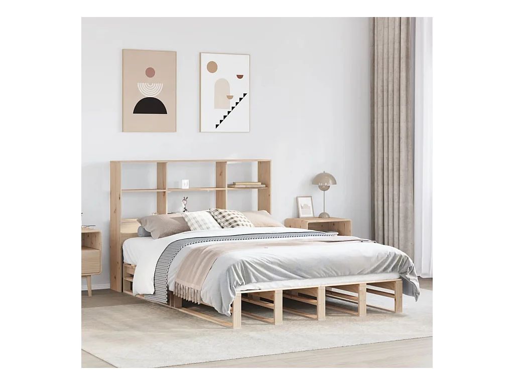 Bed met boekenkast zonder matras massief hout 140x200 cm