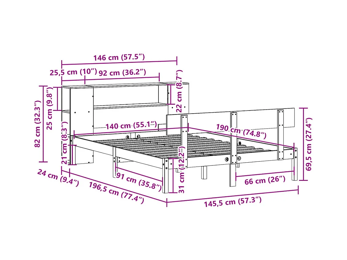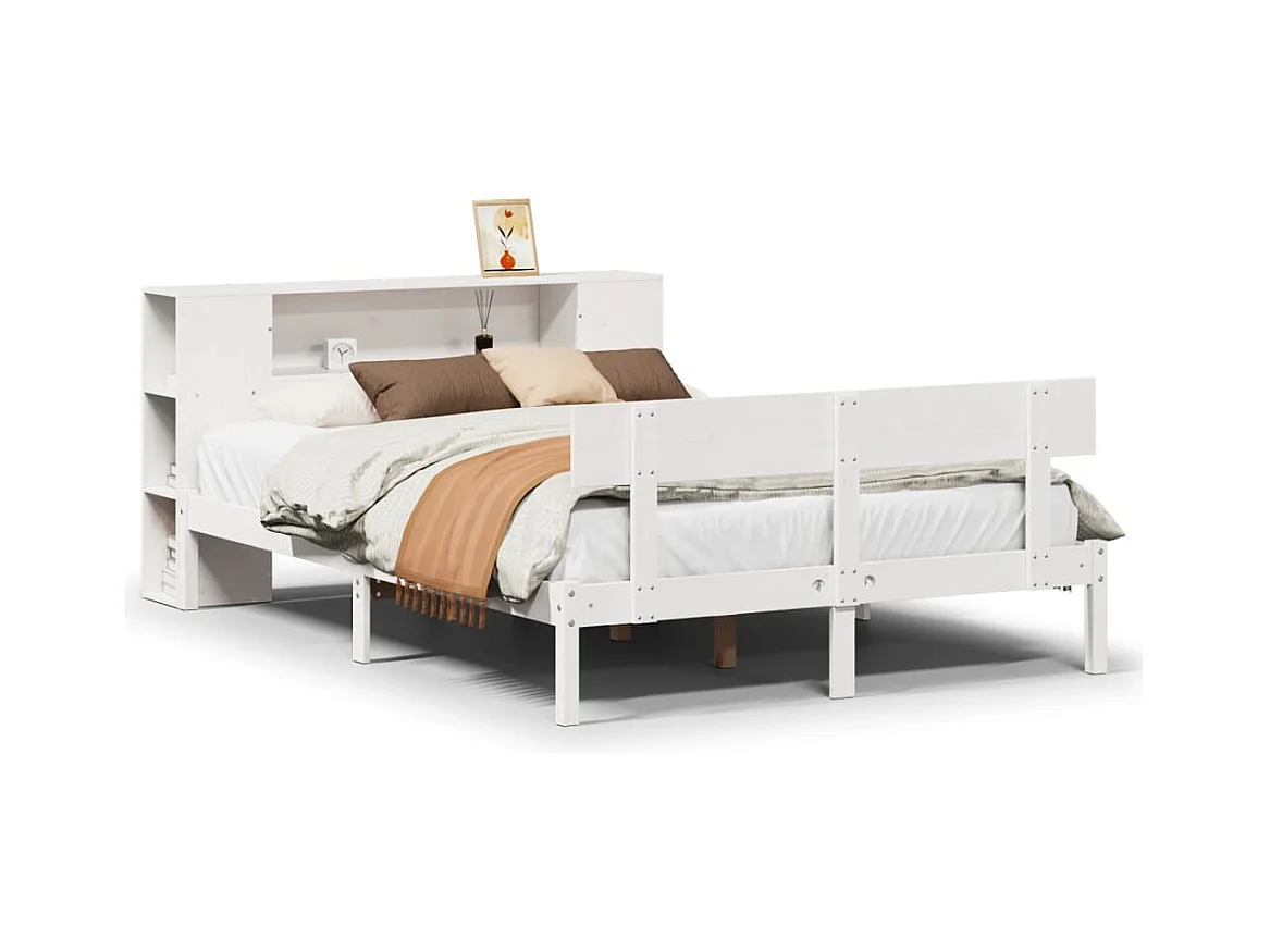 Lit bibliothèque sans matelas blanc 140x190 cm bois pin massif
