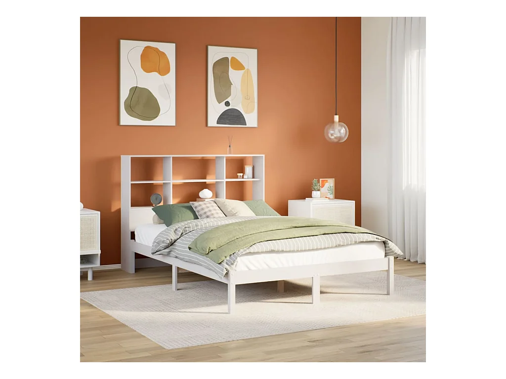 Bed met boekenkastukkenzonder matras grenenhout wit 160x200 cm