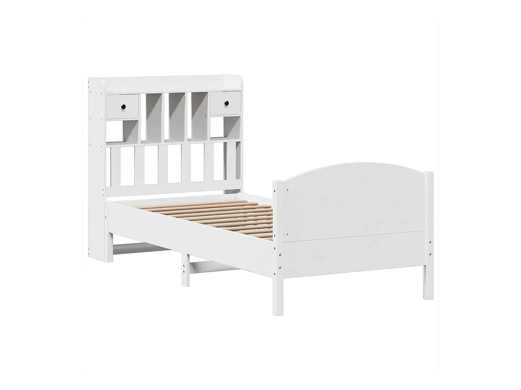 Lit bibliothèque sans matelas blanc 90x200cm bois de pin massif