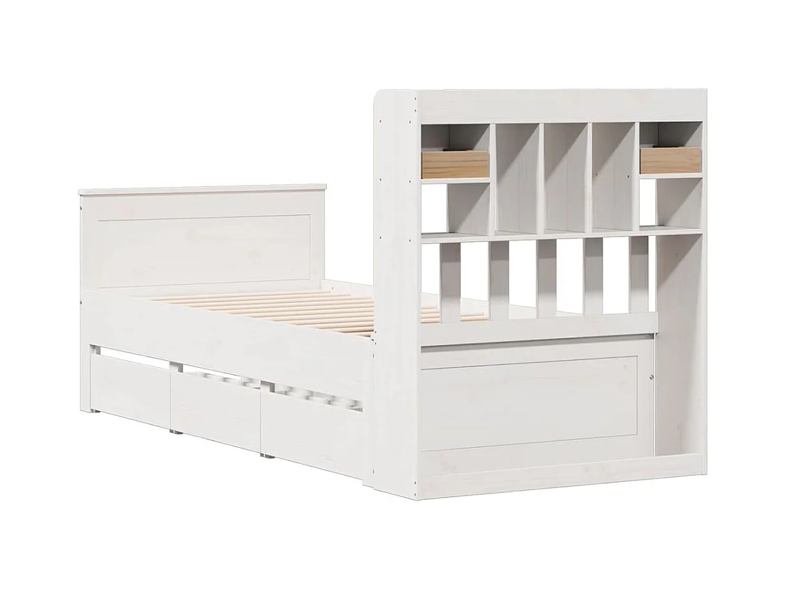 Lit bibliothèque sans matelas blanc 90x200cm bois de pin massif