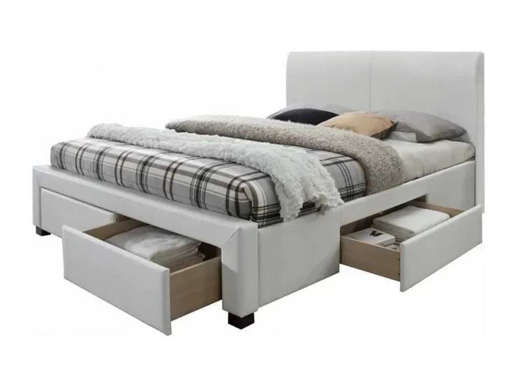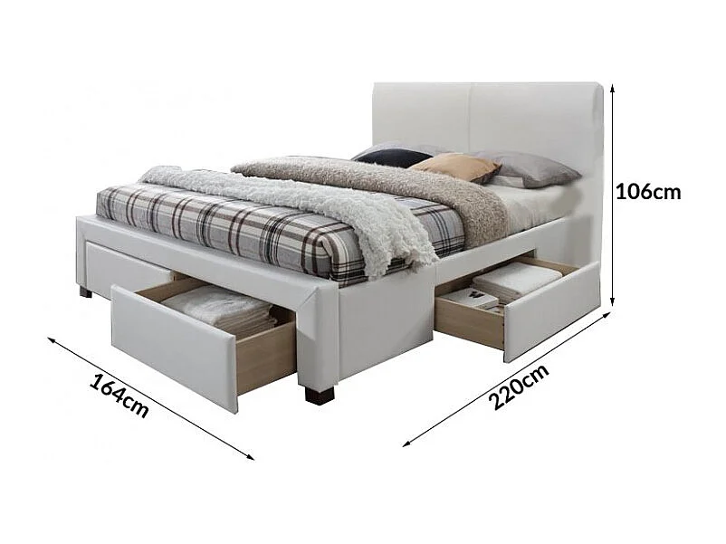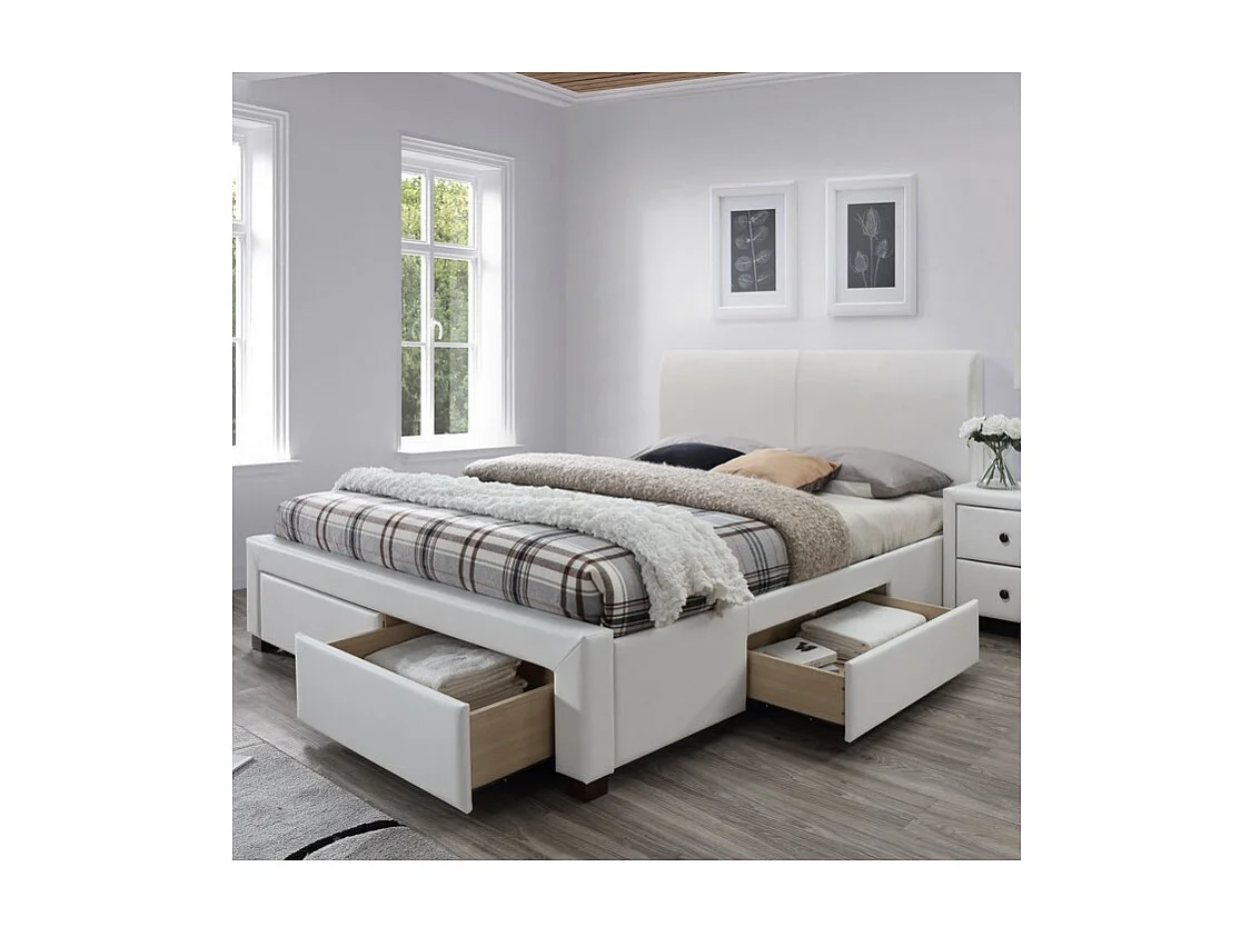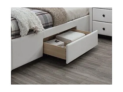 Lit blanc avec sommier à lattes et tiroirs Mariano