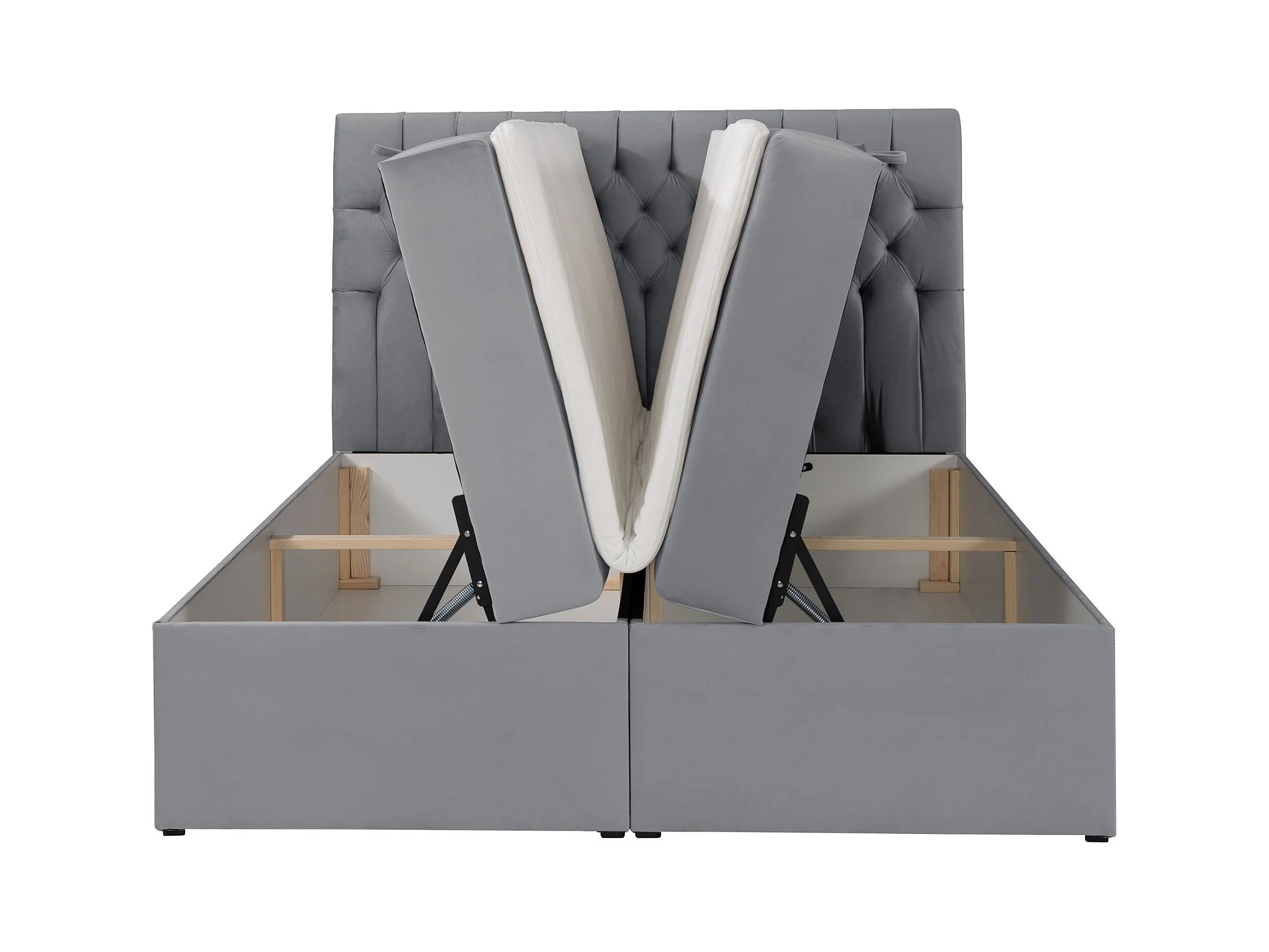 Lit boxspring 140×200 – avec matelas et surmatelas – velours – gris – DAISSY