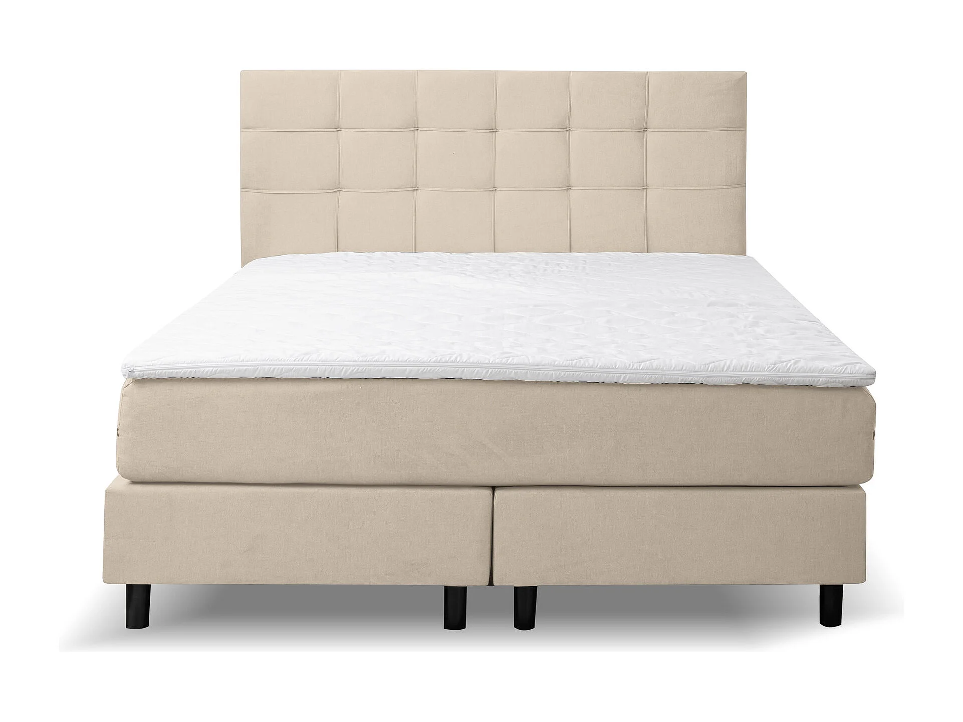 Lit boxspring BOSS, lit rembourré Dimensions : 140x200 cm, couleur : beige, tissu velours, lit double avec matelas Bonell H3 et surmatelas inclus