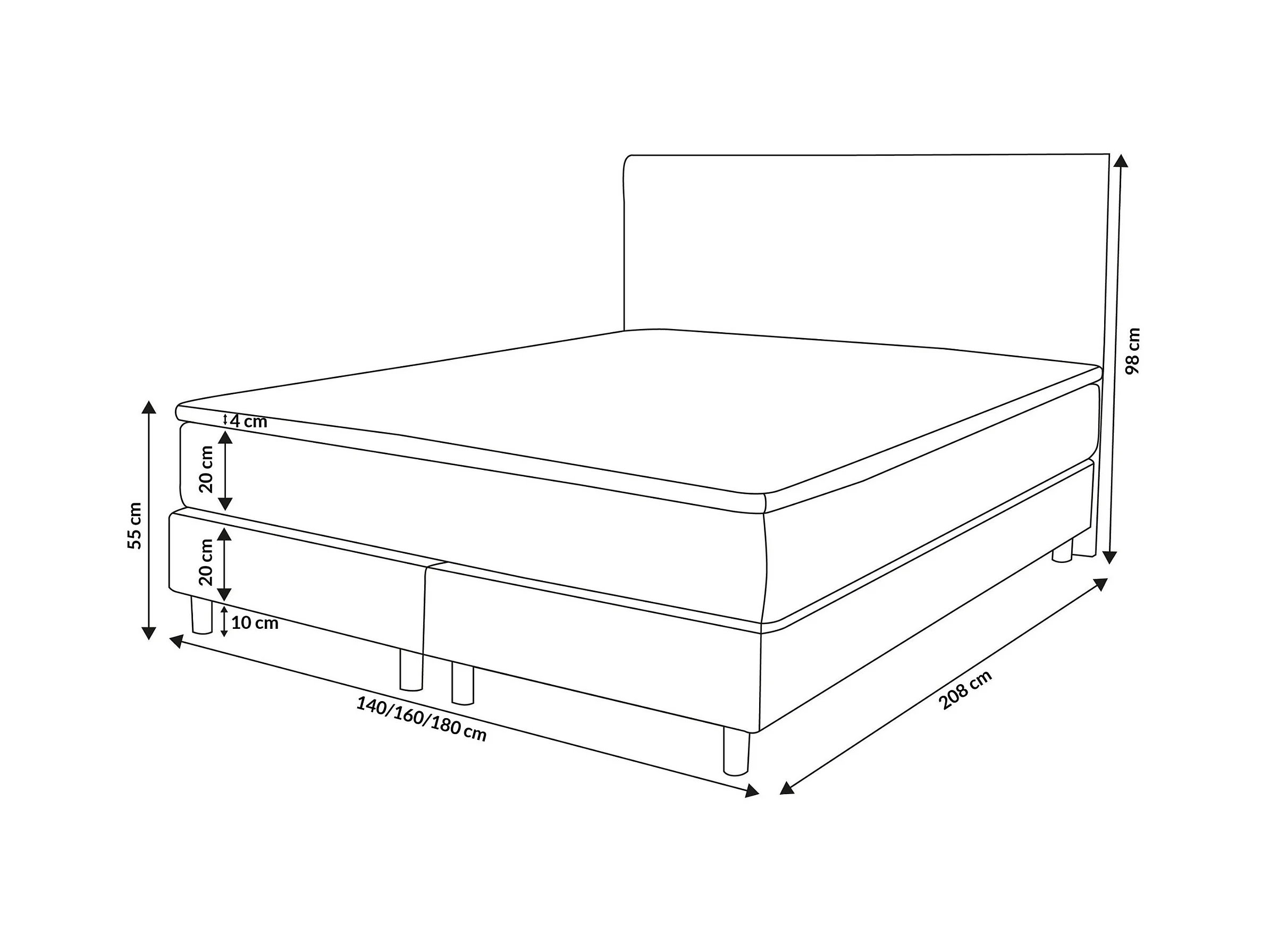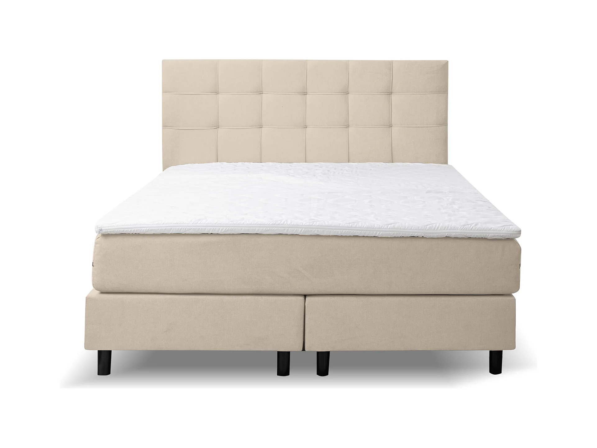 Lit boxspring BOSS, lit rembourré Dimensions : 160 x 200 cm, couleur : beige, tissu velours, lit double avec matelas Bonell H3 et surmatelas inclus